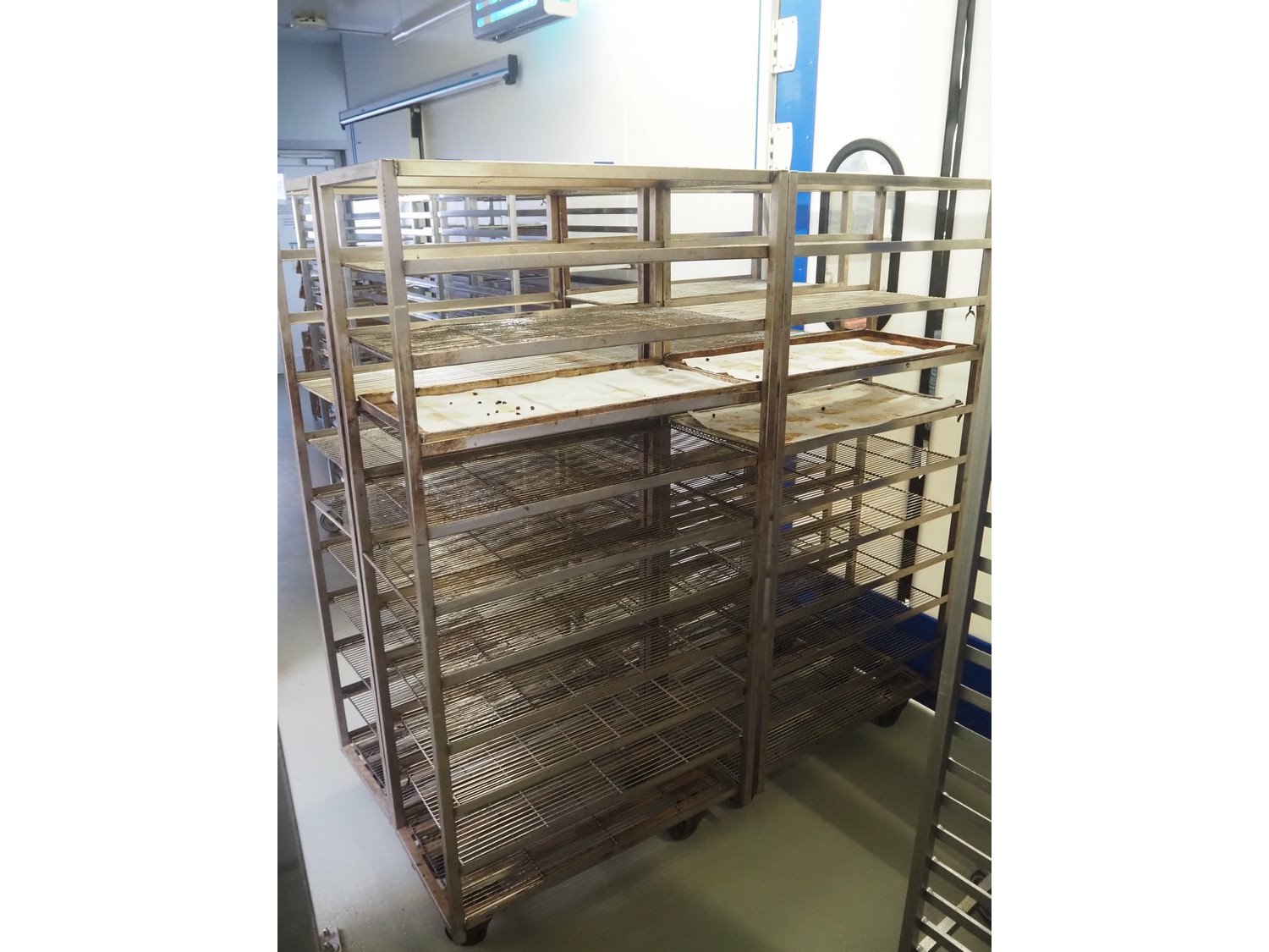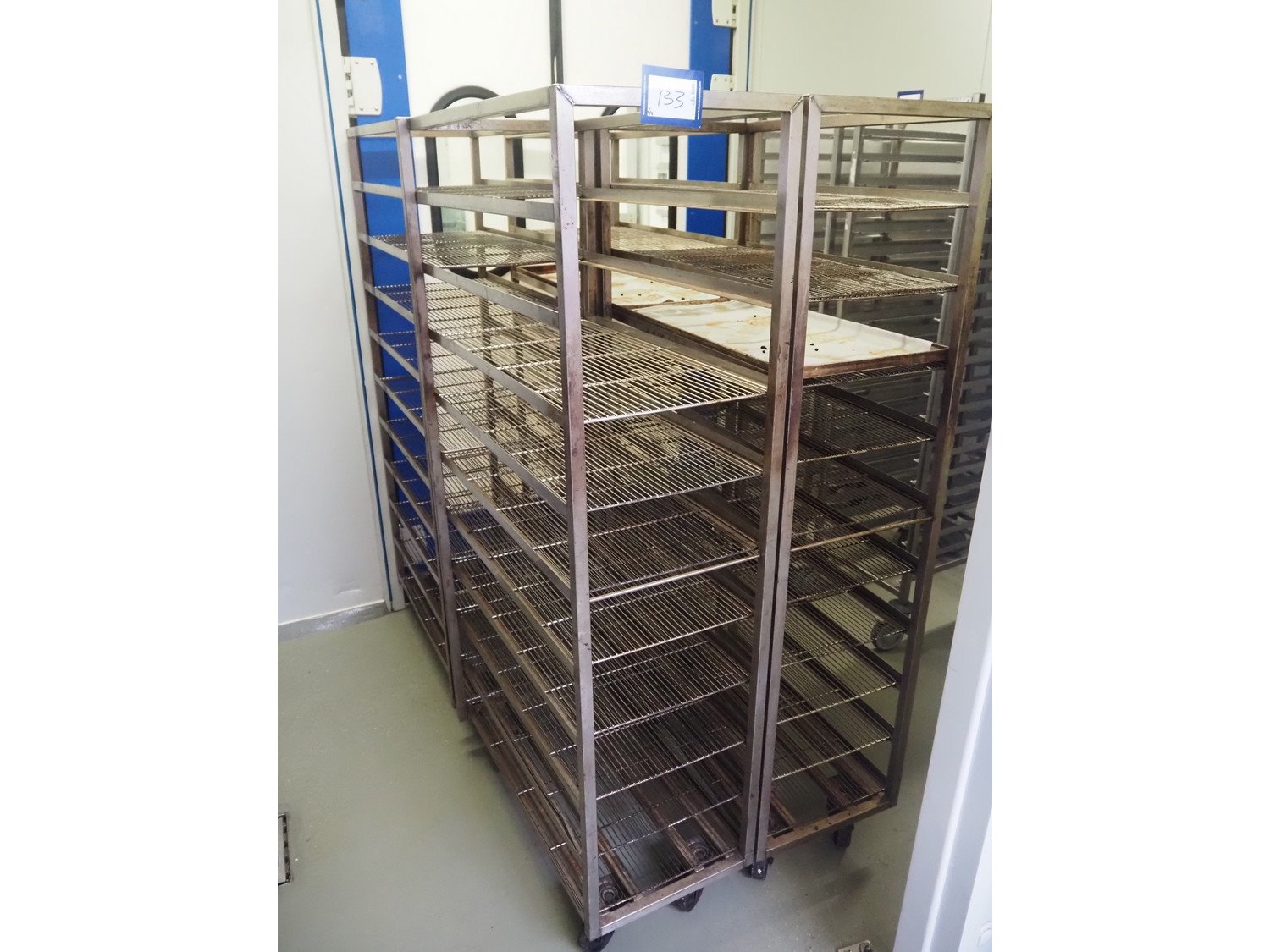 4 s/s trolleys, 10 floors each, dimensions: (4x) 460 mm x 830 mm x 1700 mm. Kavel locatie: Ieperstraat 14, 8980 Zonnebeke, België