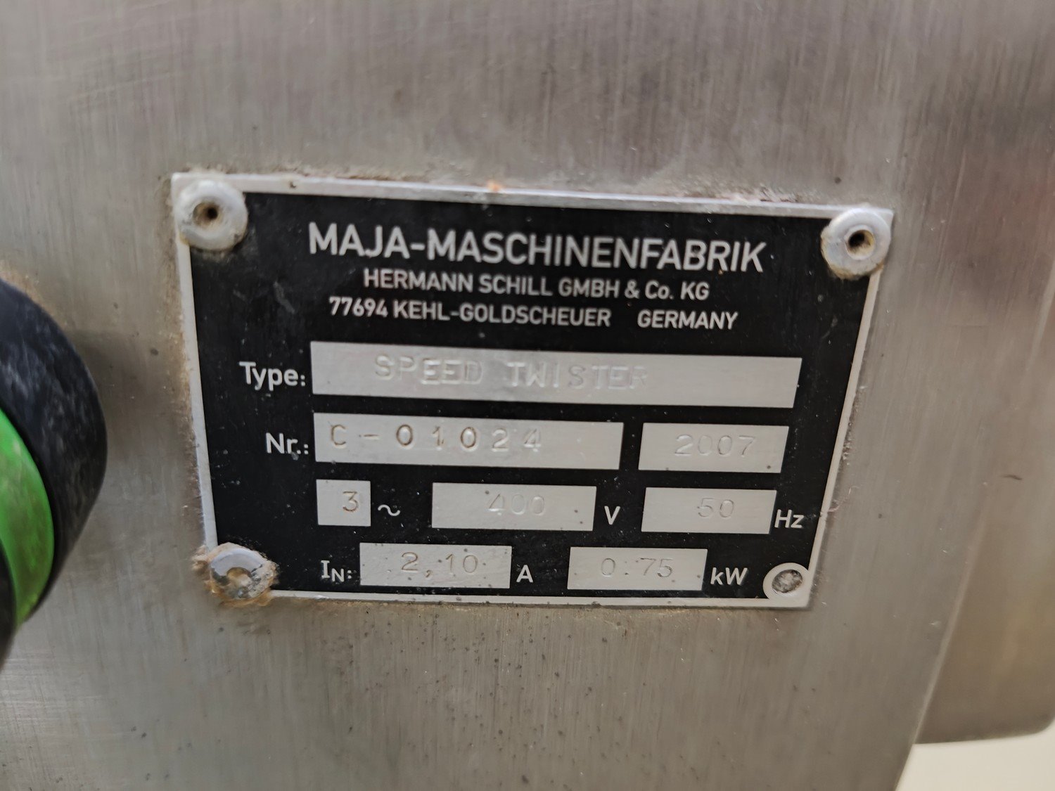 Maja Maja-Maschinenfabrik mobile speed twister, type: speed twister, number: C-01024, year of construction: 2007, 400 V, 3 Ph, 50 Hz, 2.10 A, 0.75 kW dimensions: 1270 mm x 630 mm x 1240 mm. Kavel locatie: Ieperstraat 14, 8980 Zonnebeke, België