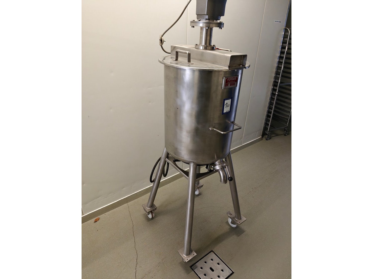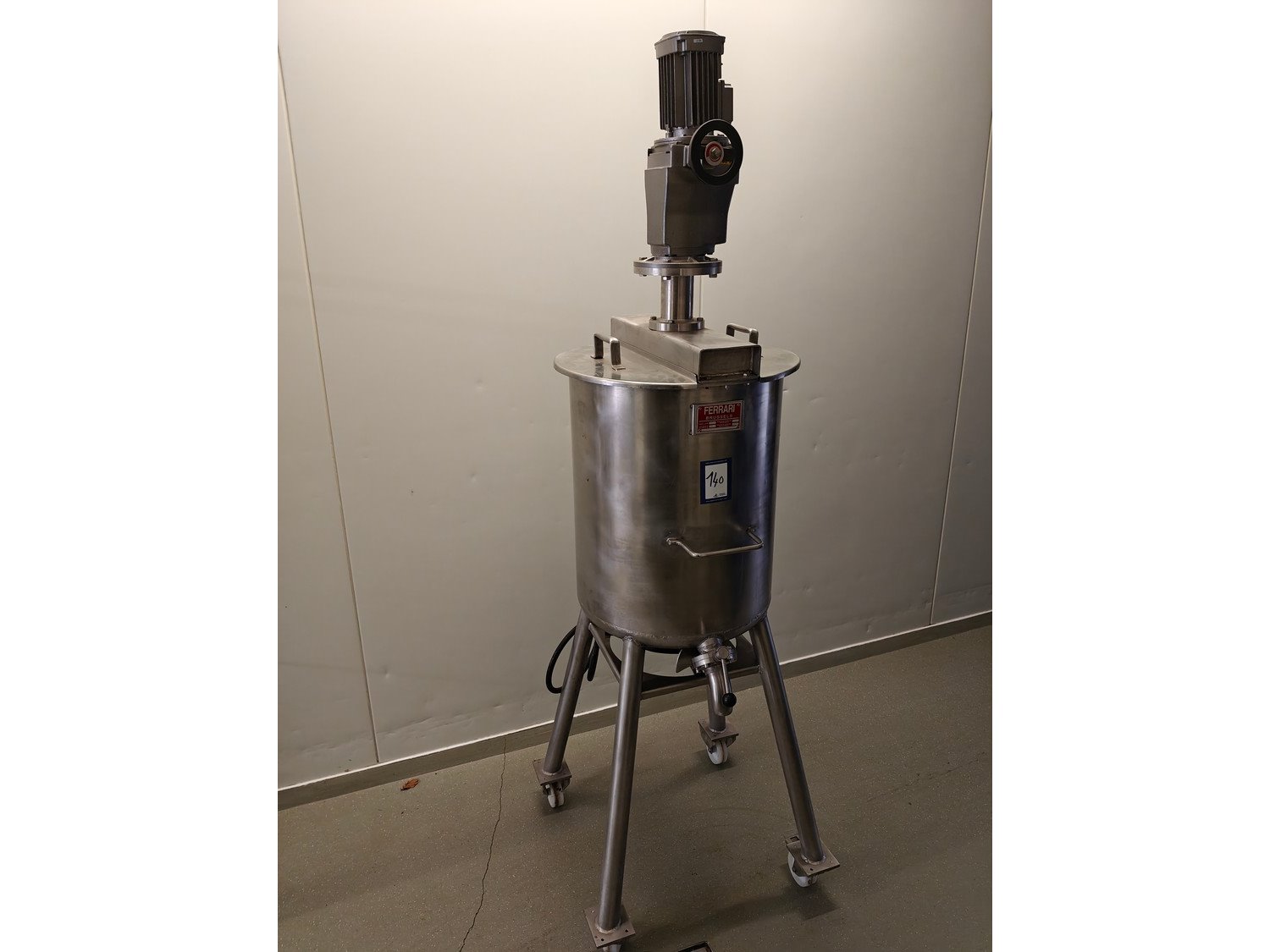 Ferrari mobile heated mixer, 400 V, 3 Ph, 400 volt , dimensions: 700 mm x 700 mm x 2150 mm. Including gas burner. Kavel locatie: Ieperstraat 14, 8980 Zonnebeke, België