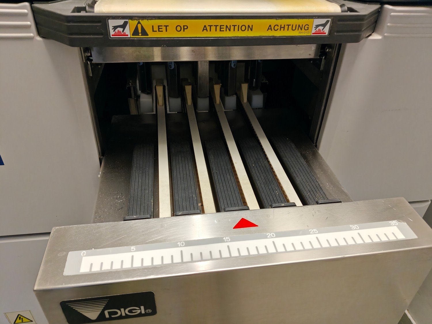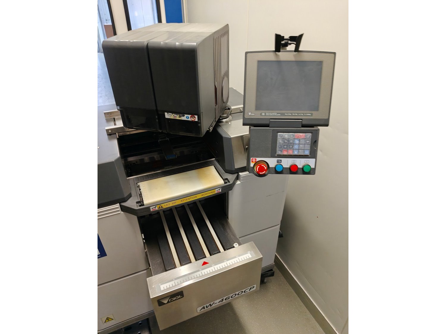 Teraoka Seiko Co., LTD semi automatic weigh, wrap and labelling machine, model: AW-4600CP, serial number: 14172045, year of construction: 2014, 220-240 V, 1 Ph, 50/60 Hz, 5 A, 1.0 kW, maximum weight: 3/6 kg, minimum weight: 20 gram, e=1/2 gram, T=-2.999 kg, dimensions: 1100 mm x 1050 mm x 1500 mm. Kavel locatie: Ieperstraat 14, 8980 Zonnebeke, België