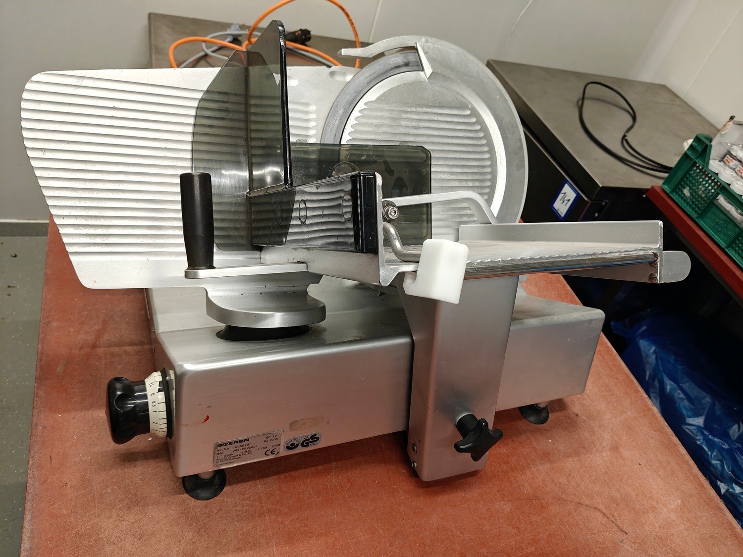 Bizerba slicer, type: SE 12, number: 10258797, year of construction: 2006, 230 V, 1 Ph, 50 Hz, 1.79 A, dimensions: 750 mm x 600 mm x 450 mm. Kavel locatie: Ieperstraat 14, 8980 Zonnebeke, België