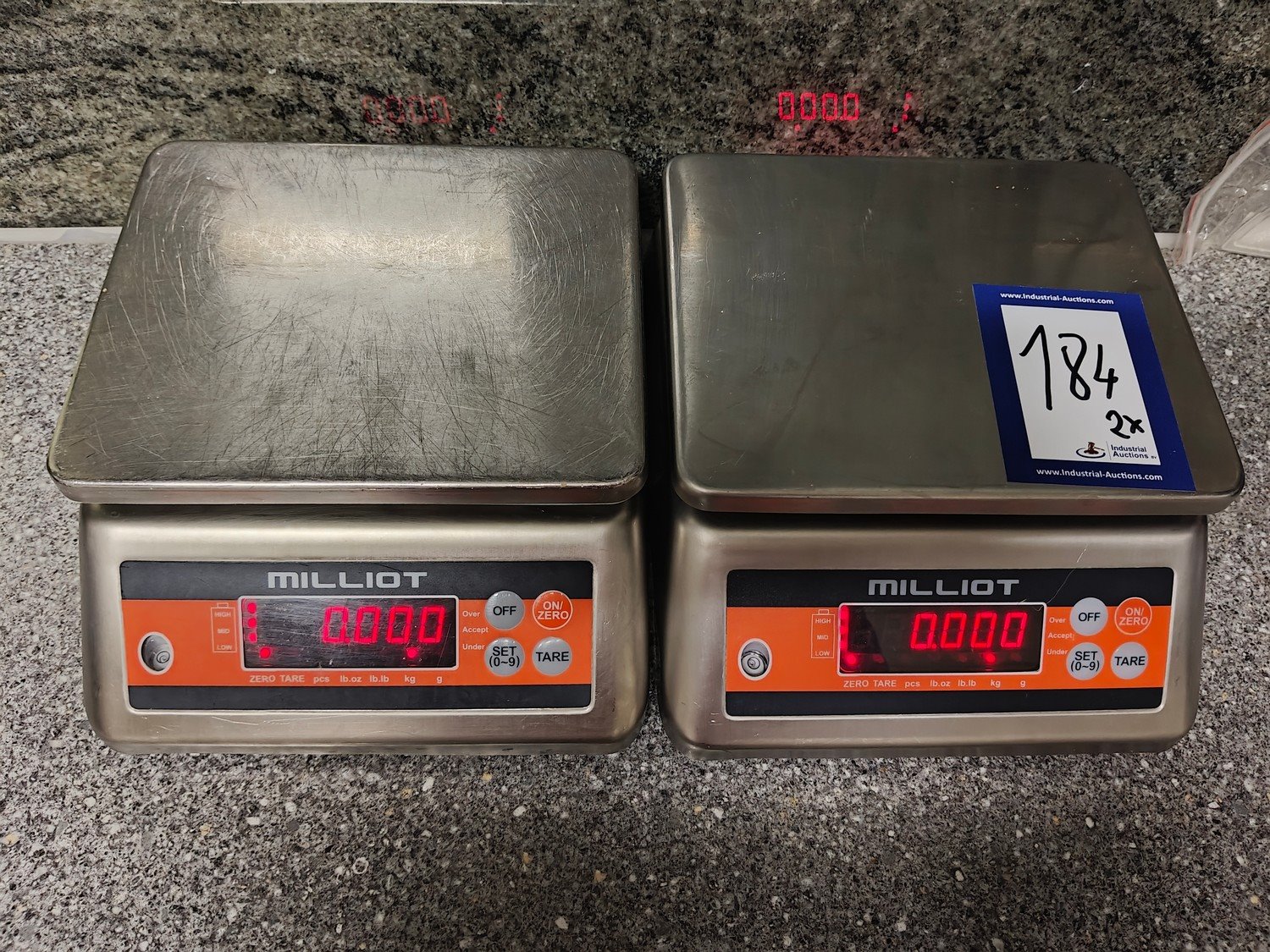 2 Milliot scales, model: SUPER-SS, max: 15 kg , d= 1 gram, 230 volt , 1 Ph, dimensions: (2x) 230 mm x 300 mm x 110 mm. Including battery. Kavel locatie: Ieperstraat 14, 8980 Zonnebeke, België