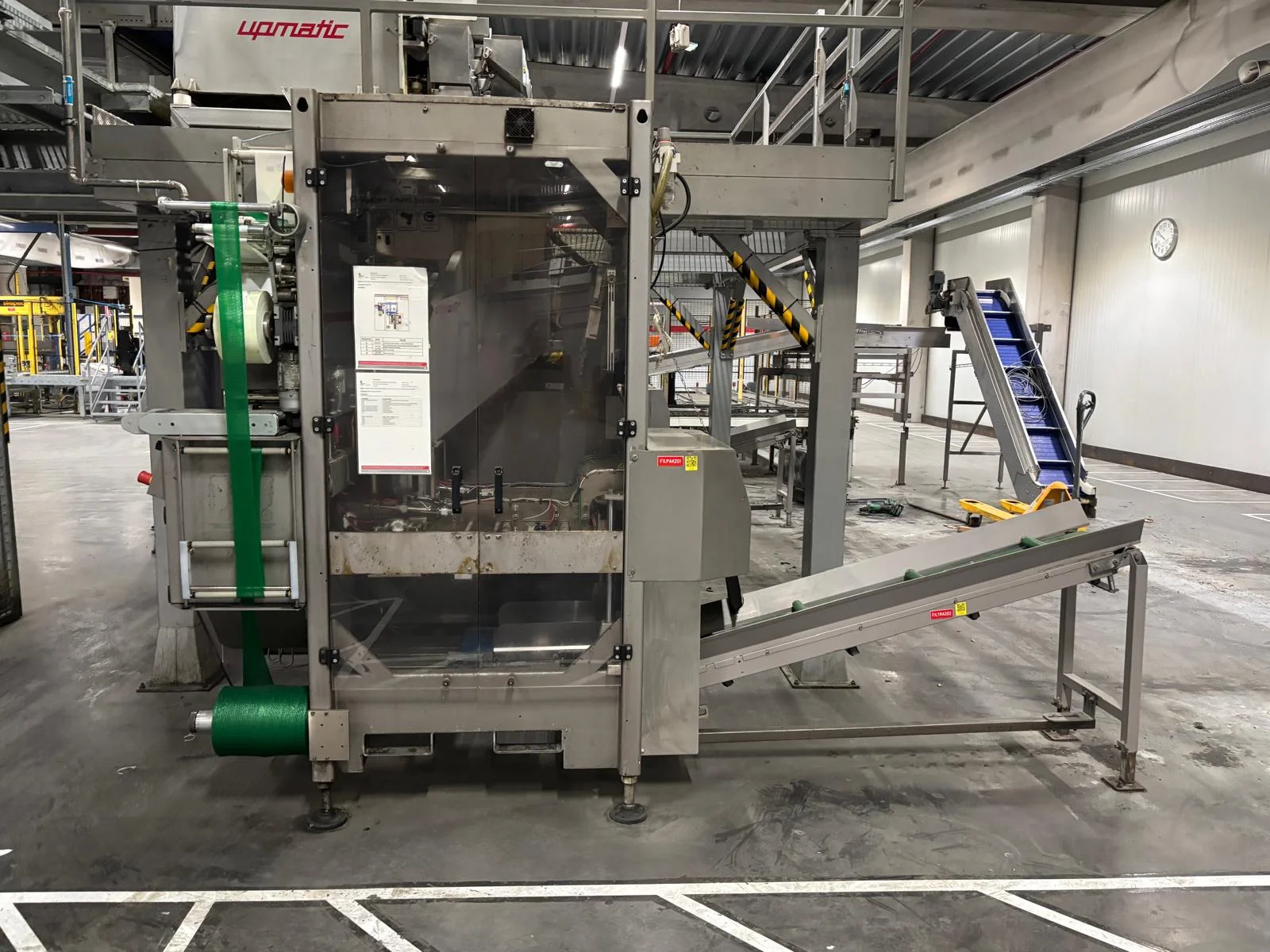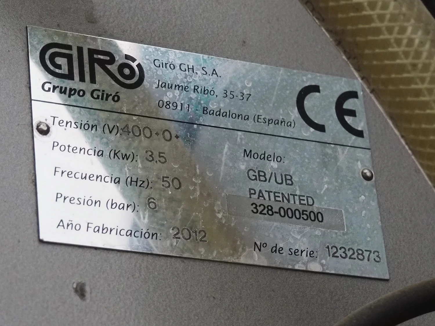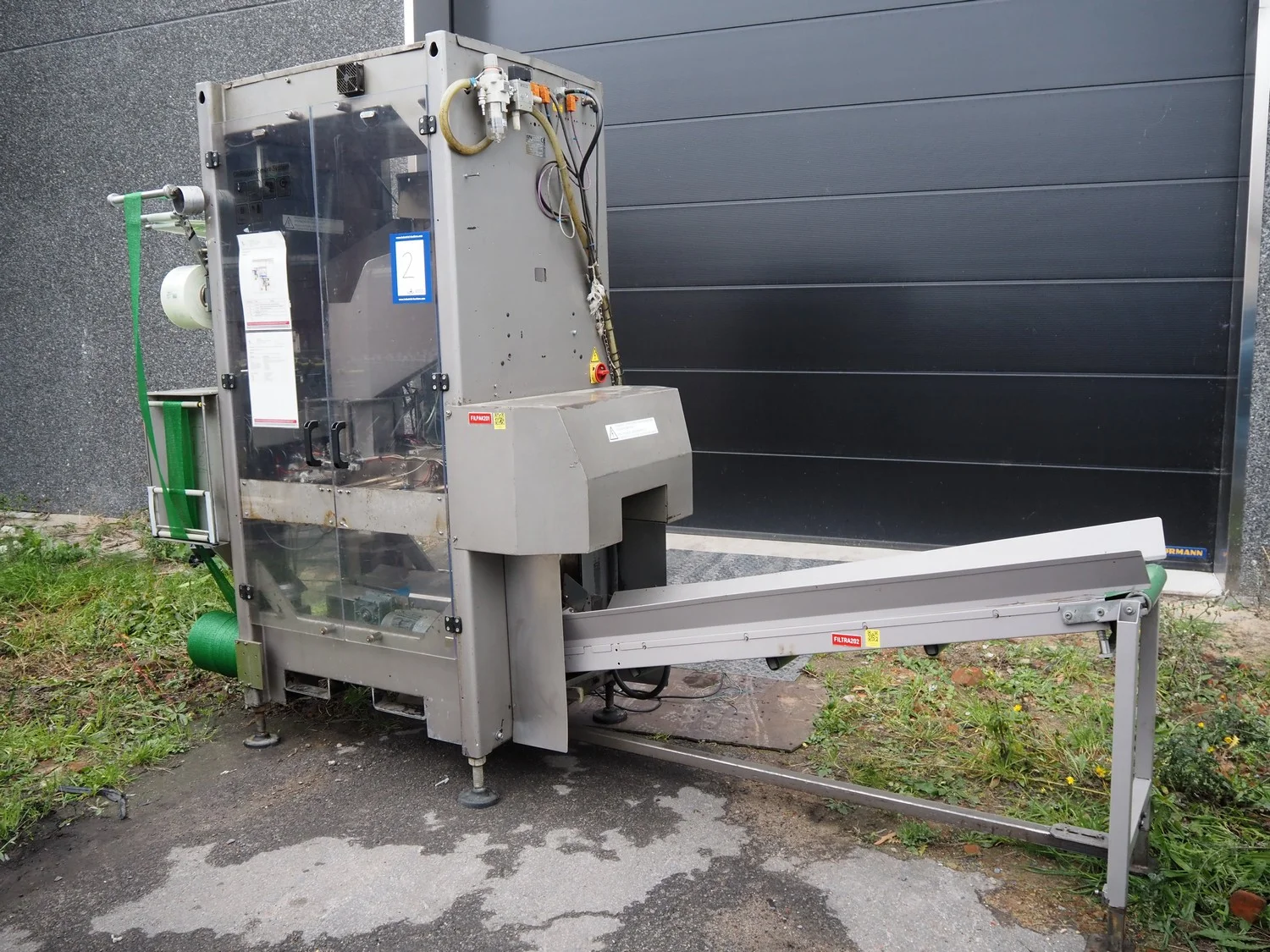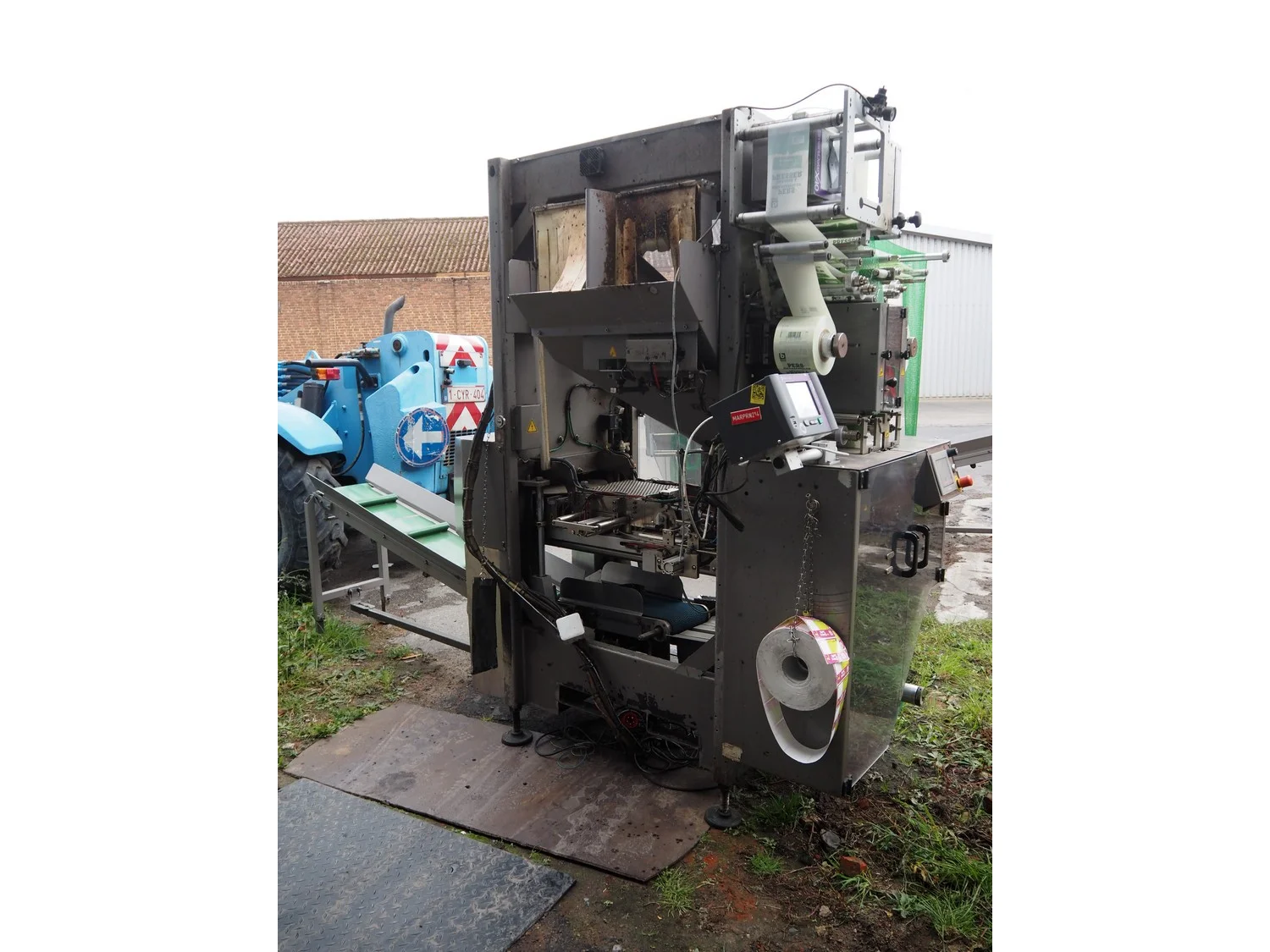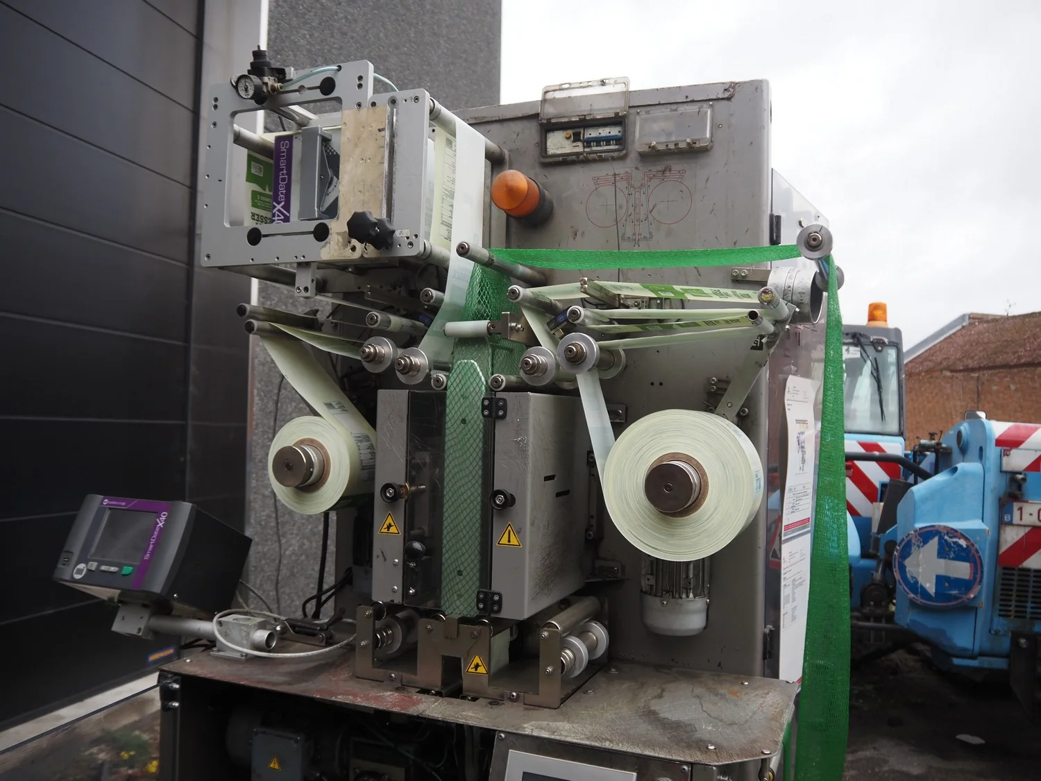 Grupo Giró netting machine, model: GB/UB, serial number: 1232873, year of construction: 2012, 400 V, 50 Hz, 3.5 kW, plastic belt, belt width: 240 mm, plastic belt with dividers: 295 mm, divider width: 260 mm, distance between dividers: 410 mm, divider height: 45 mm, film width: 120 mm, for 4 kg oranges, with Markem Imaje SmartDate X40 inkjet printer, total dimensions: 3300 mm x 1230 mm x 2200 mm. Voor meer informatie klik op de volgende link: Girbagger_User_Manual_Rev.3_ENG.pdf