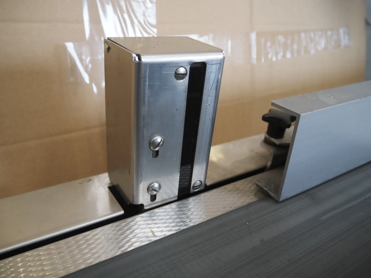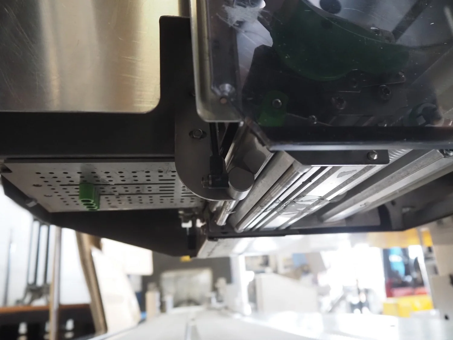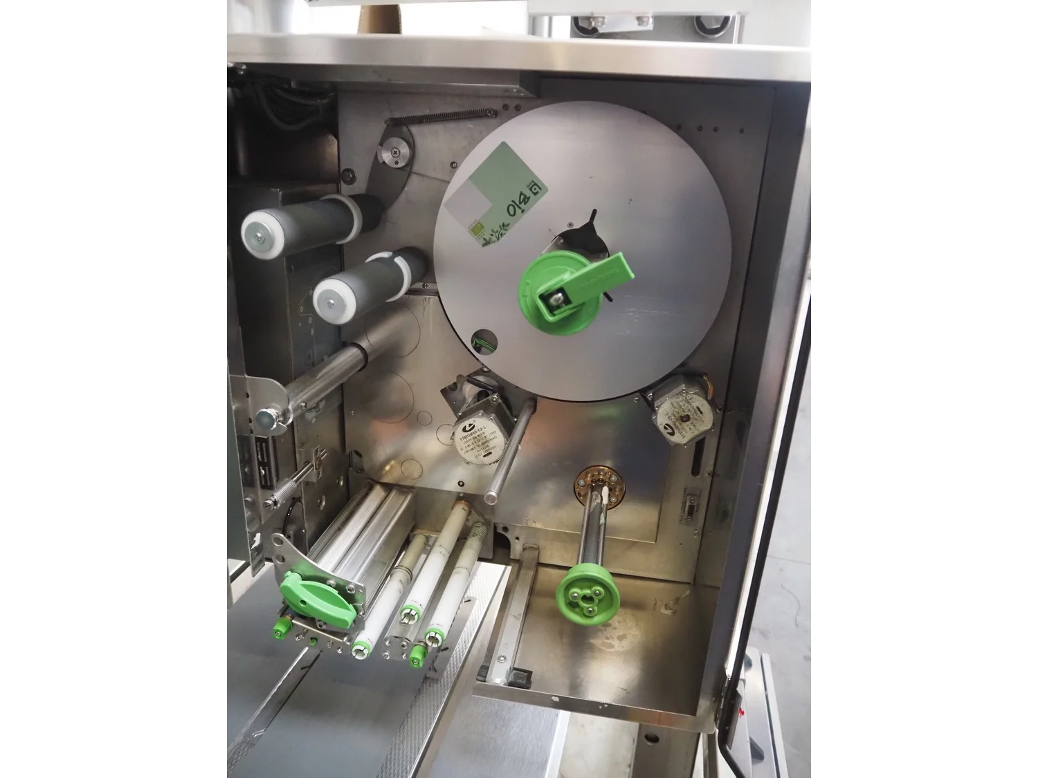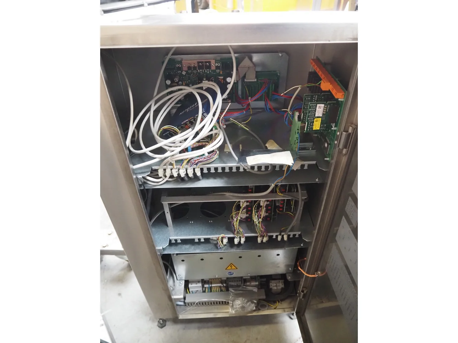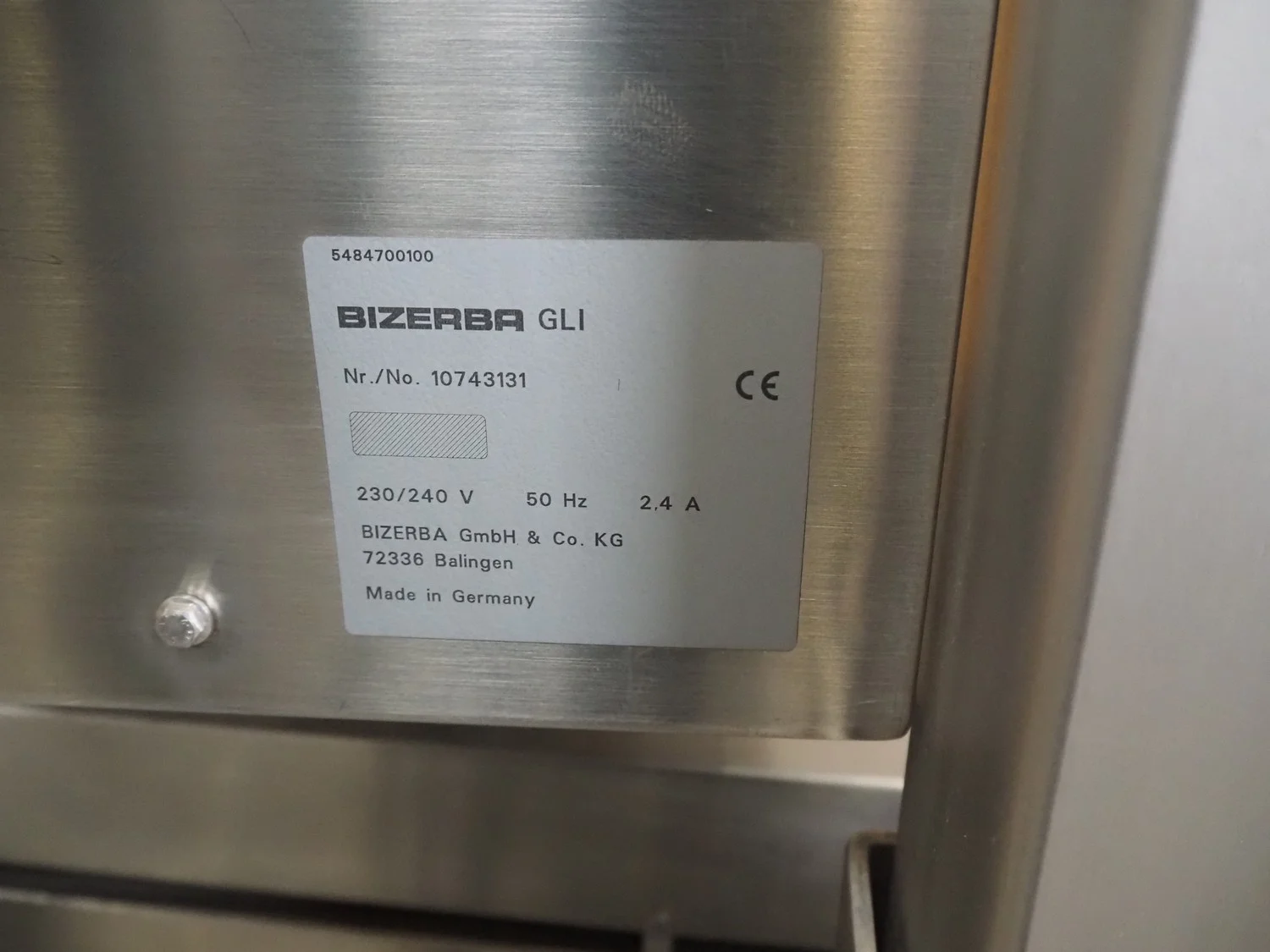Bizerba checkweigher with labeller, number: 10743142, 230 V, 50 Hz, 2.4 A, plastic belt, belt width: (2x) 135 mm and 30 mm, labeller number: 10743131, total dimensions: 3550 mm x 950 mm x 1750 mm. Without rollies.
