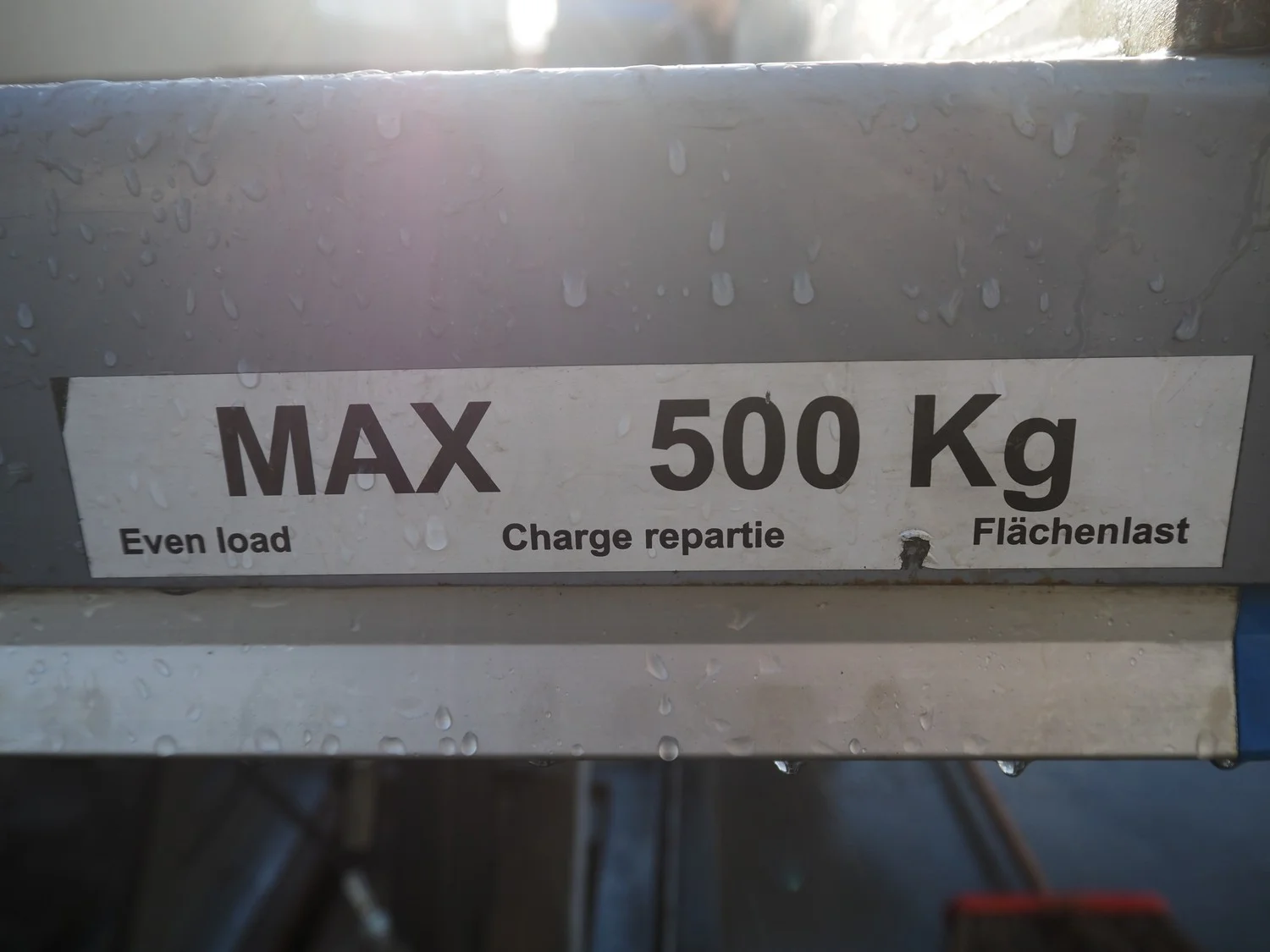 RDL Engineering N.V. lifting table, type: BX 10-8/6, number: 103.882-01, year of construction: 2015, rated load: 500 kg, dimensions of standing area: 1440 mm x 790 mm, total dimensions: 1550 mm x 900 mm x 1700 mm. Including switch cabinet.