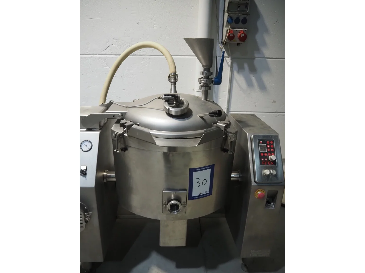 Firex cooking vessel, model: HIGH-P070E, number: 29140PH30, year of construction: 2011, volume: 70 L, dimensions: 1300 mm x 900 mm x 1150 mm. Overhauled in 2024.