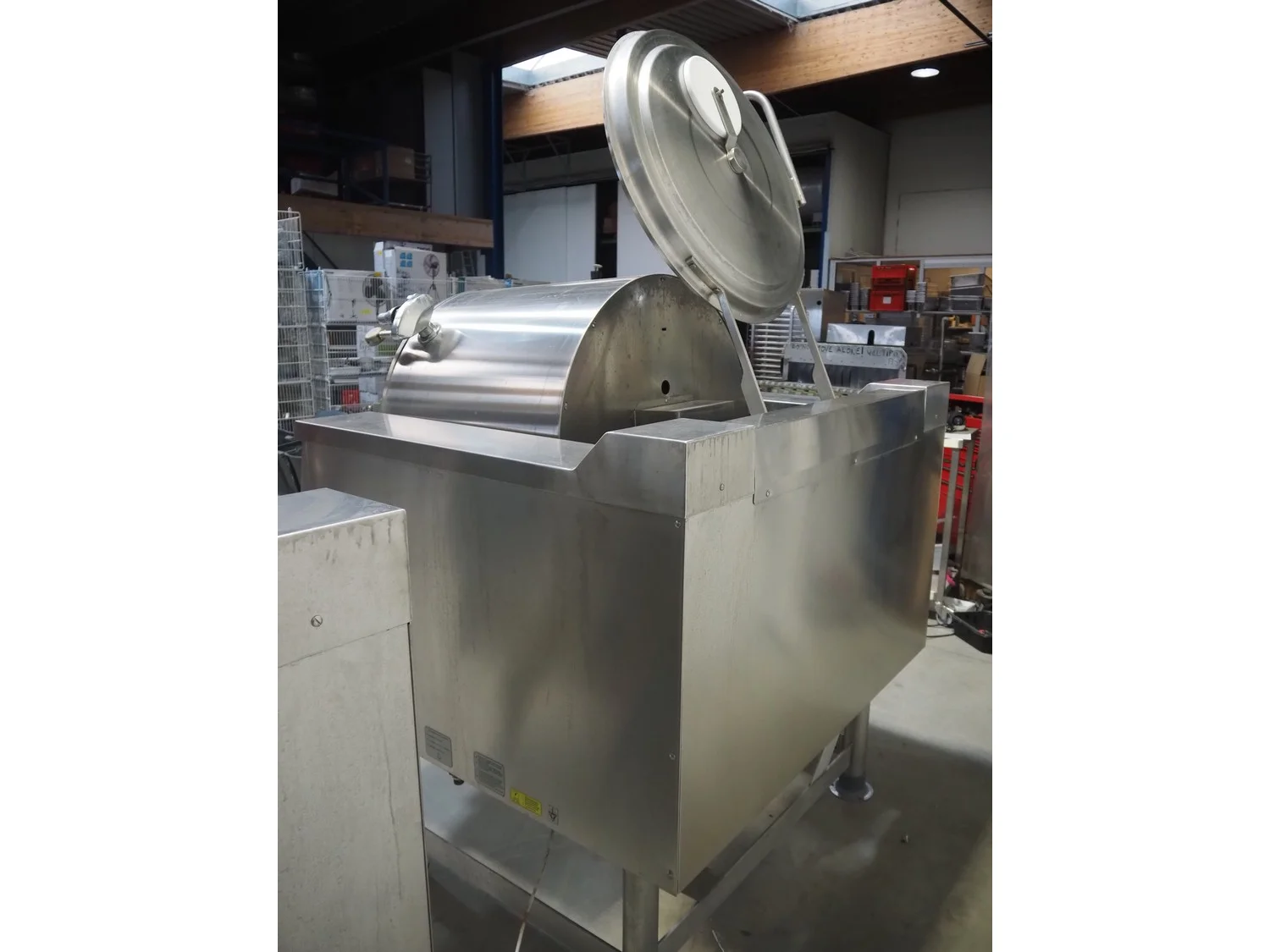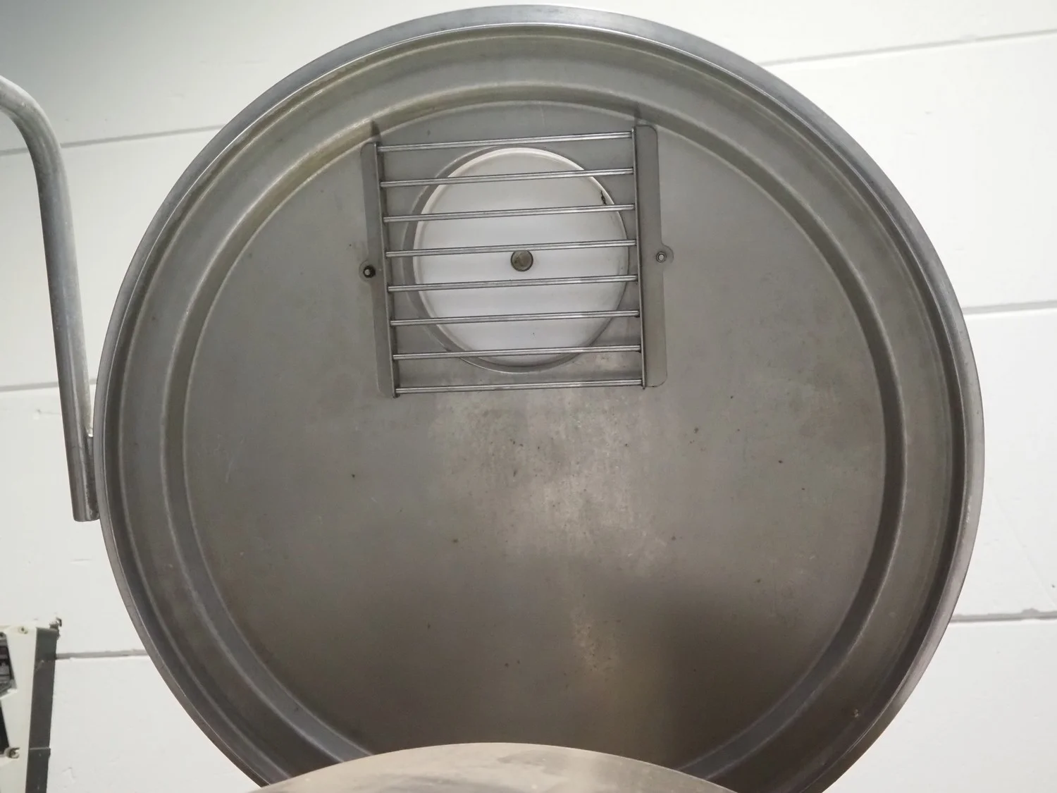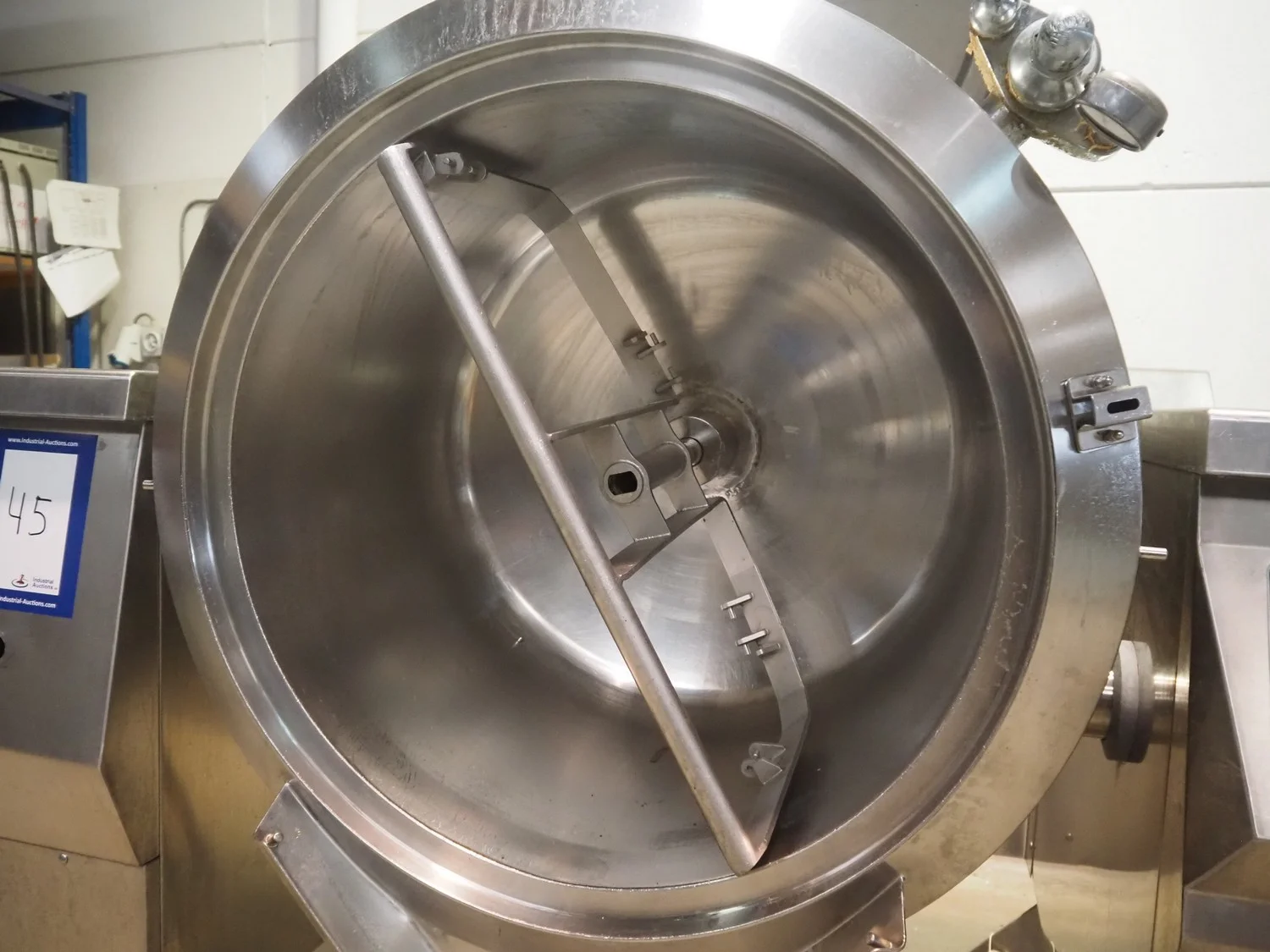Firex tiltable braising pan with agitator and scrapers, model: PRIV180M, number: 21615 MH 29, year of construction: 2008, volume: 180 liter, total dimensions: 1450 mm x 1350 mm x 1285 mm.