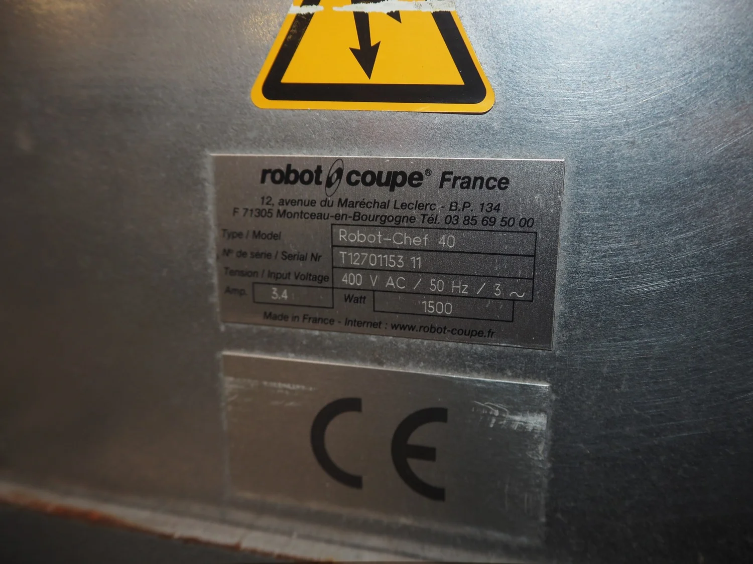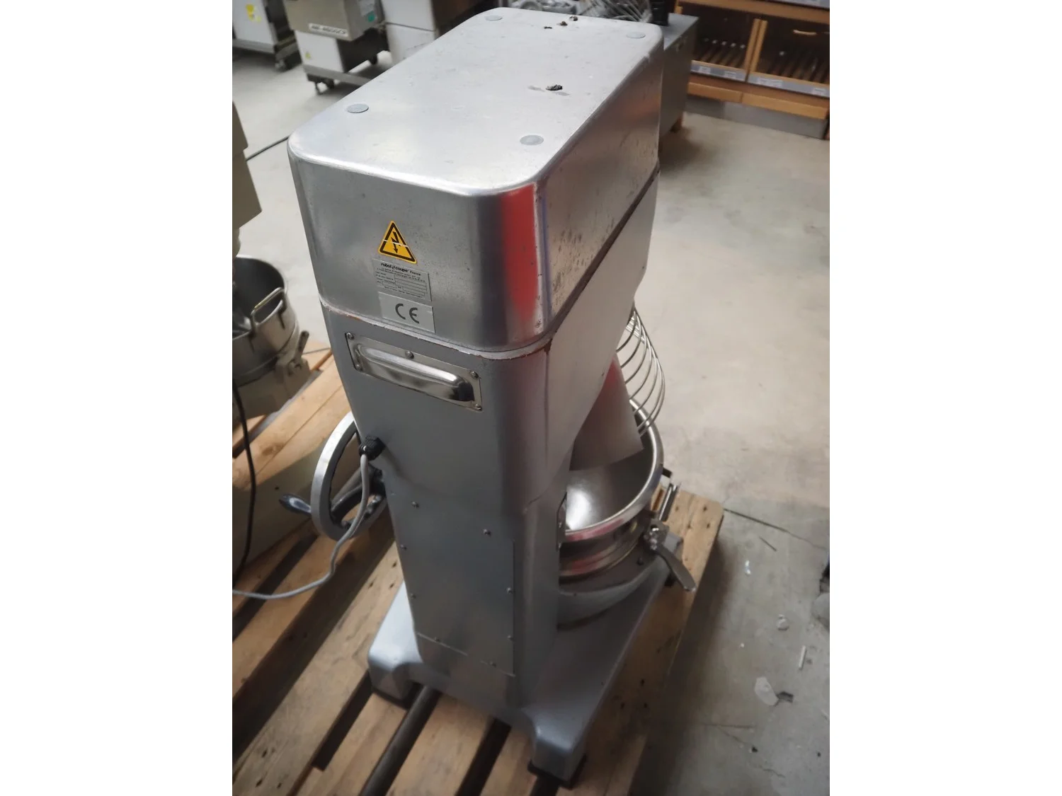 Robot Coupe mixer, model: Robot-Chef 40, serial number: T12701153 11, 400 V, 3 Ph, 50 Hz, 3.4 A, 1500 W, s/s bowl, volume: 40 liter, dimensions: 800 mm x 700 mm x 1320 mm. With whisk, hook and flat beater.