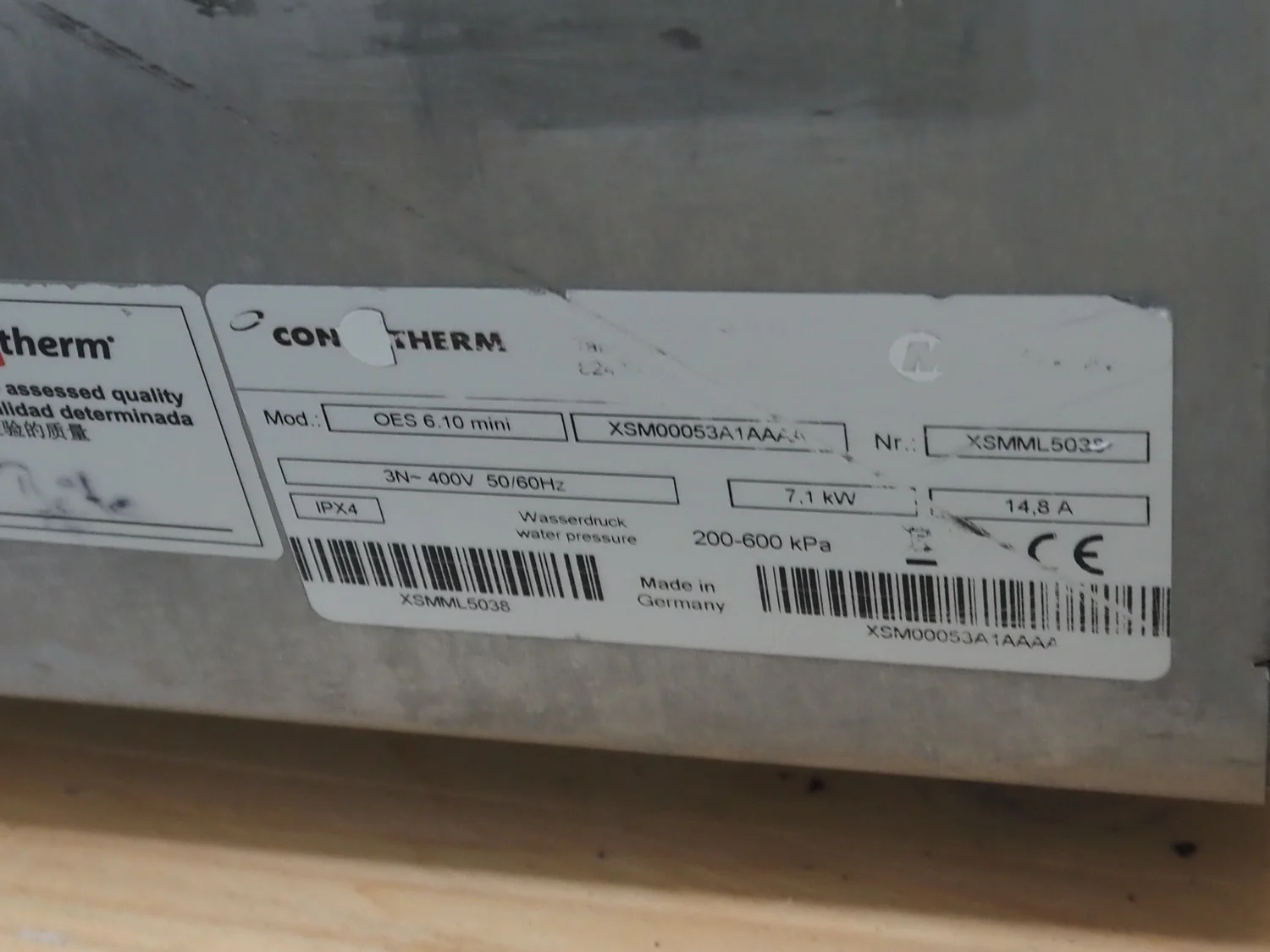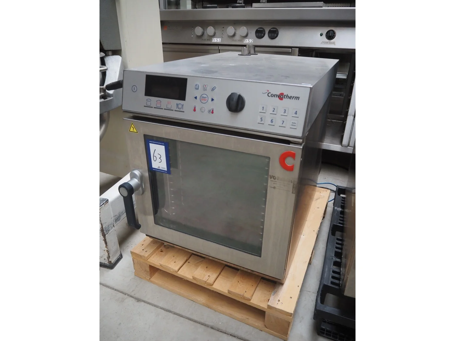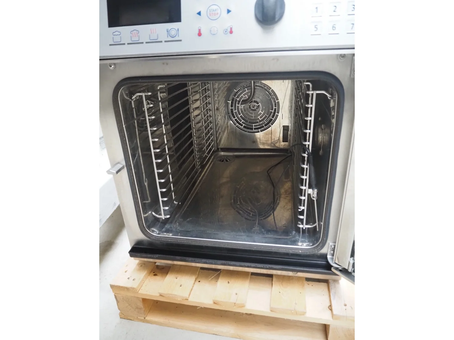 Convotherm combi steamer, model: OES 6.10 mini, number: XSMML503S, 400 V, 3 Ph, 50/60 Hz, 14.8 A, 7.1 kW, 12 floors, floor dimensions: (12x) 500 mm x 325 mm, total dimensions: 850 mm x 520 mm x 660 mm.