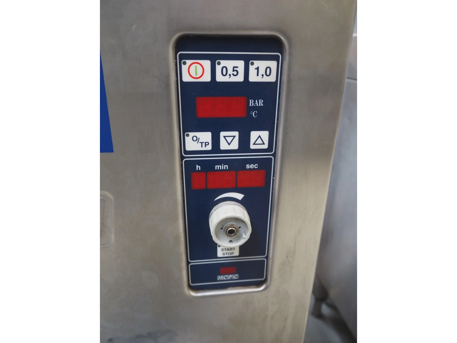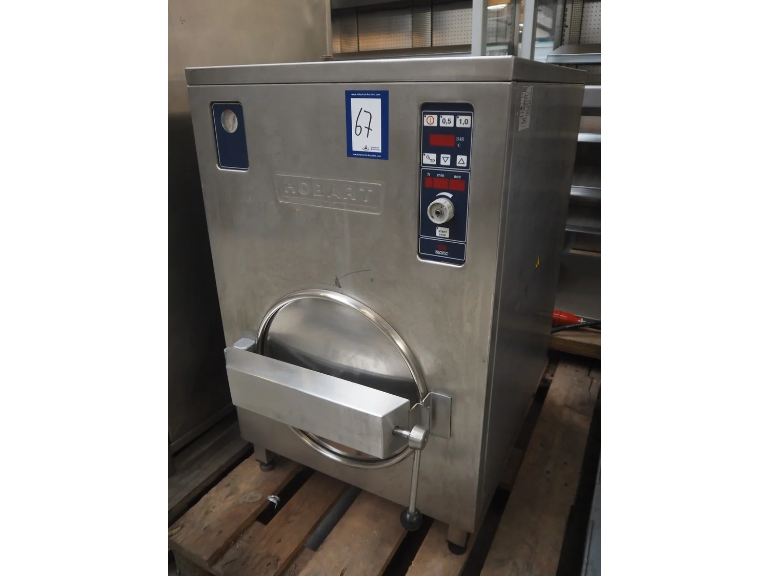 Hobart high speed steam cooker, model: 304G, serial number: 97-0164-366, year of construction: 2002, 400 V, 3 Ph, 50 Hz, 39.2 A, 27.9 W, inside dimensions: 520 mm x 300 mm, total dimensions: 800 mm x 600 mm x 950 mm.