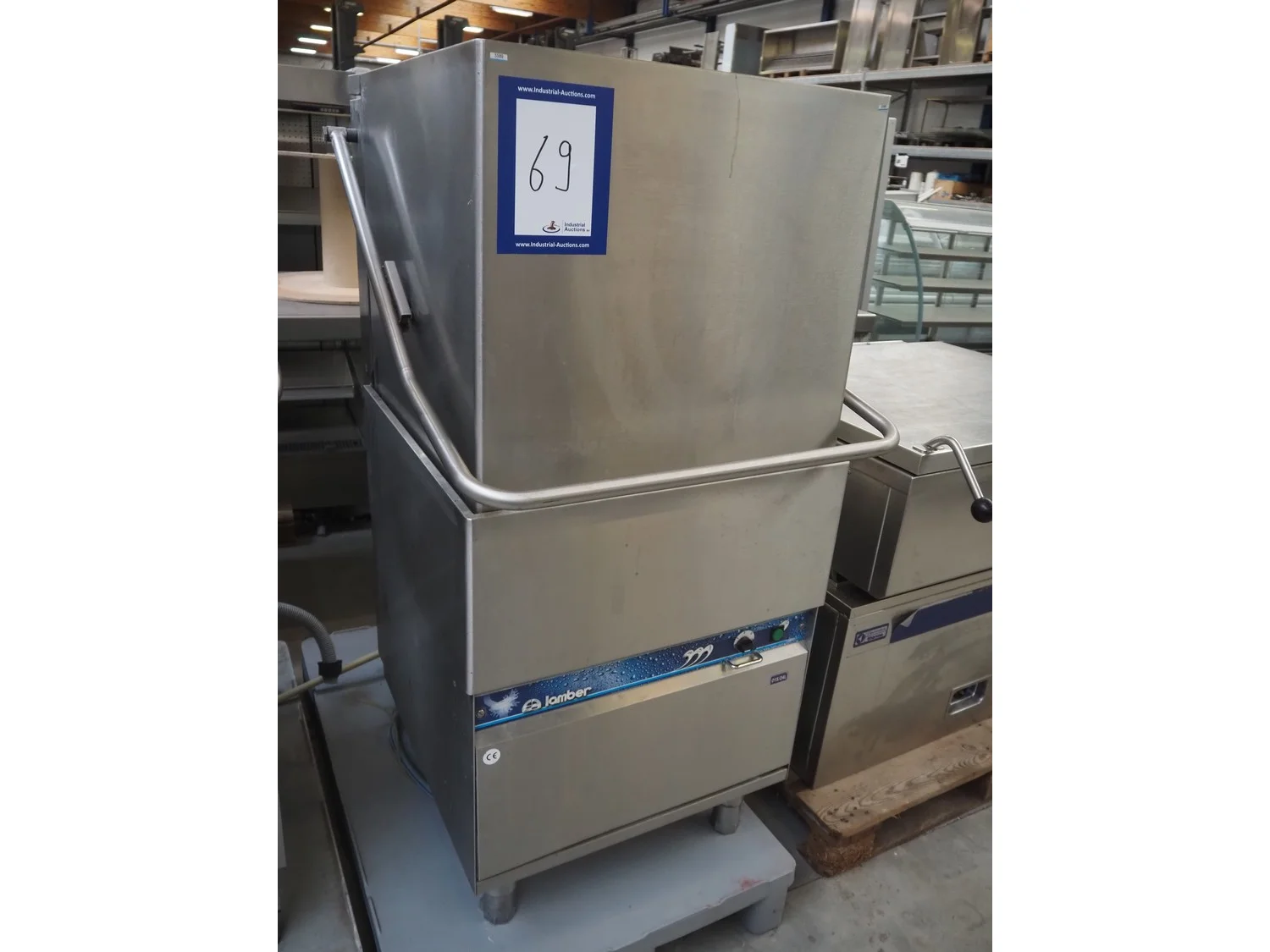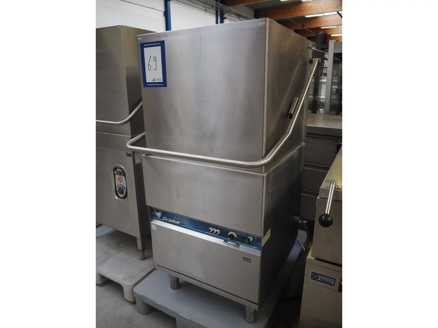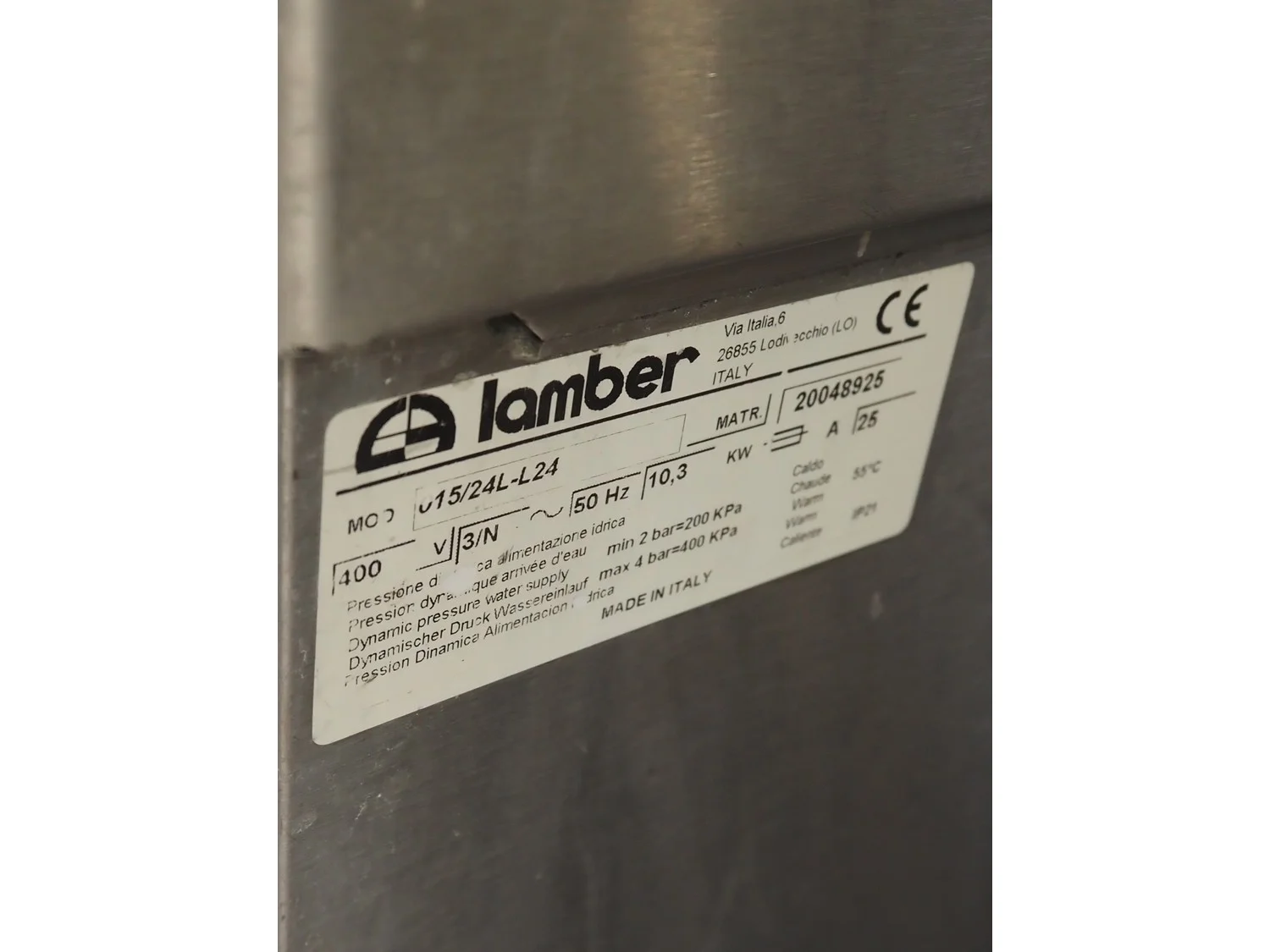Lamber dishwasher, model: 015/24L-L24, number: 20048925, 400 V, 3 Ph, 50 Hz, 25 A, 10.3 kW, dimensions inside: 580 mm x 530 mm, total dimensions: 860 mm x 750 mm x 1430 mm.