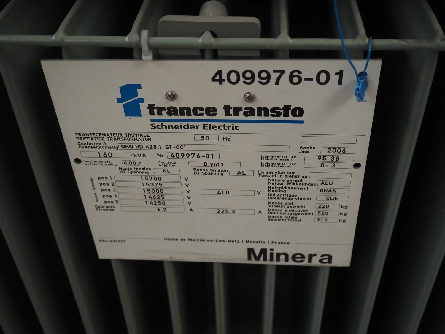 France transfo mobile transformer, type: NBN HD 428.1 S1 -CC', serial number: 409976-01, year of construction: 2006, 400 V, 225.3 A, weight: 915 kg, 160 kVA, dimensions: 800 mm x 1100 mm x 1380 mm.