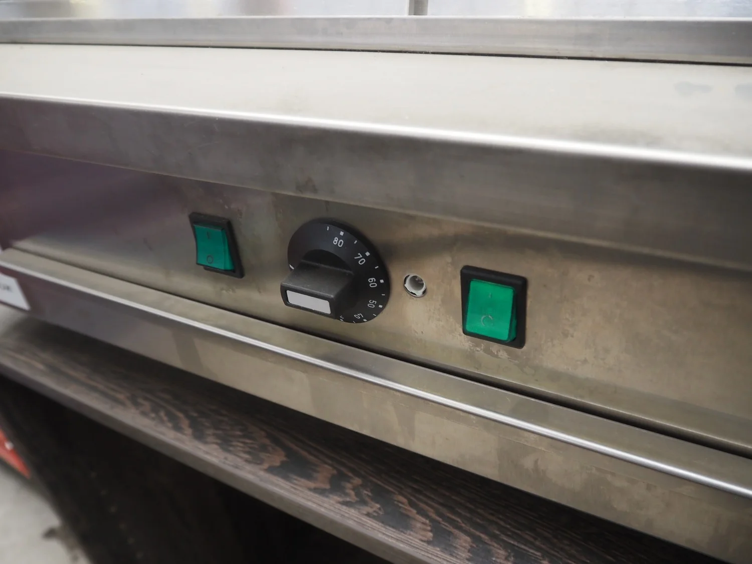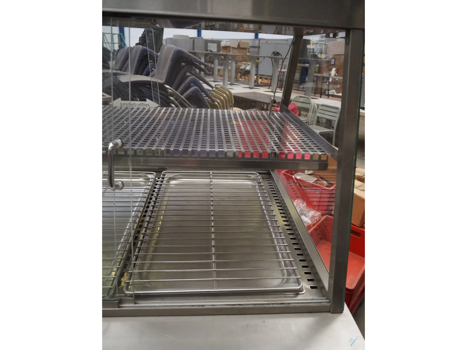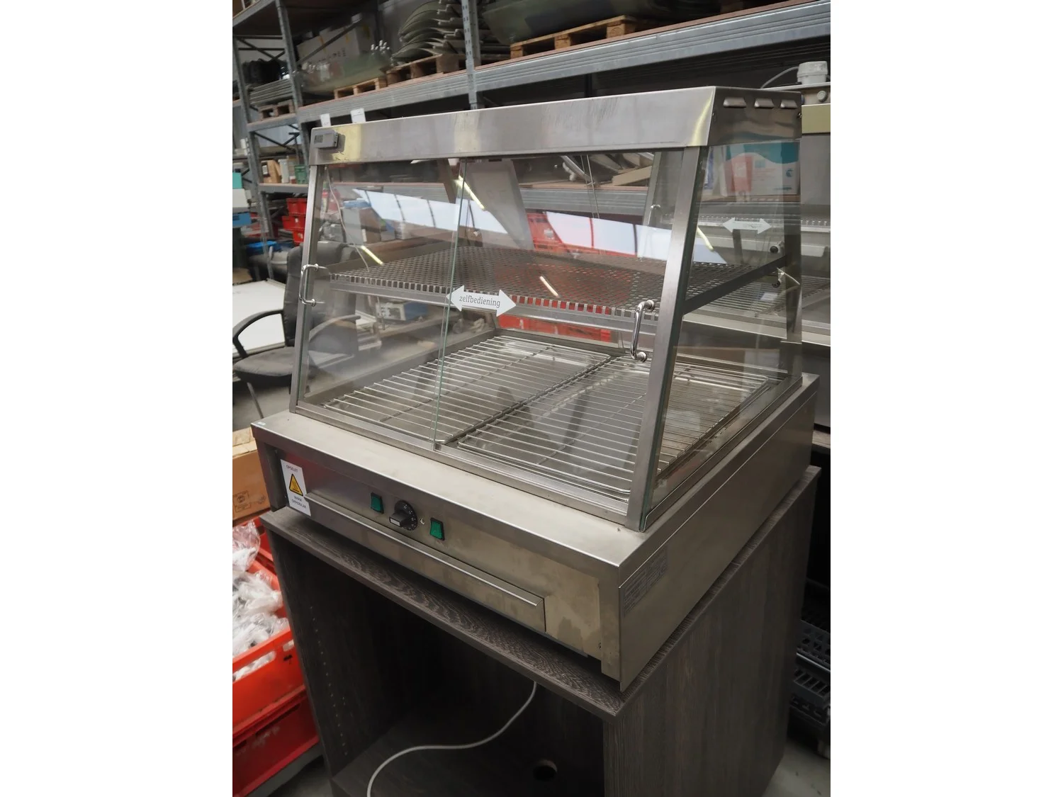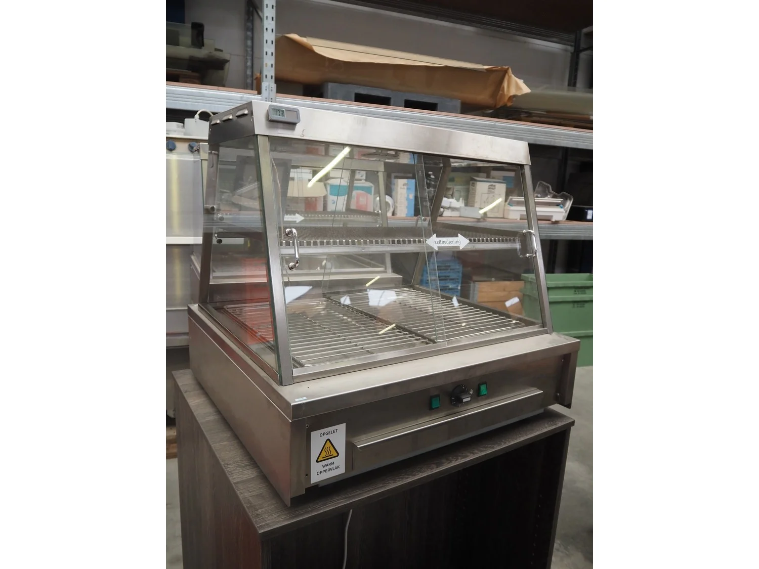 Alpina heated showcase, type: ADA WG 20-11, number: 144, year of construction: 2017, 230 V, 50 Hz, 1600 W, 50 kg, total dimensions: 800 mm x 750 mm x 1760 mm.