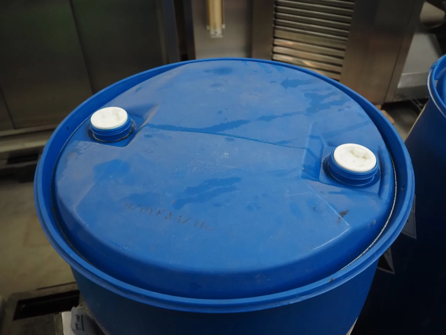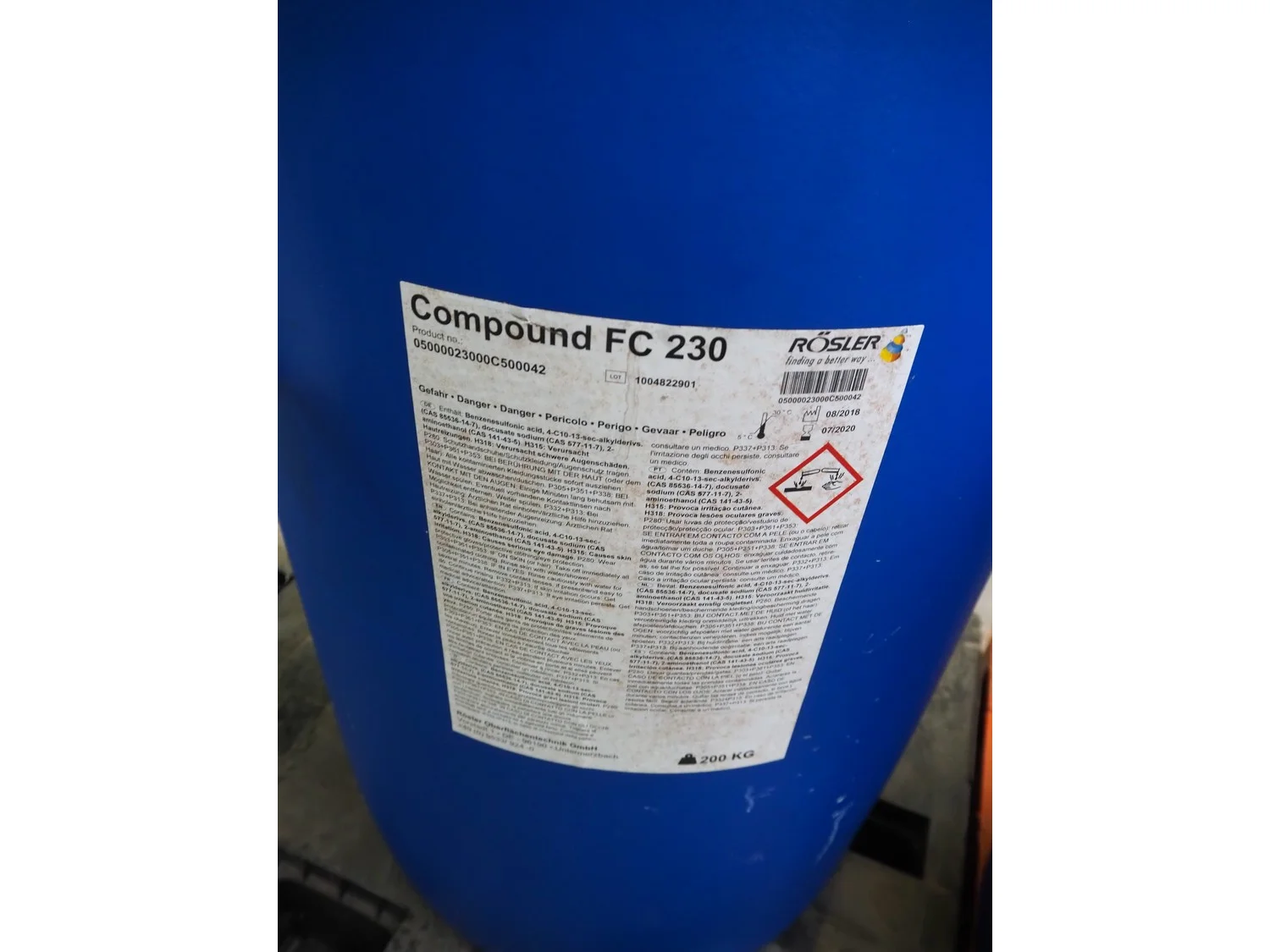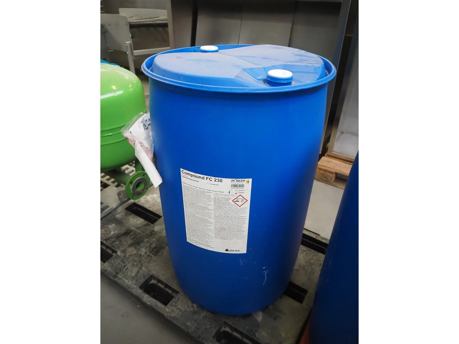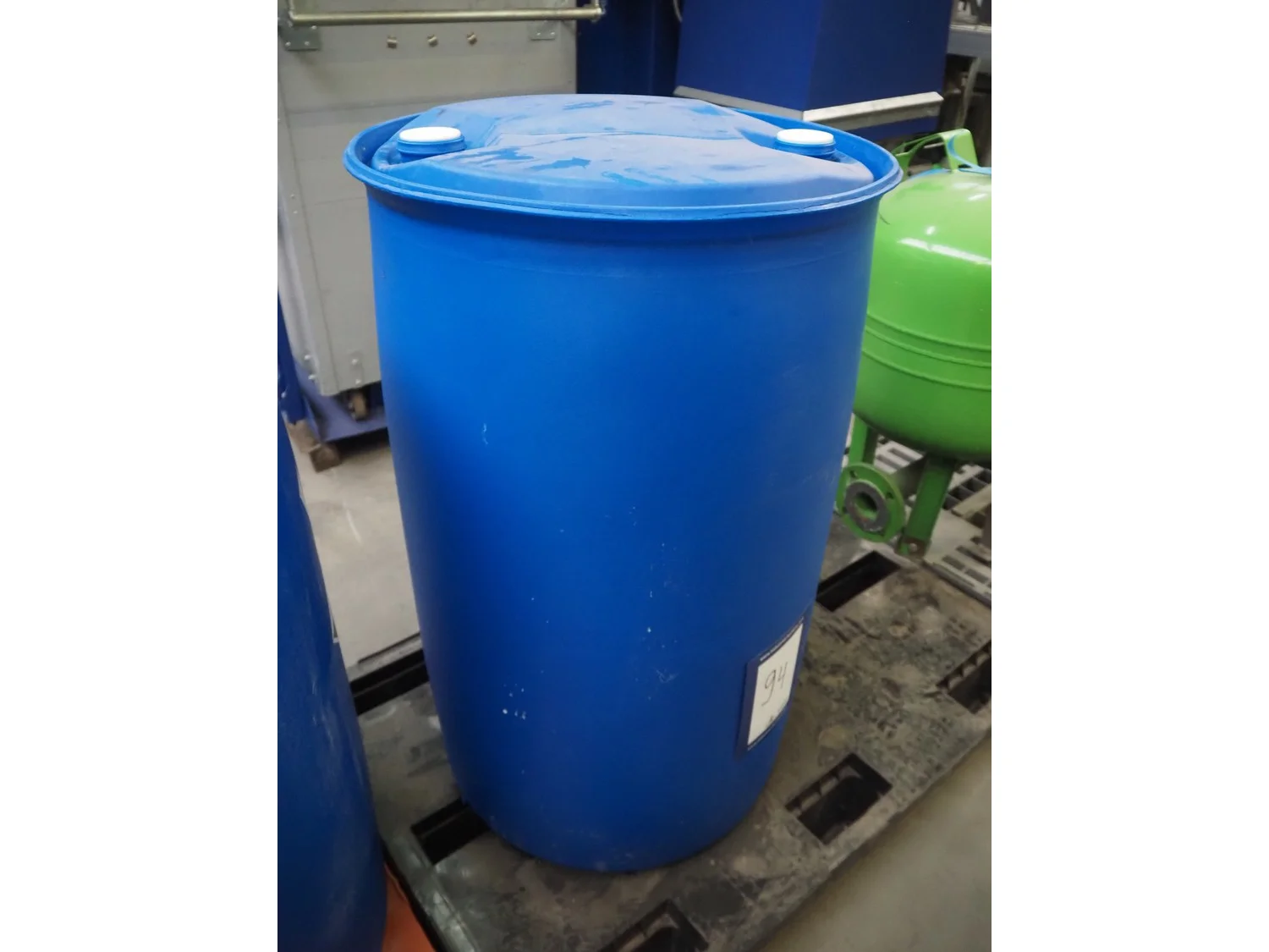 Rösler plastic barrel, volume: 200 liter, cleaning and polishing compound for non-ferrous metal and stainless steel, dimensions: ø 585 mm x 950 mm.