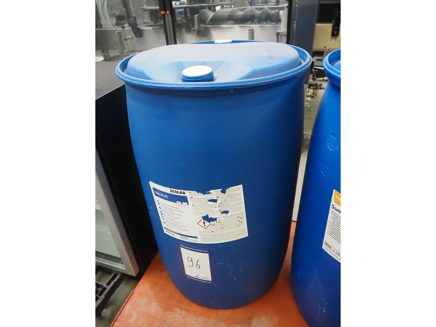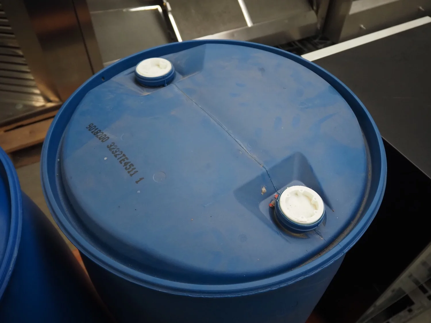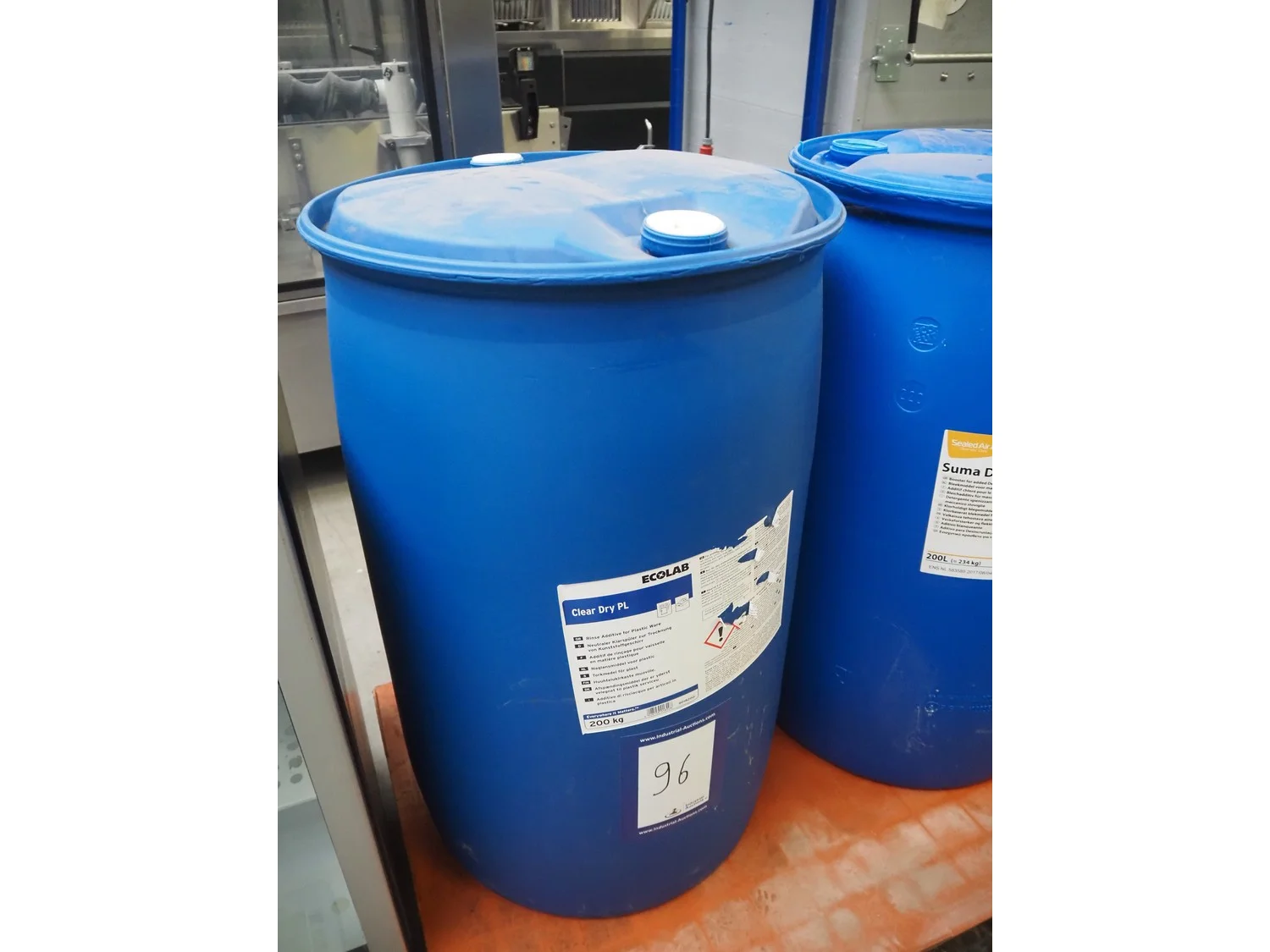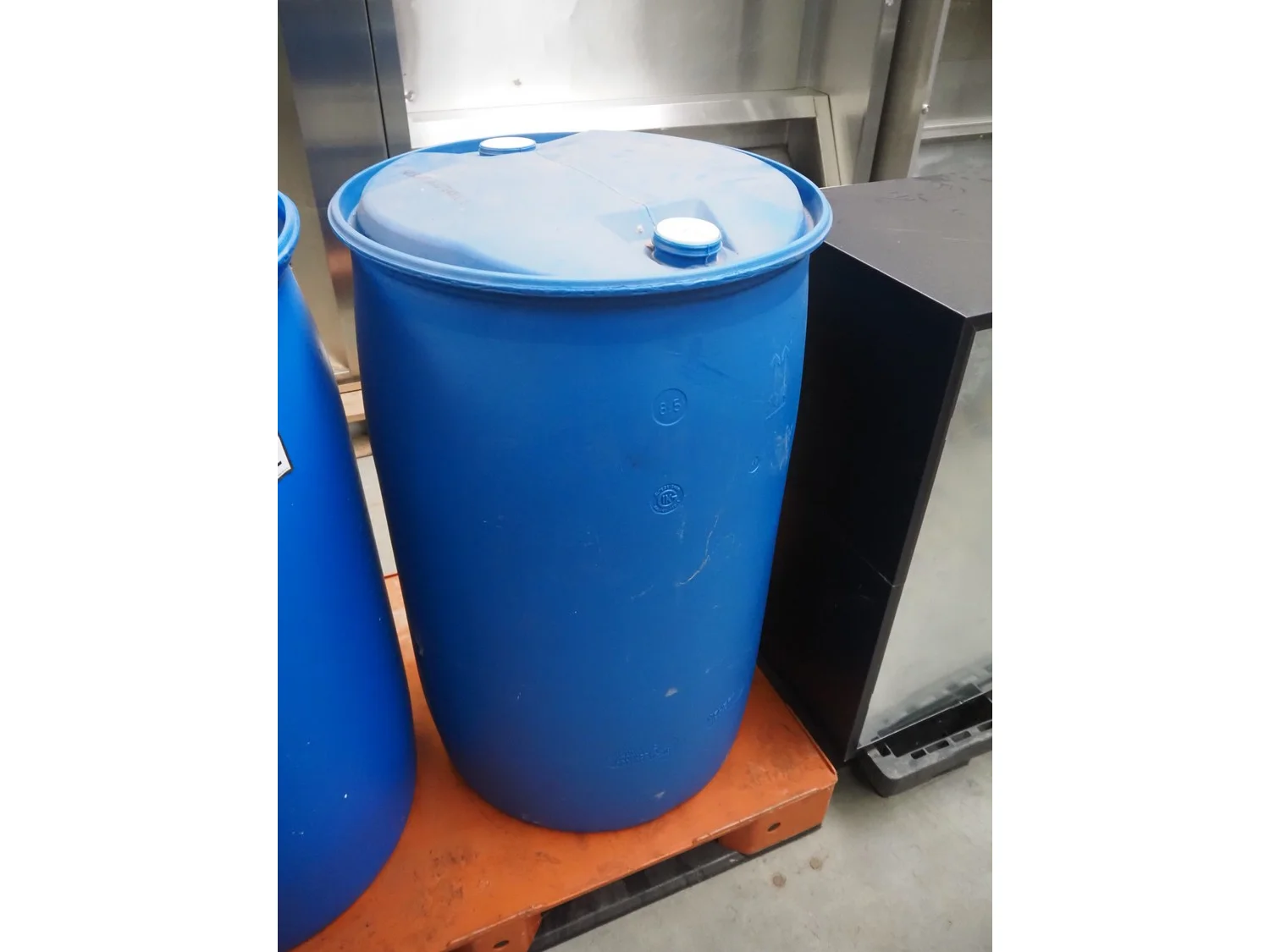 Rösler plastic barrel with polish for plastic, volume: 200 liter, dimensions: ø 585 mm x 950 mm.