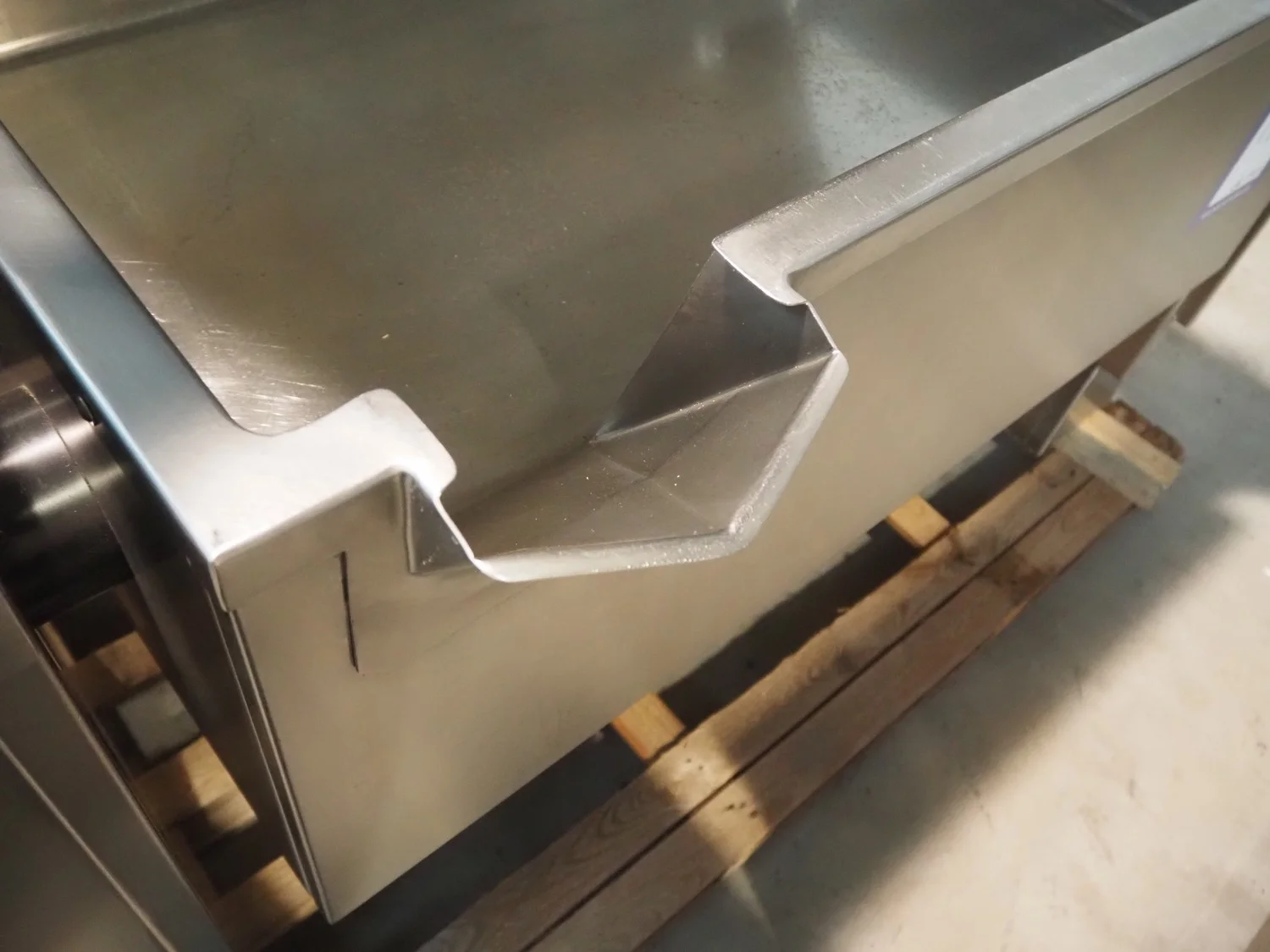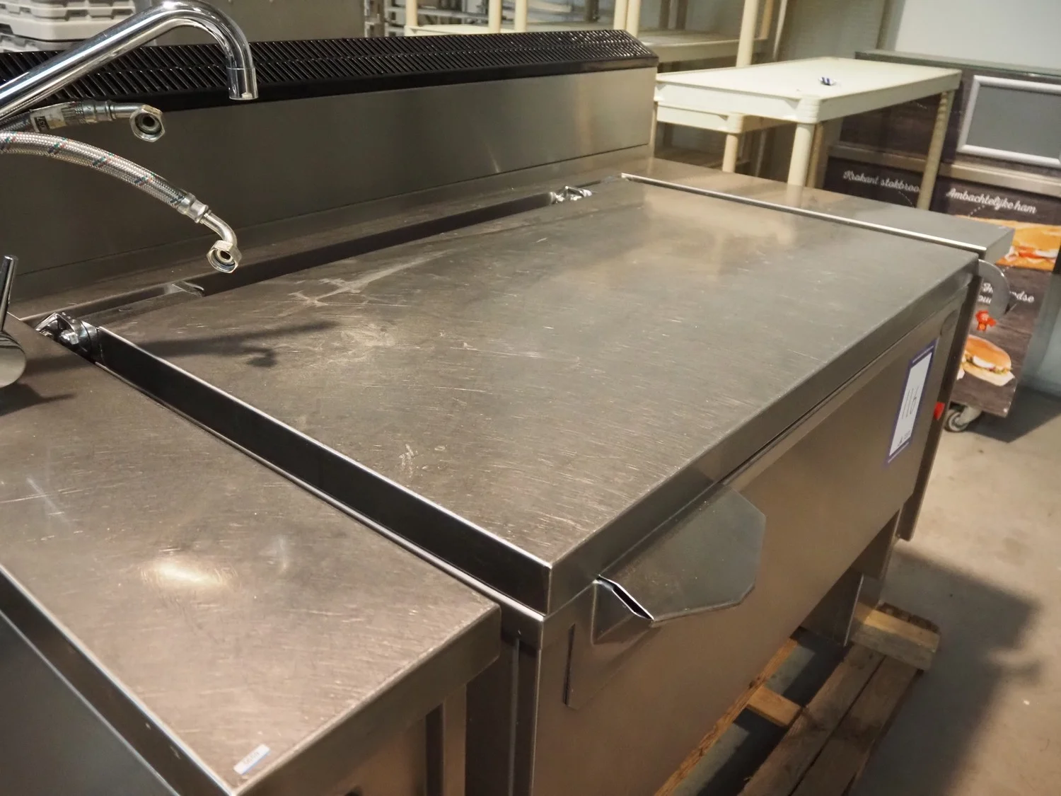 Rubbens braising pan, type: KBP311G, number: 2010 047068 0001, 230 V, 50 Hz, 10 A, 0.7 kW, dimensions inside: 1050 mm x 610 mm x 210 mm, total dimensions: 1640 mm x 1000 mm x 1250 mm.