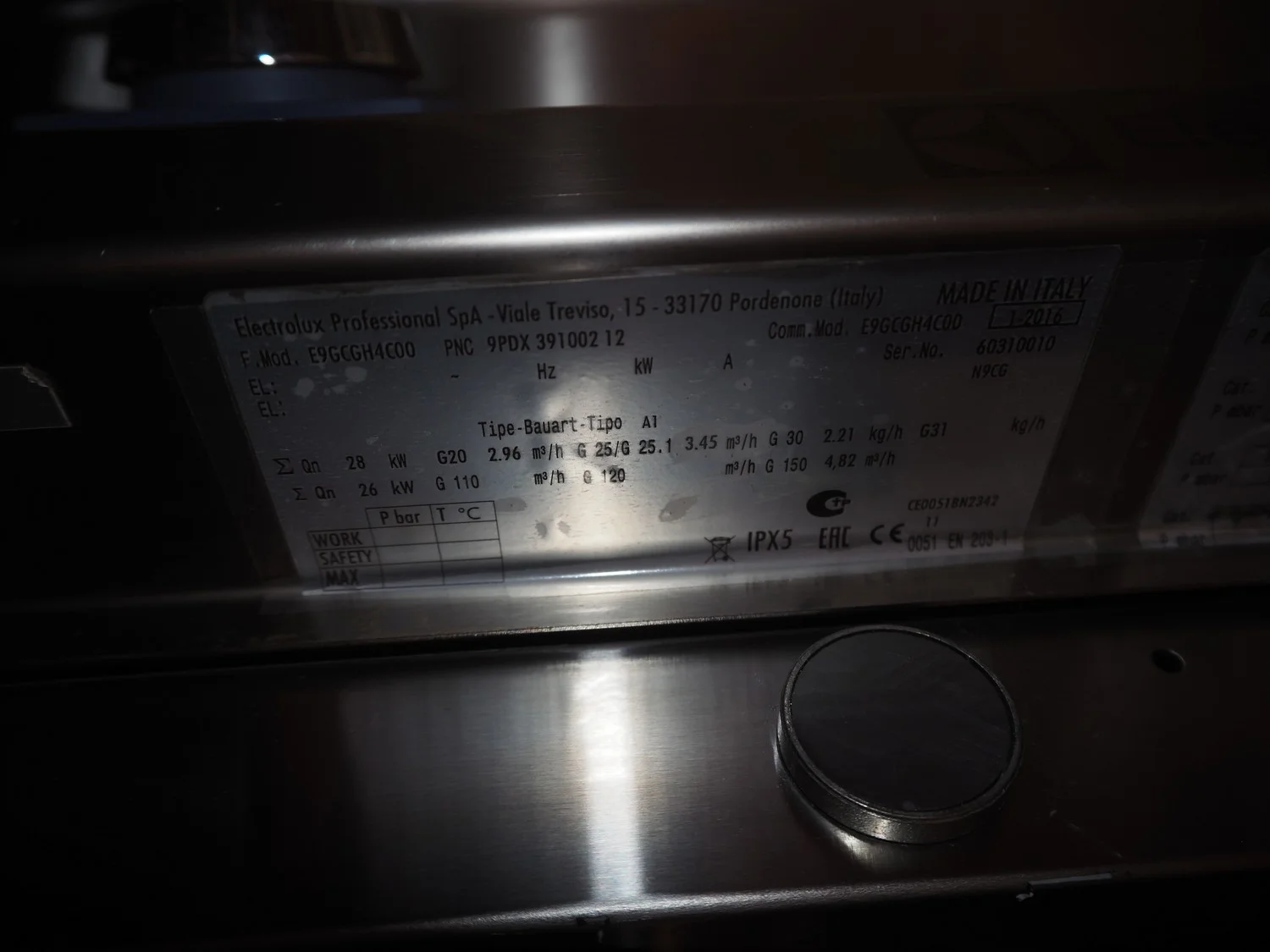 Electrolux 4-pits stove, model: E9GCGH4C00, serial number: 60310010, dimensions: 950 mm x 800 mm x 950 mm.
