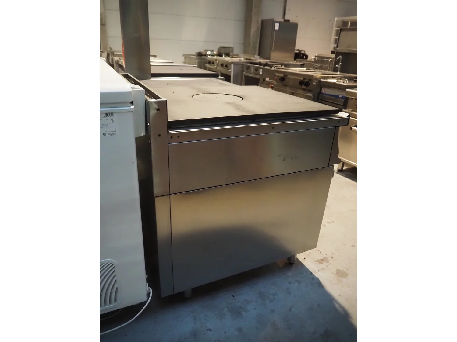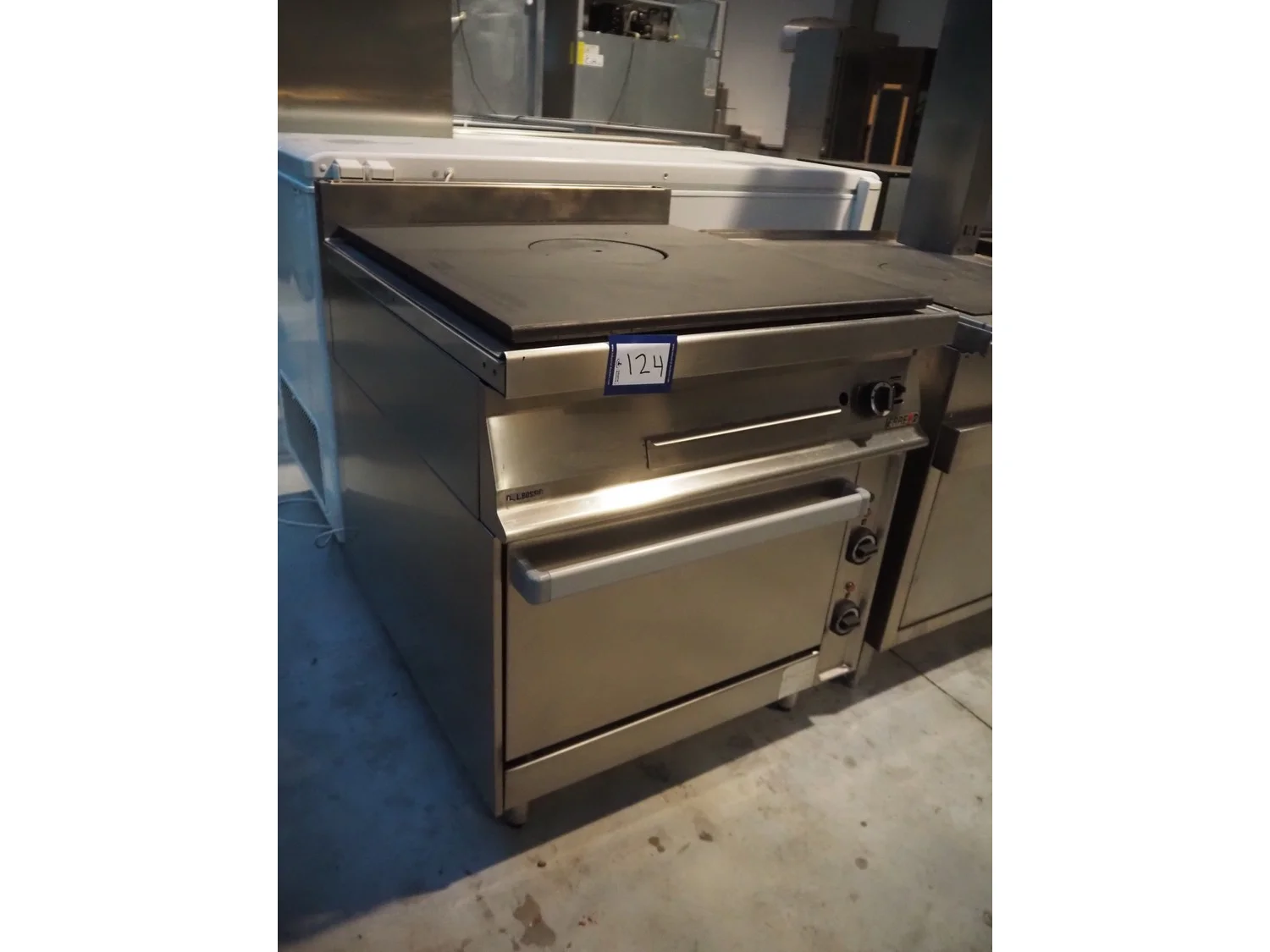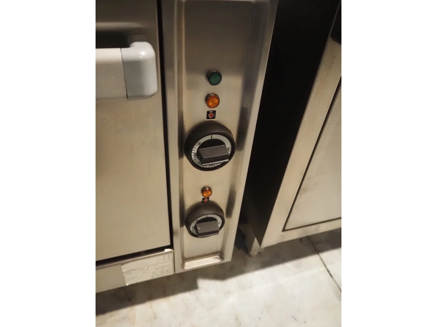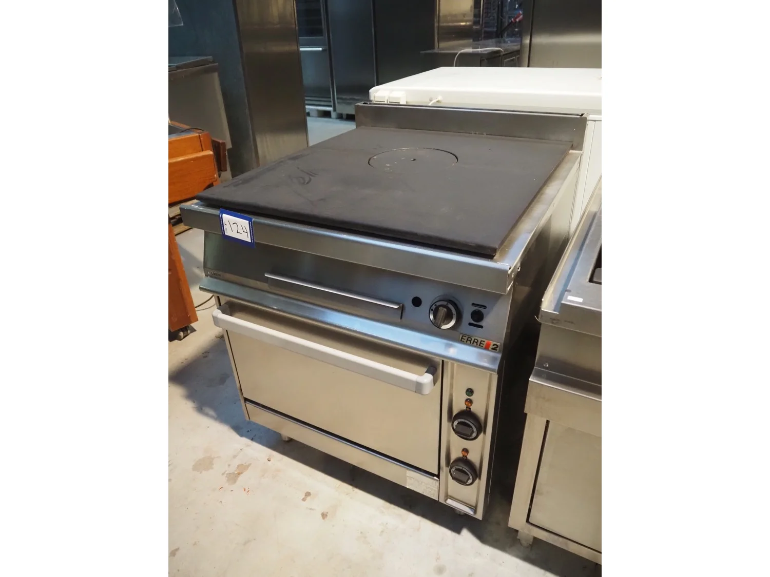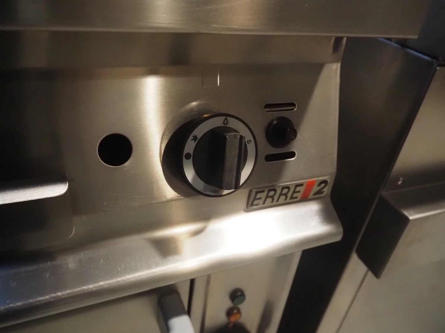 ERRE 2 srl gas stove with oven, model: 90/200 FE, number: OM12057002, 400 V, 3 Ph, 50 Hz, 6.55 kW, dimensions: 800 mm x 900 mm x 970 mm.