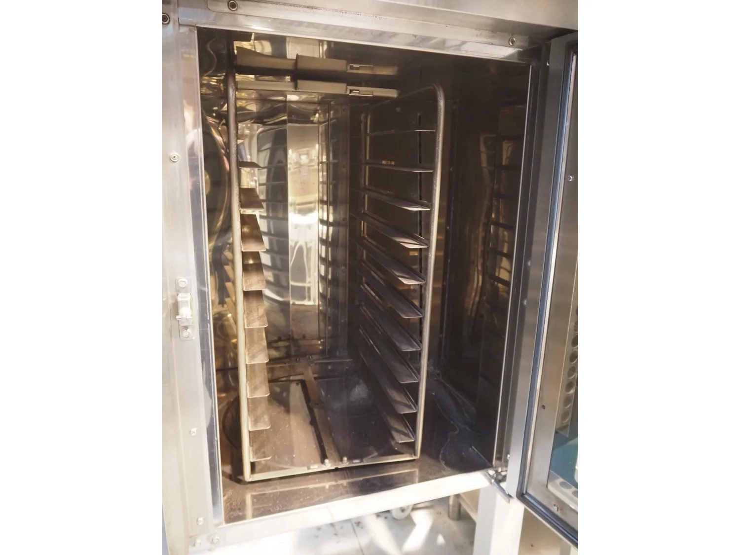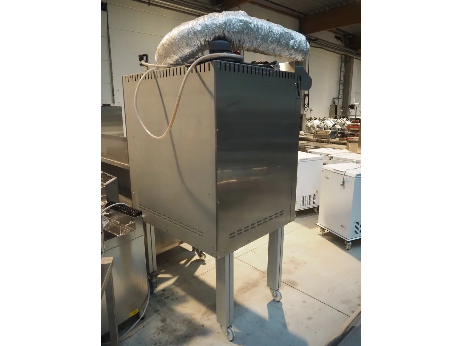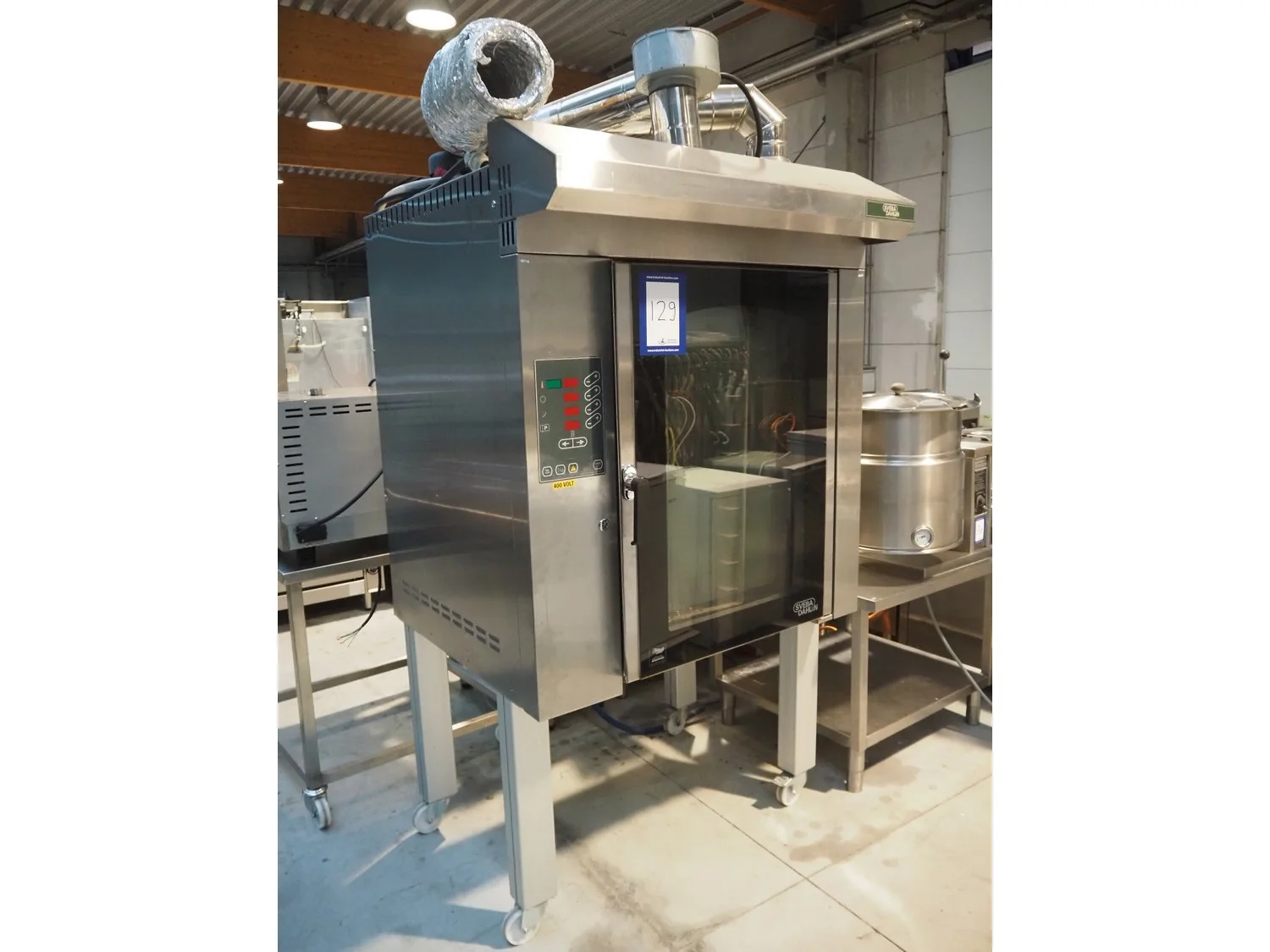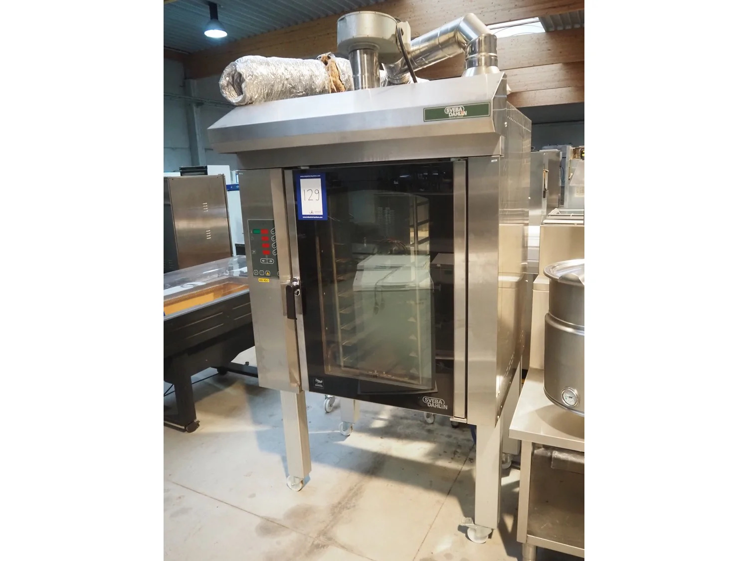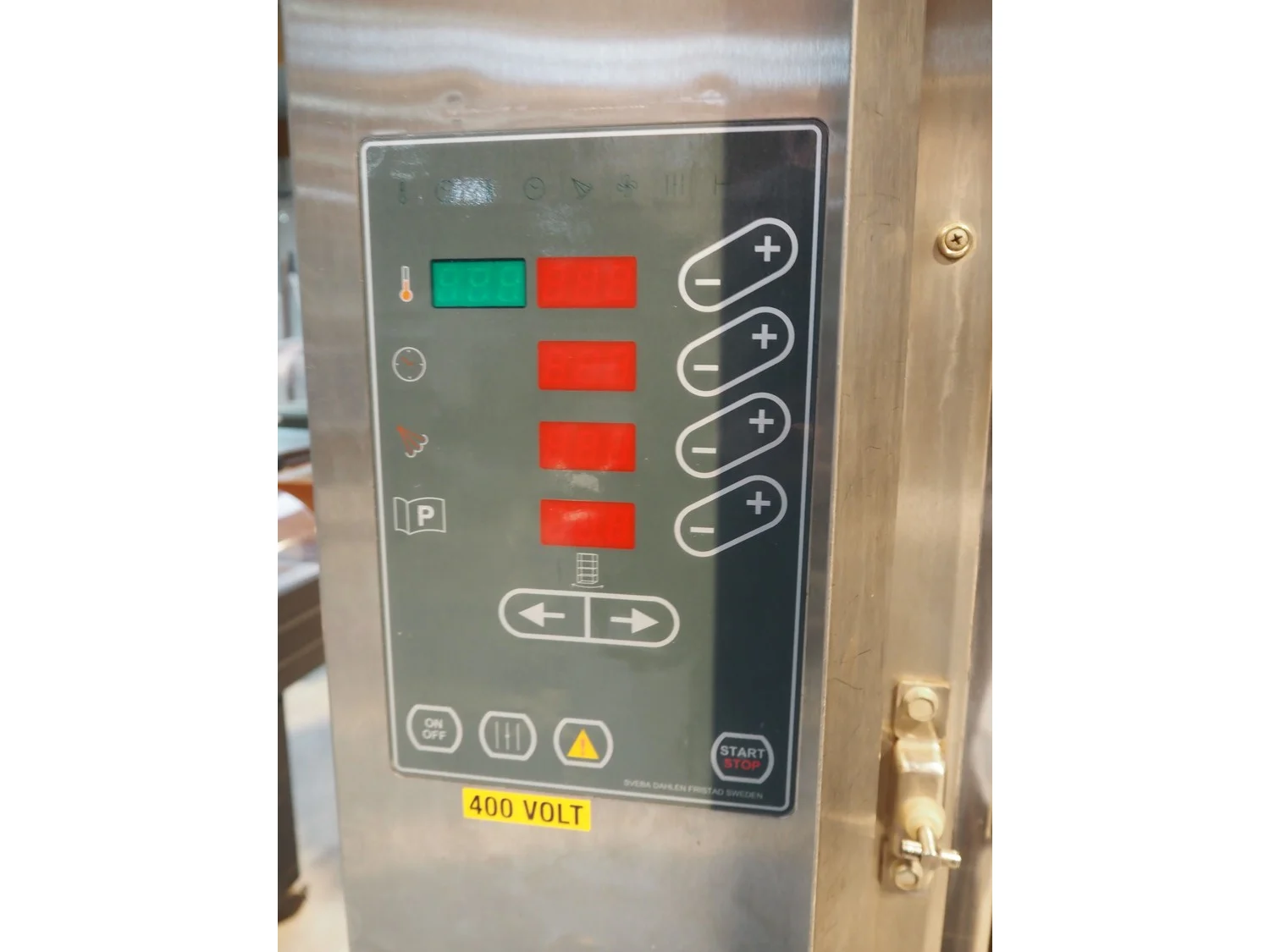 Sveba Dahlen AB mobile rotary oven with hood, model number: S400, serial number: M219995 /0924, 400 V, 3 Ph, 50 Hz, 23 kW, 10 floors, floor dimensions: (10x) 600 mm x 400 mm, total dimensions: 1180 mm x 1100 mm x 2100 mm.