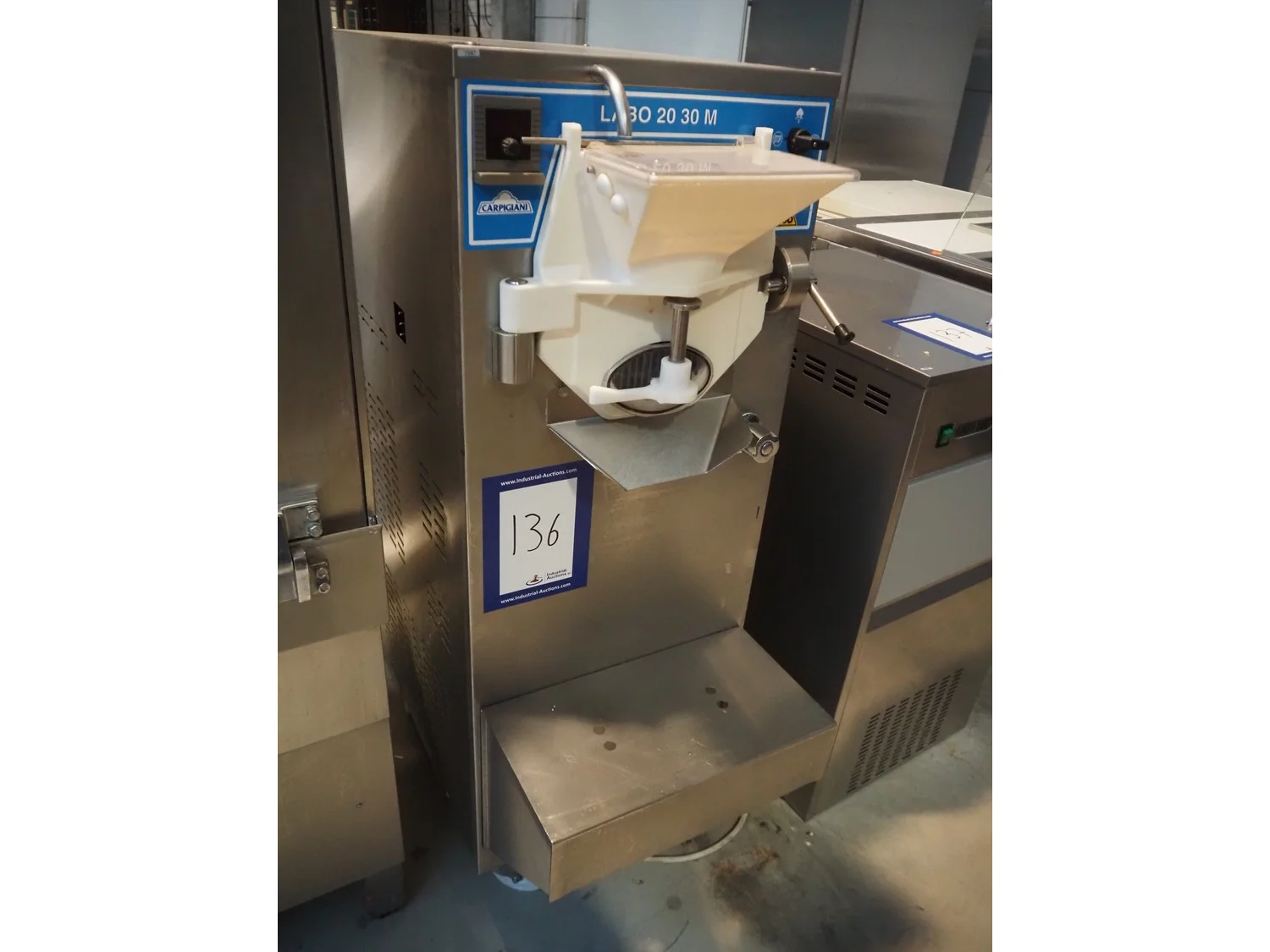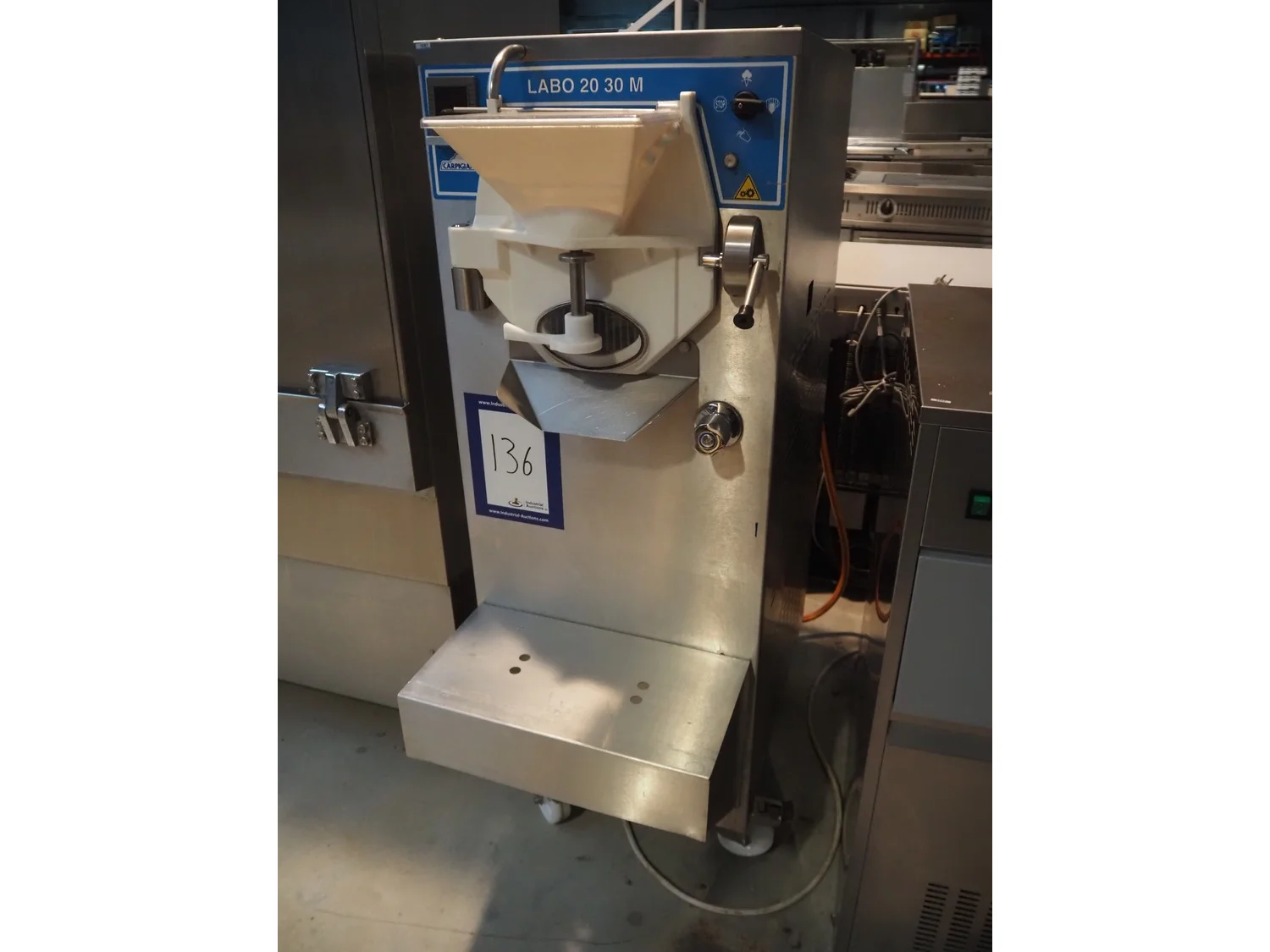 Carpigiani mobile ice cream machine, model: LABO 20/30 M, serial number: IC32714, 380-415 V, 3 Ph, 50 Hz, 16 A, 2.9 kW, refrigerant: R404a, 0.7 kg, dimensions: 870 mm x 460 mm x 1280 mm.