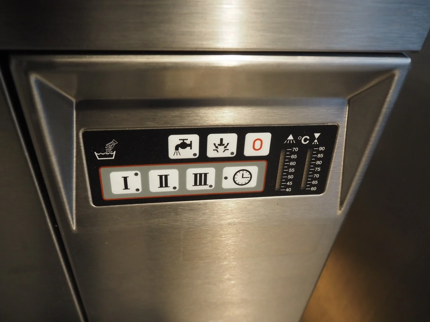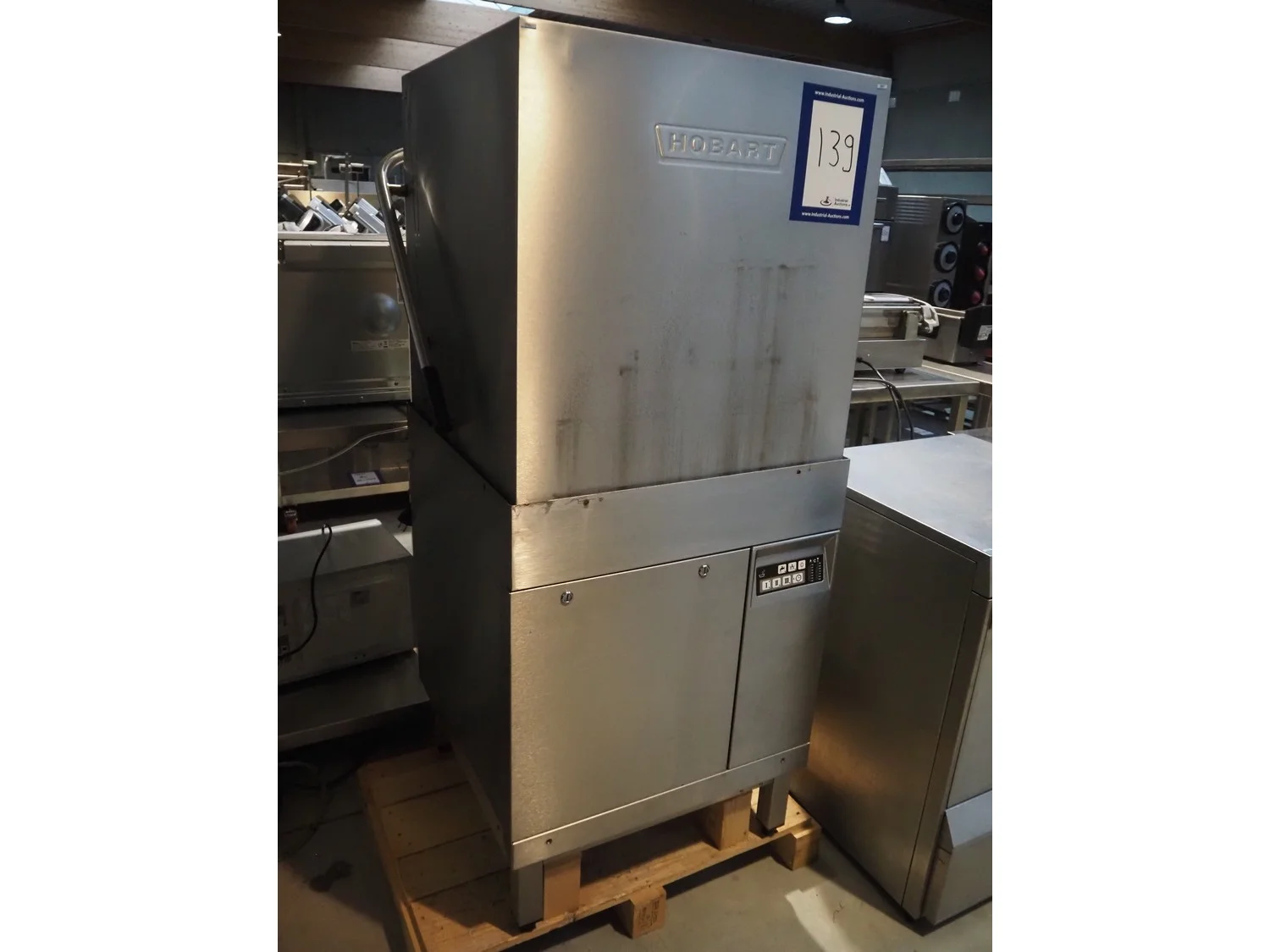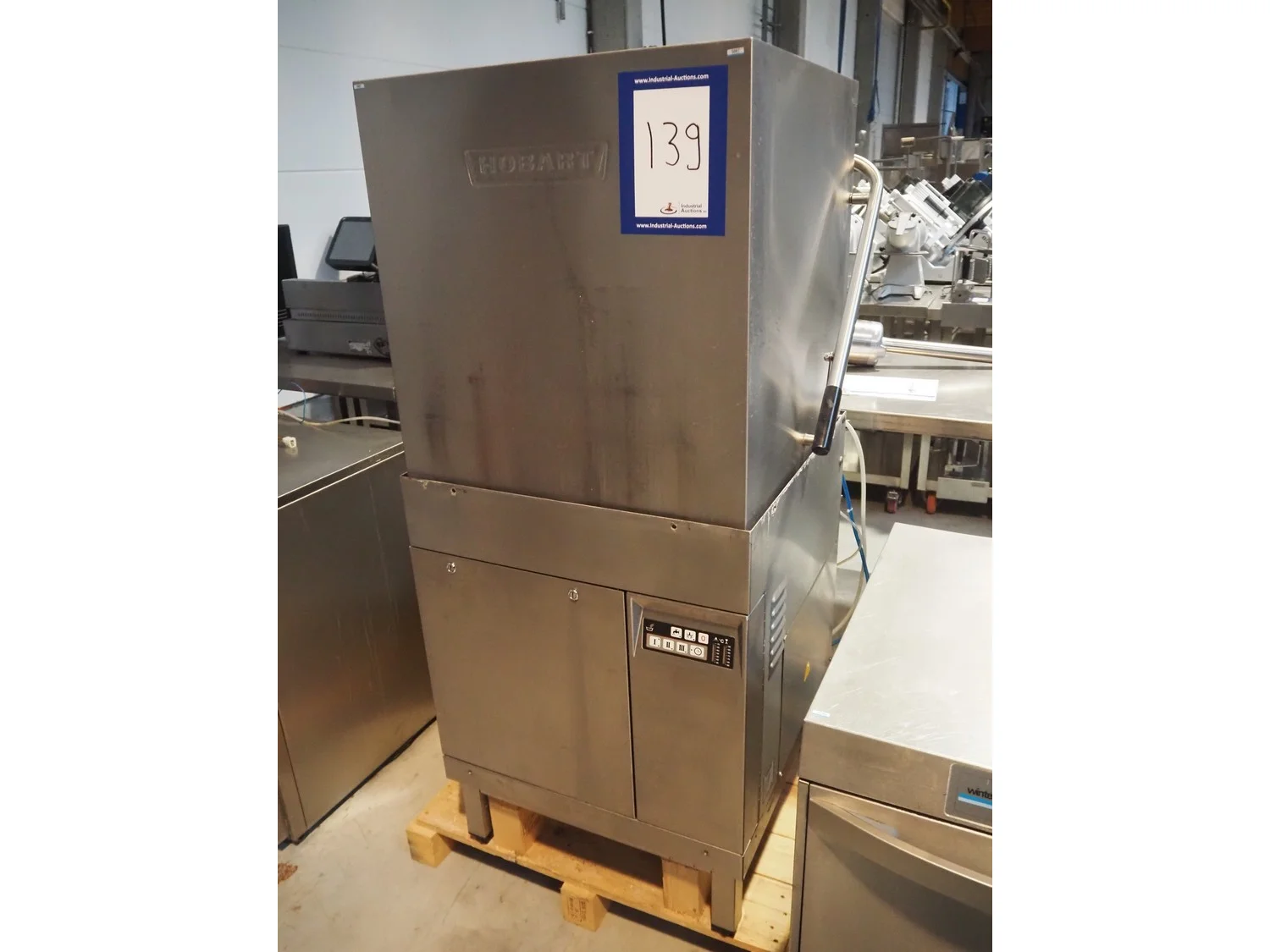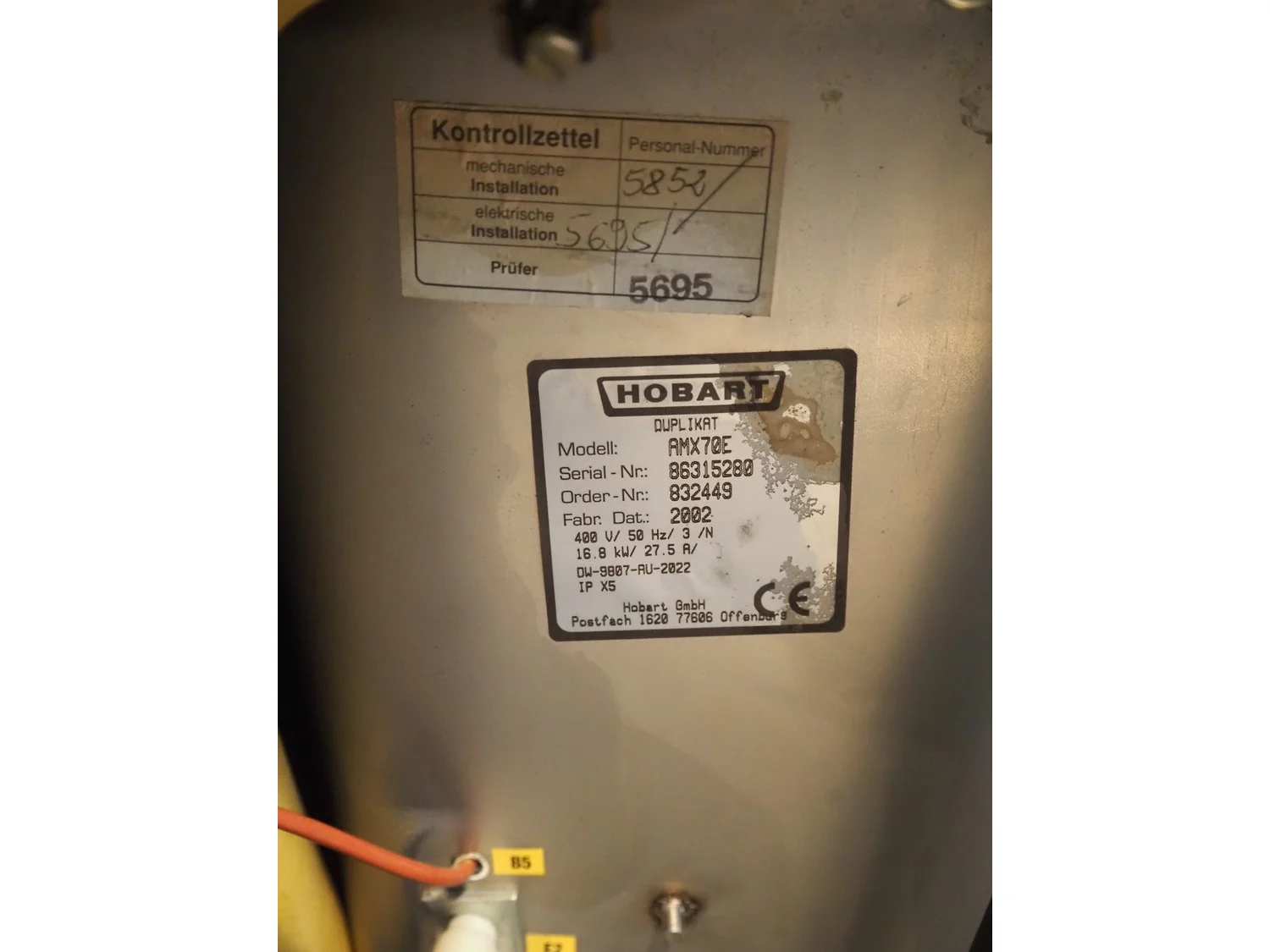 Hobart dishwasher, model: AMX70E, serial number: 86315280, year of construction: 2002, 400 V, 3 Ph, 50 Hz, 27.5 A, 16.8 kW, dimensions inside: 500 mm x 500 mm, total dimensions: 740 mm x 700 mm x 1480 mm.