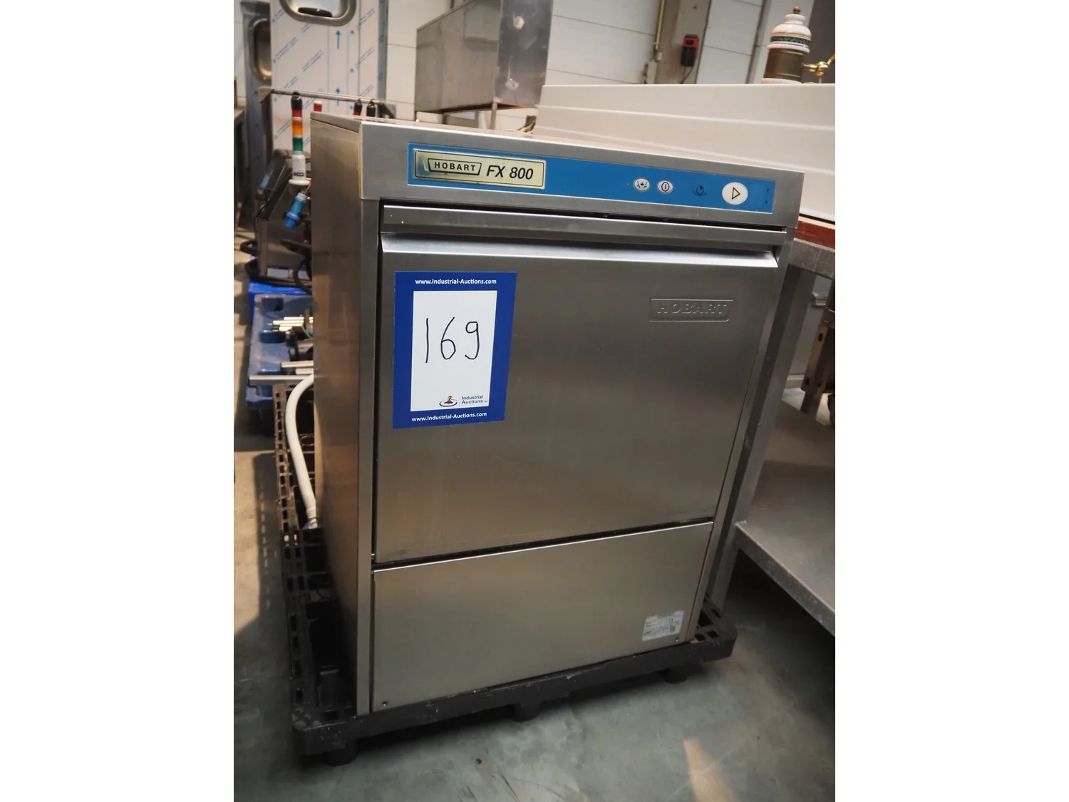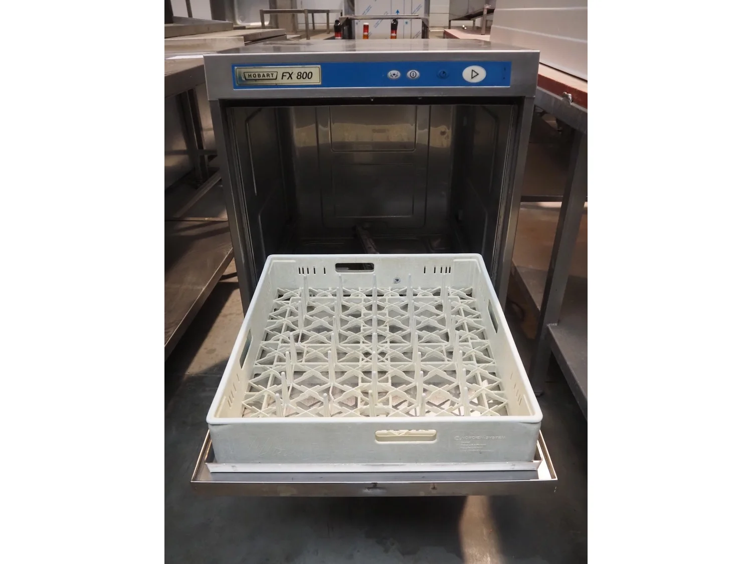 Hobart dishwasher, model: FX800, serial number: 87171534, year of construction: 2005, 400 V, 50 Hz, 16 A, 9.1 kW, dimensions inside: 490 mm x 490 mm, total dimensions: 600 mm x 600 mm x 820 mm.