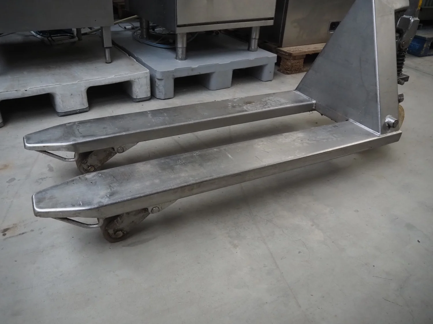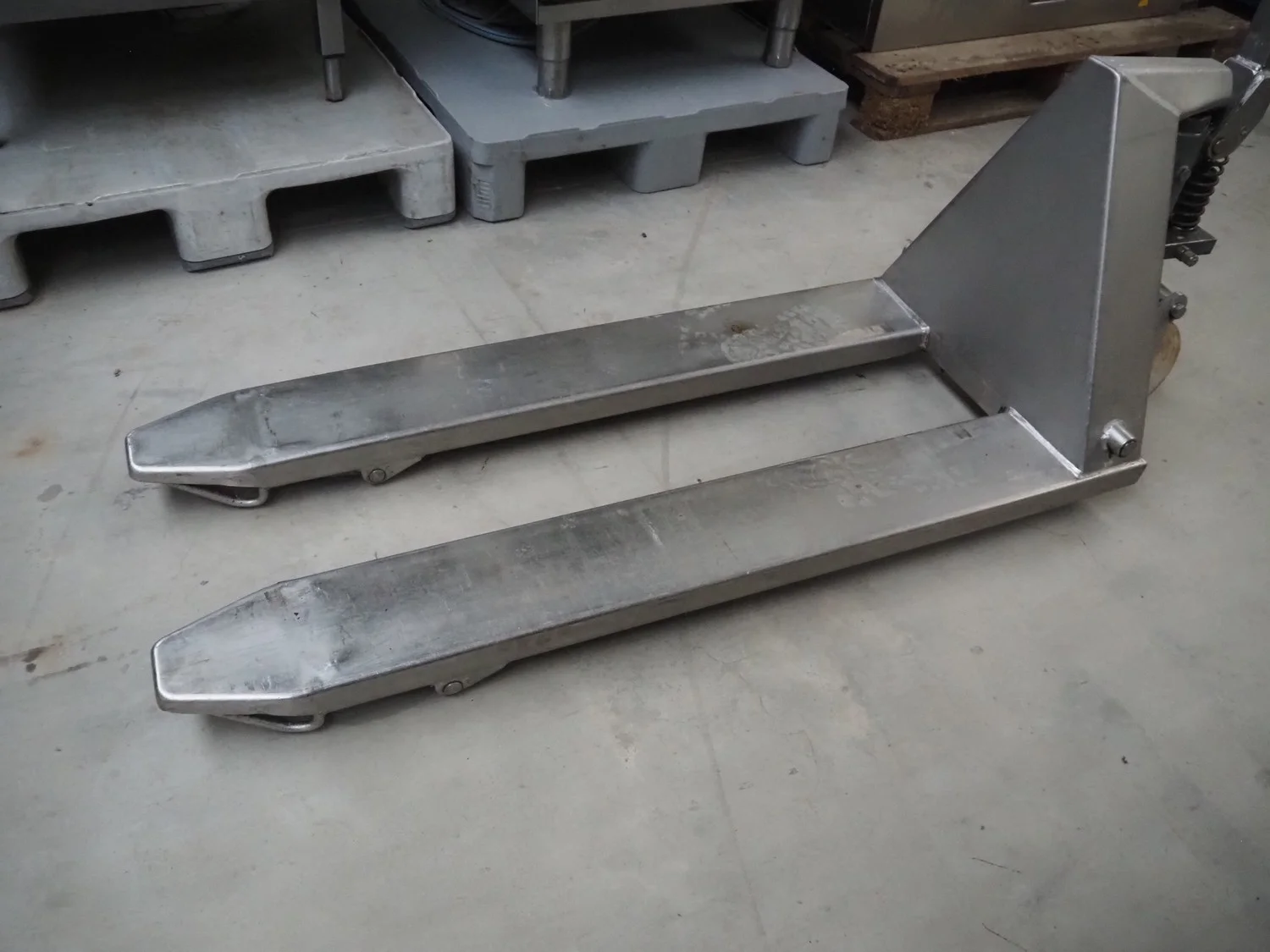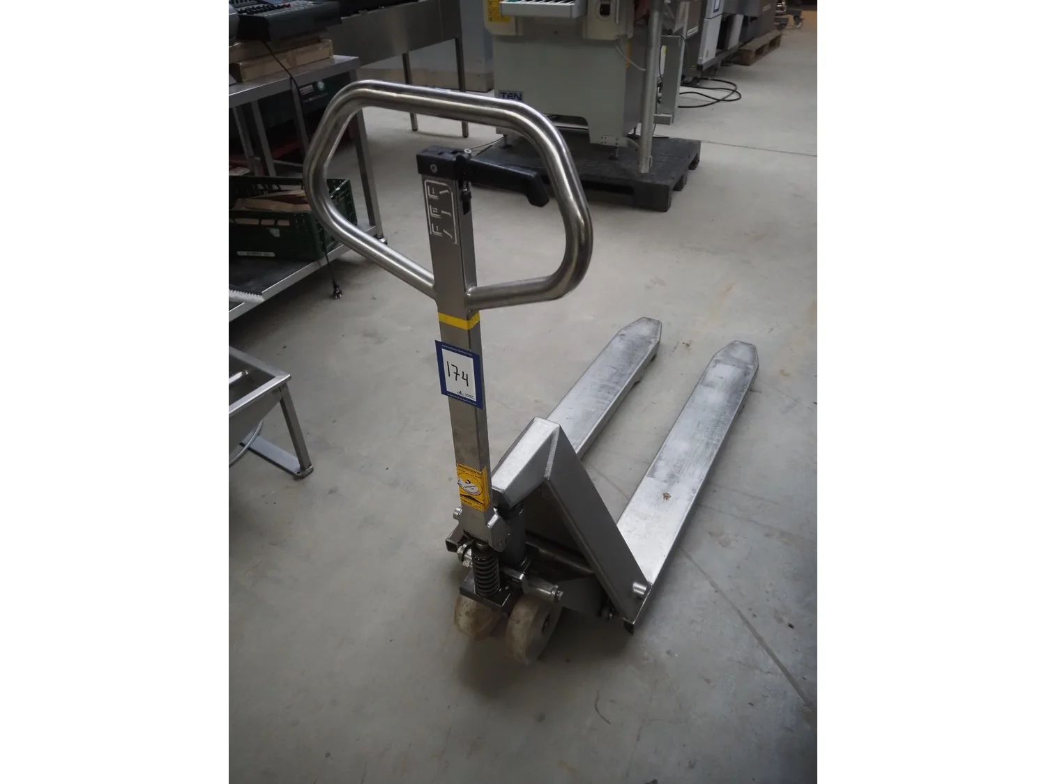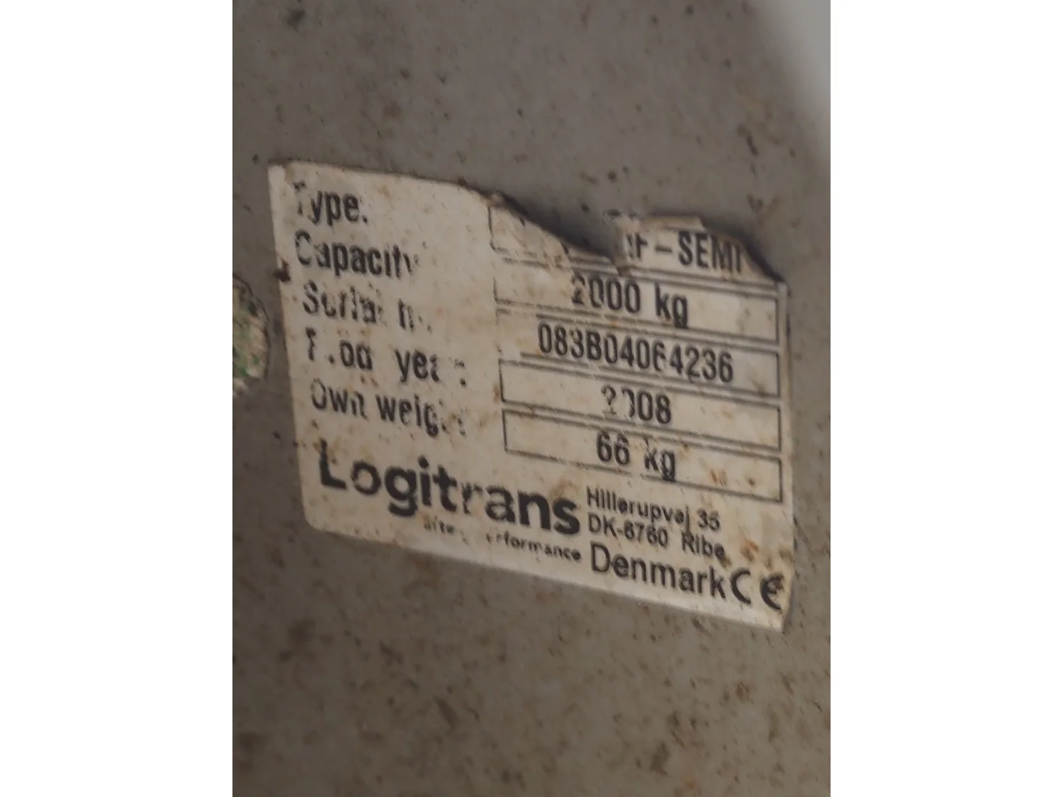 Logitrans s/s pallet lifter, serial number: 083B04064236, year of construction: 2008, capacity: 2000 kg, fork length: 1140 mm, total dimensions: 1600 mm x 520 mm x 1220 mm.