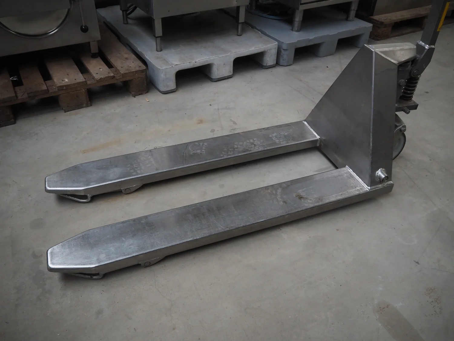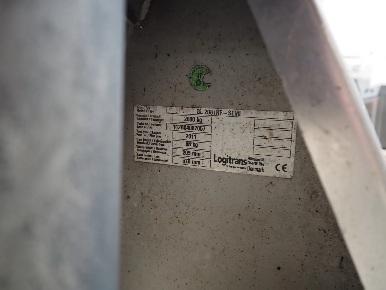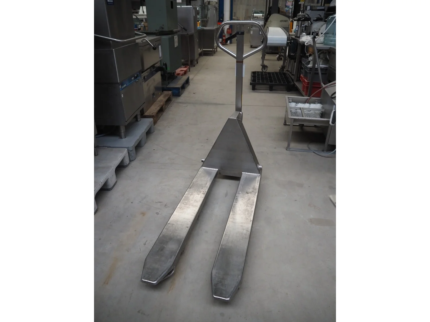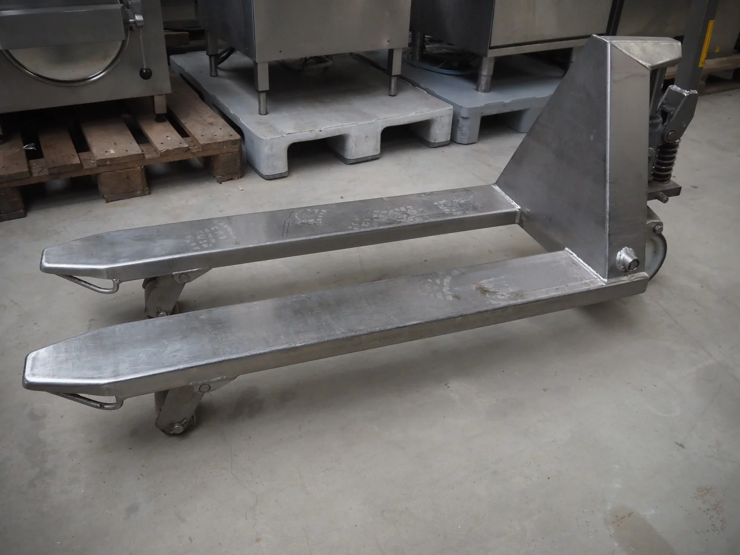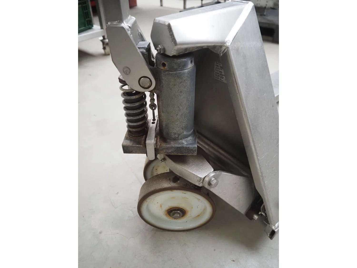 Logitrans s/s pallet lifter, type: GL 2081RF-SEMI, serial number: 112B04087057, year of construction: 2011, capacity: 2000 kg, fork length: 1140 mm, total dimensions: 1600 mm x 520 mm x 1220 mm.