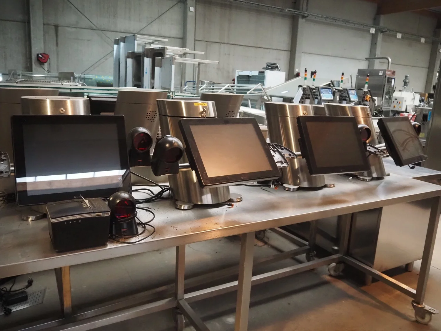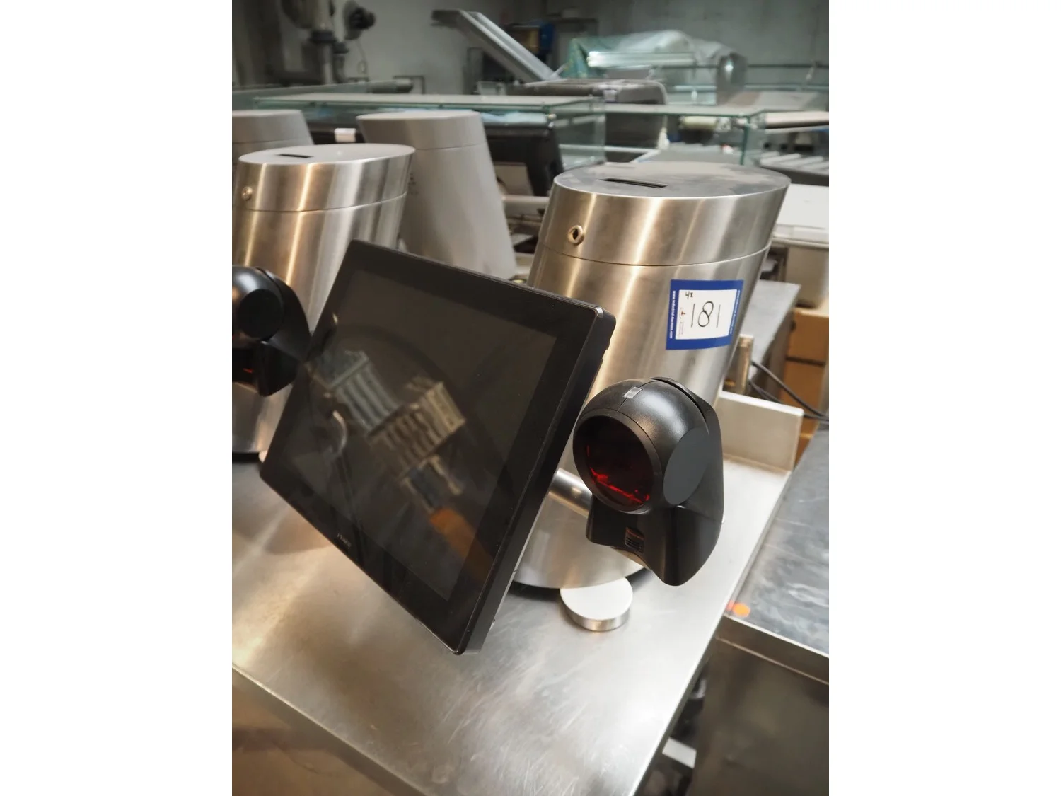 4 Quarto payment systems with receipt printer from which 6 in a frame, dimensions each: 600 mm x 600 mm x 440 mm. Table not included.