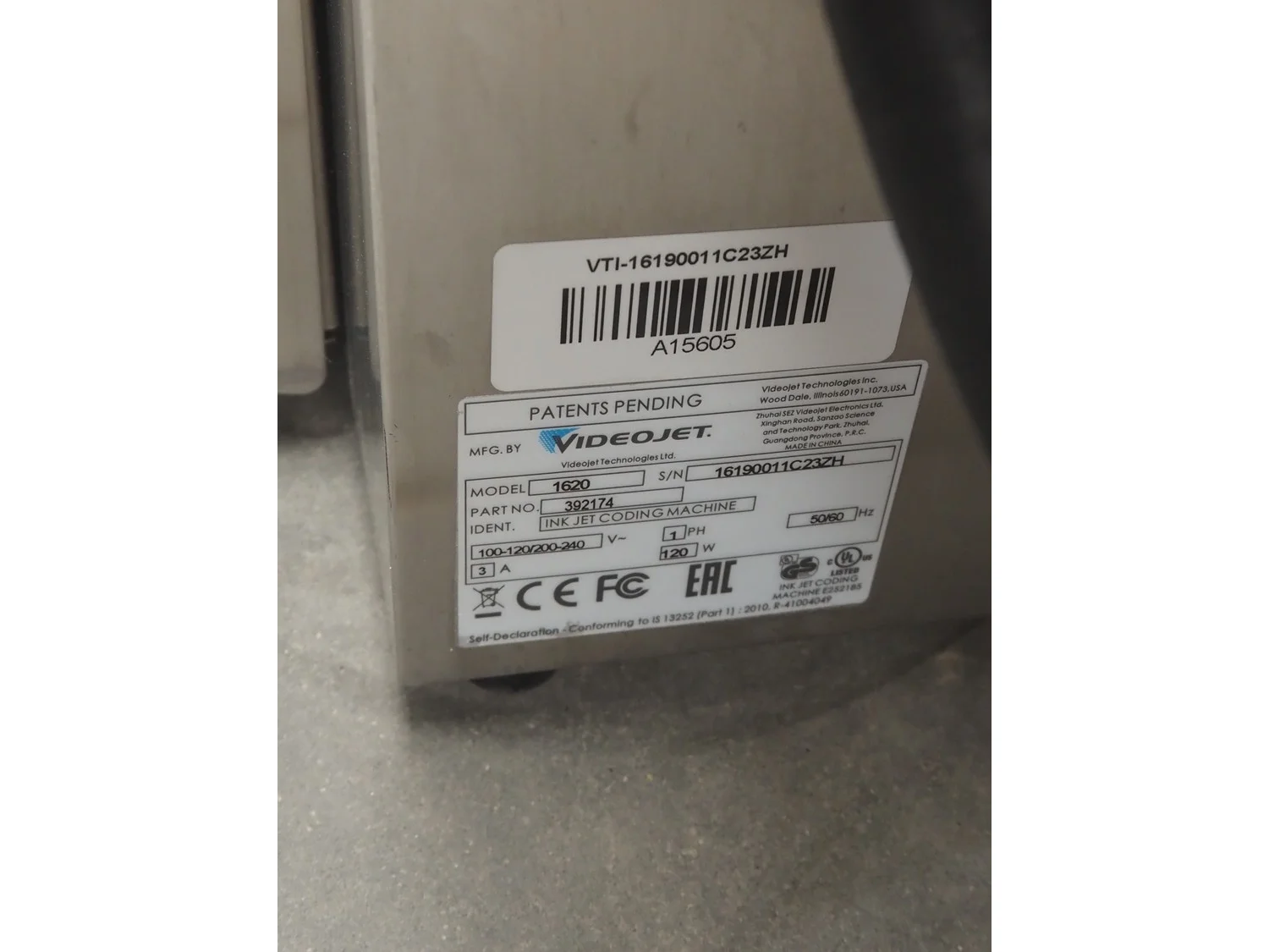 Videojet inkjet printer, model: 1620, serial number: 16190011C23ZH, 100-120/200-240 V, 1 PH, 50/60 Hz, 3 A, 120 W, dimensions: 450 mm x 350 mm x 850 mm.