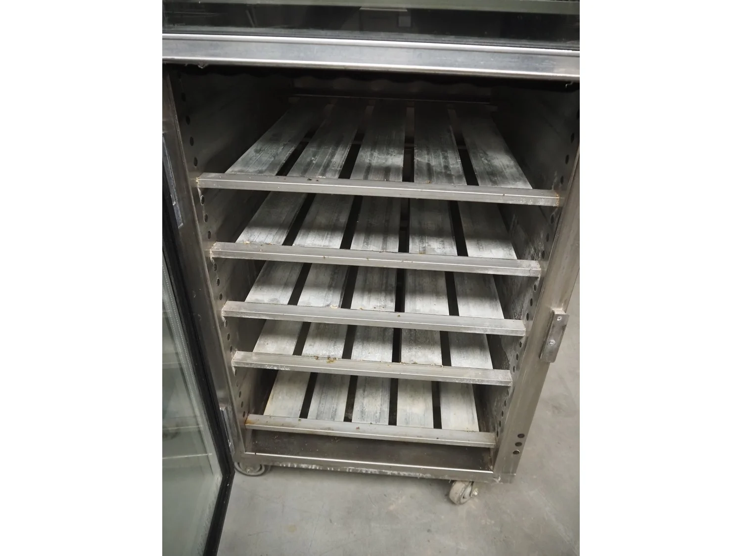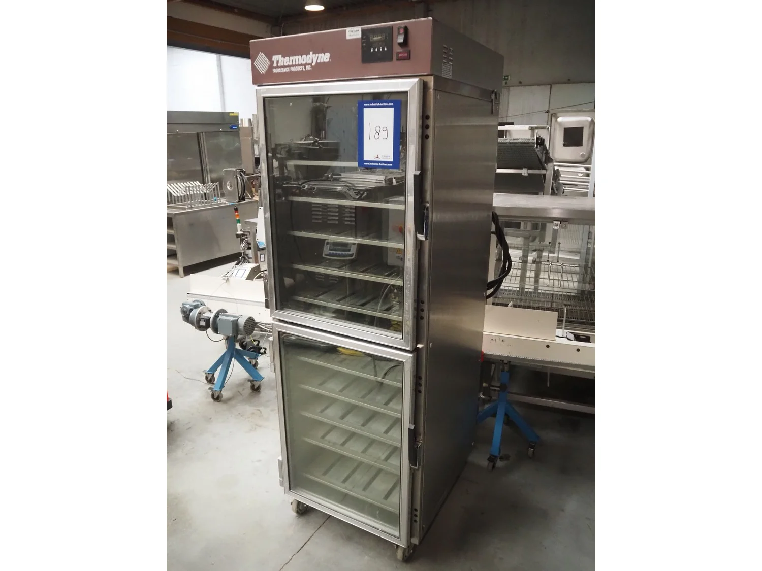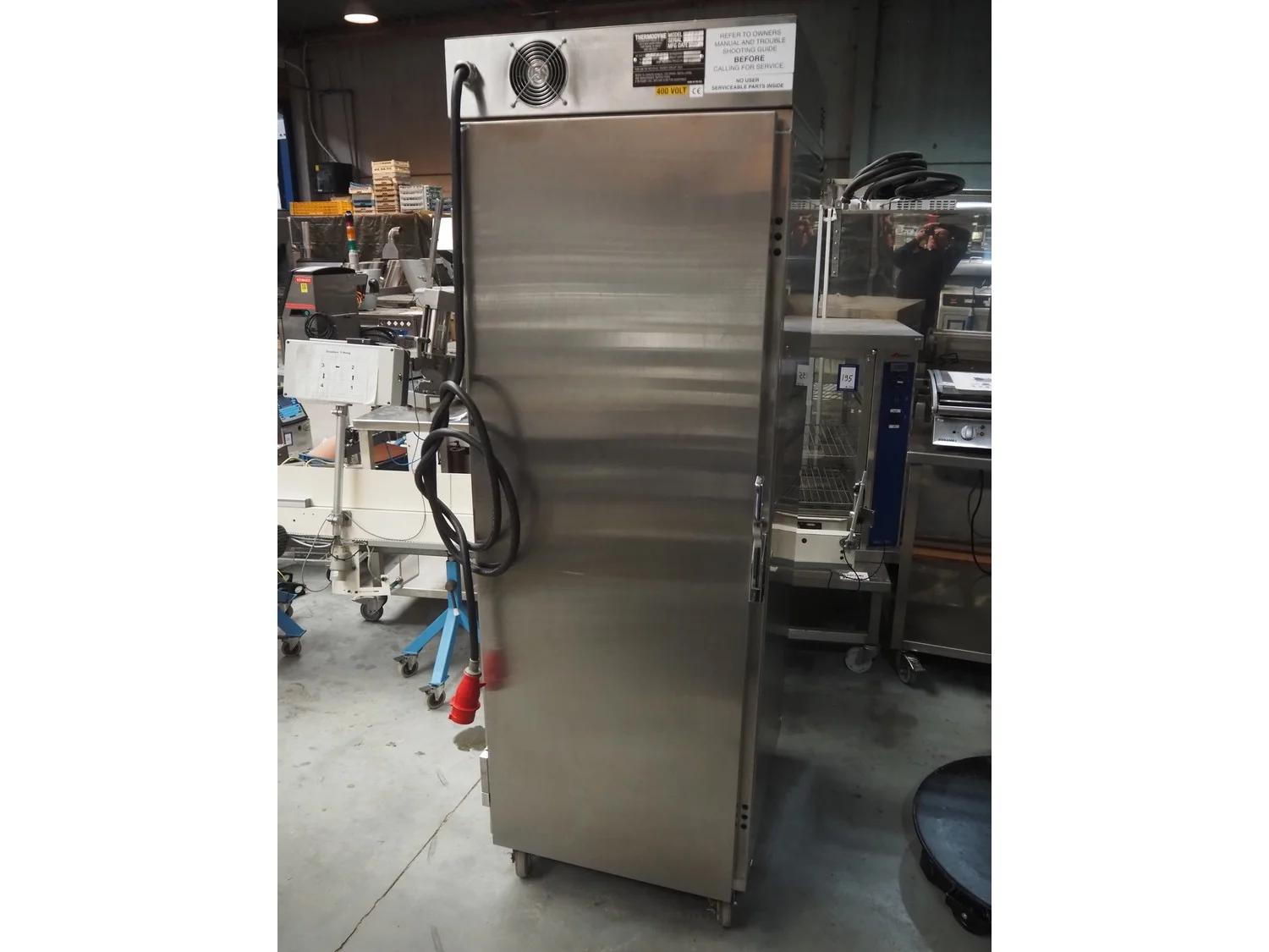 Thermodyne mobile slow cook and hold oven, model: 1900G, serial number: 14567, year of construction: 1/1/17, 230/440 V, 3 Ph, 50 Hz, 11 A, 10 floors, floor dimensions: 650 mm x 550 mm, total dimensions: 830 mm x 680 mm x 1960 mm.