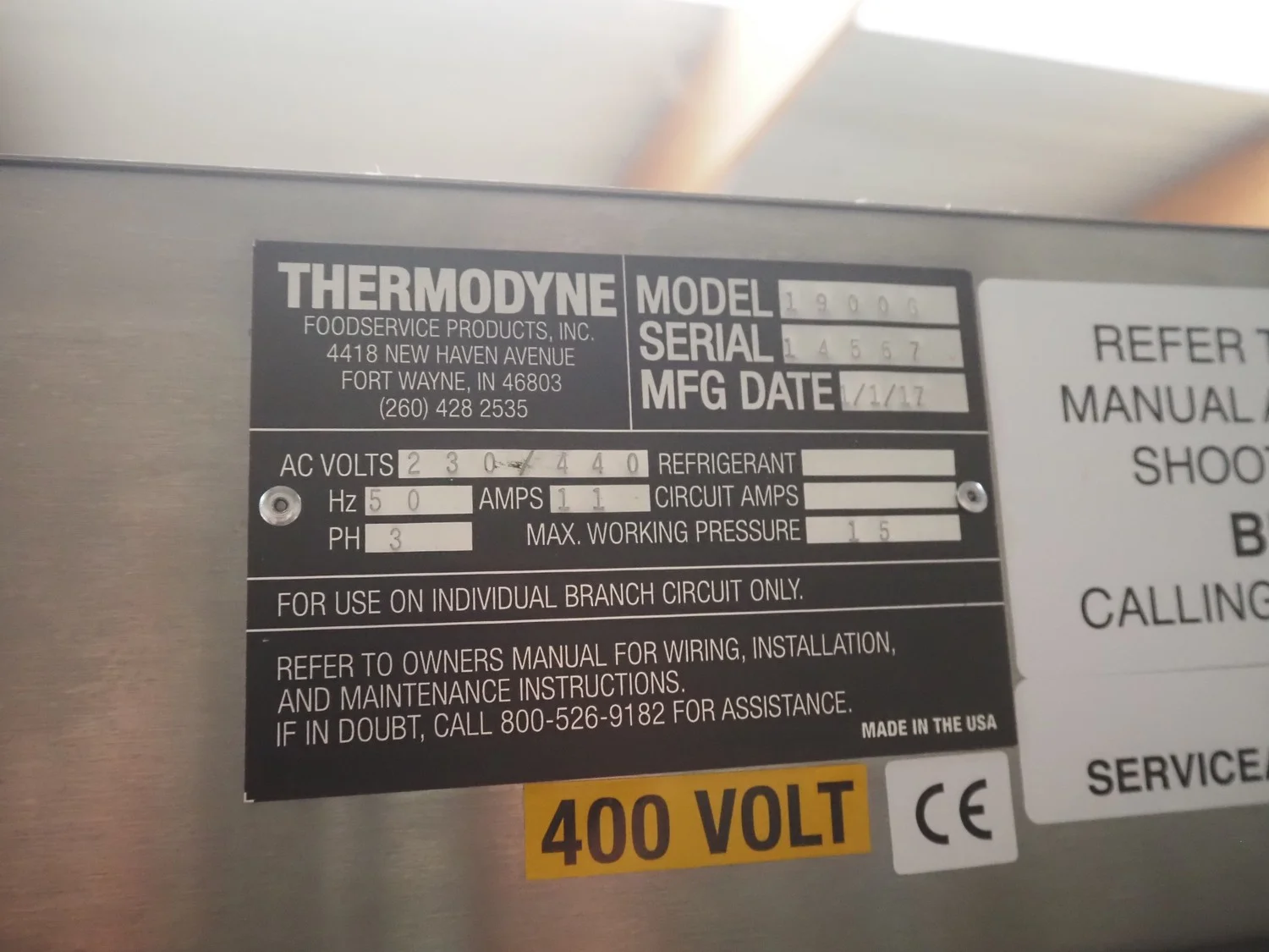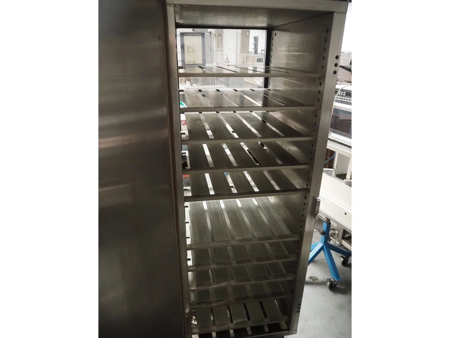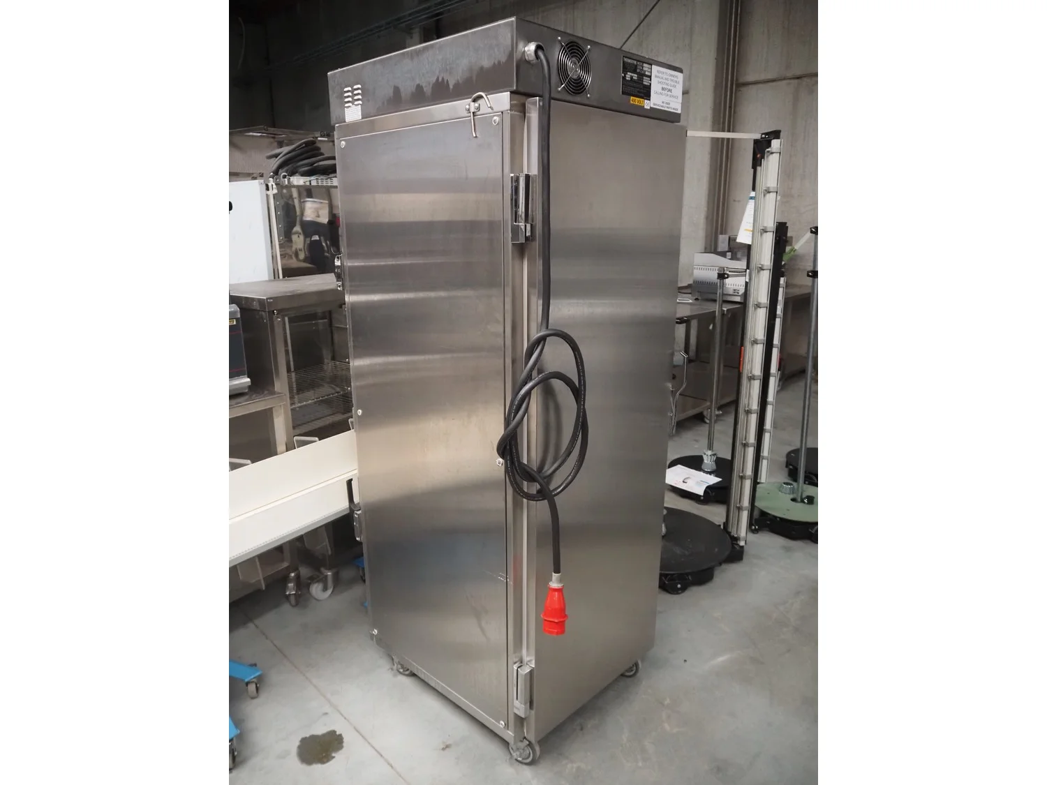 Thermodyne mobile slow cook and hold oven, model: 1900G, serial number: 14567, year of construction: 1/1/17, 230/440 V, 3 Ph, 50 Hz, 11 A, 10 floors, floor dimensions: 650 mm x 550 mm, total dimensions: 830 mm x 680 mm x 1960 mm.