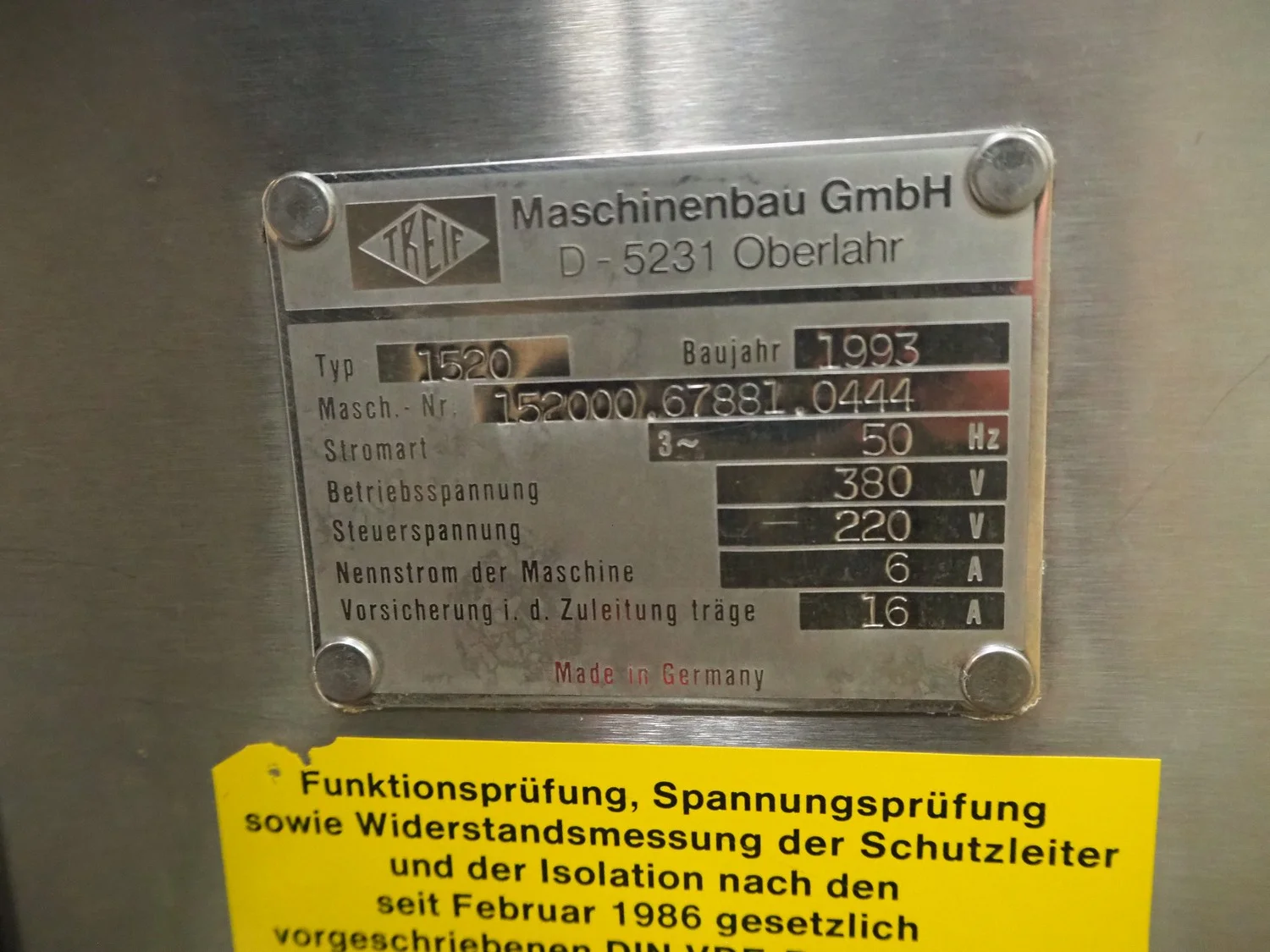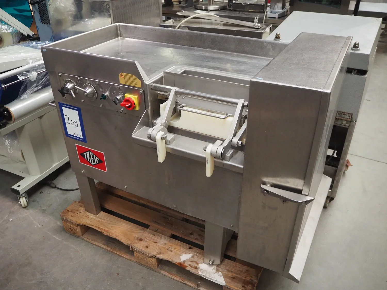 Treif Maschinenbau GmbH dicer, type: 1520, number: 152000.67881.0444, year of construction: 1993, 220/380 V, 3 Ph, 50 Hz, 6 A, dimensions chamber: 83 mm x 83 mm, total dimensions: 1300 mm x 730 mm x 1050 mm.