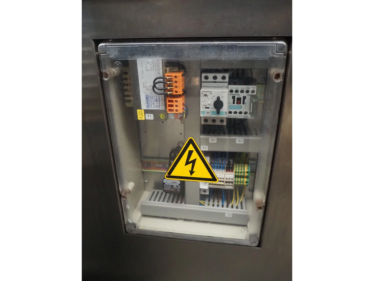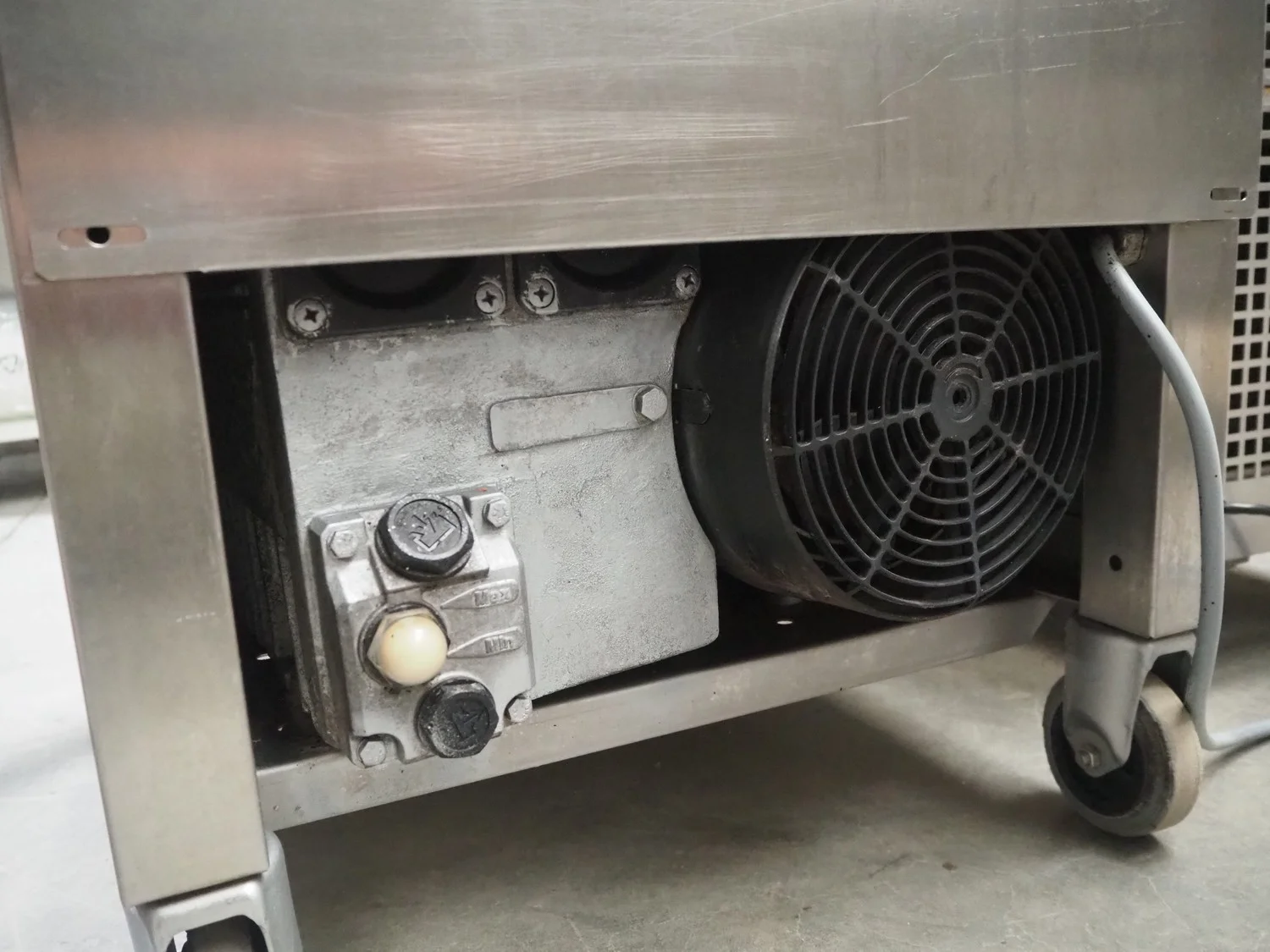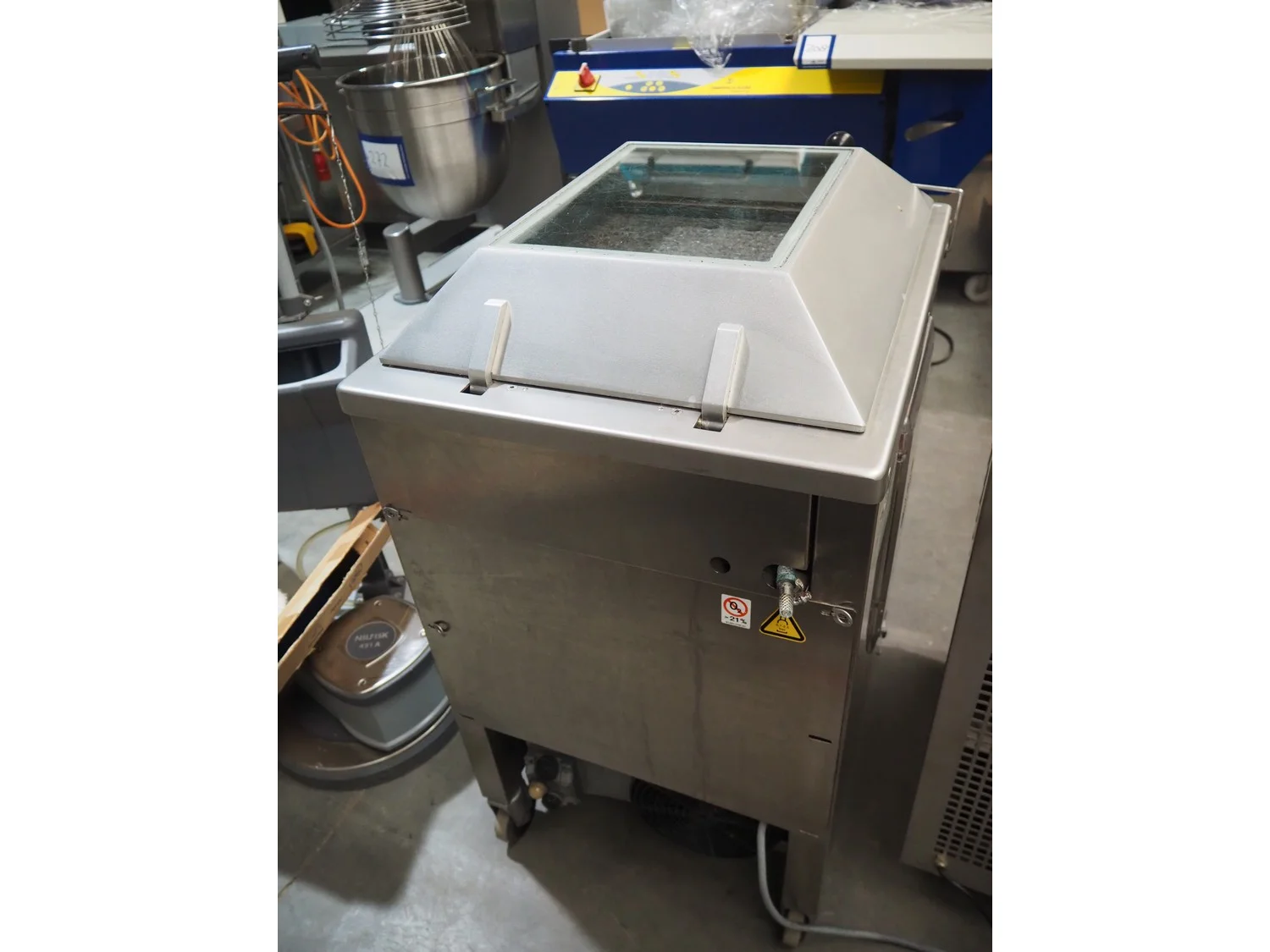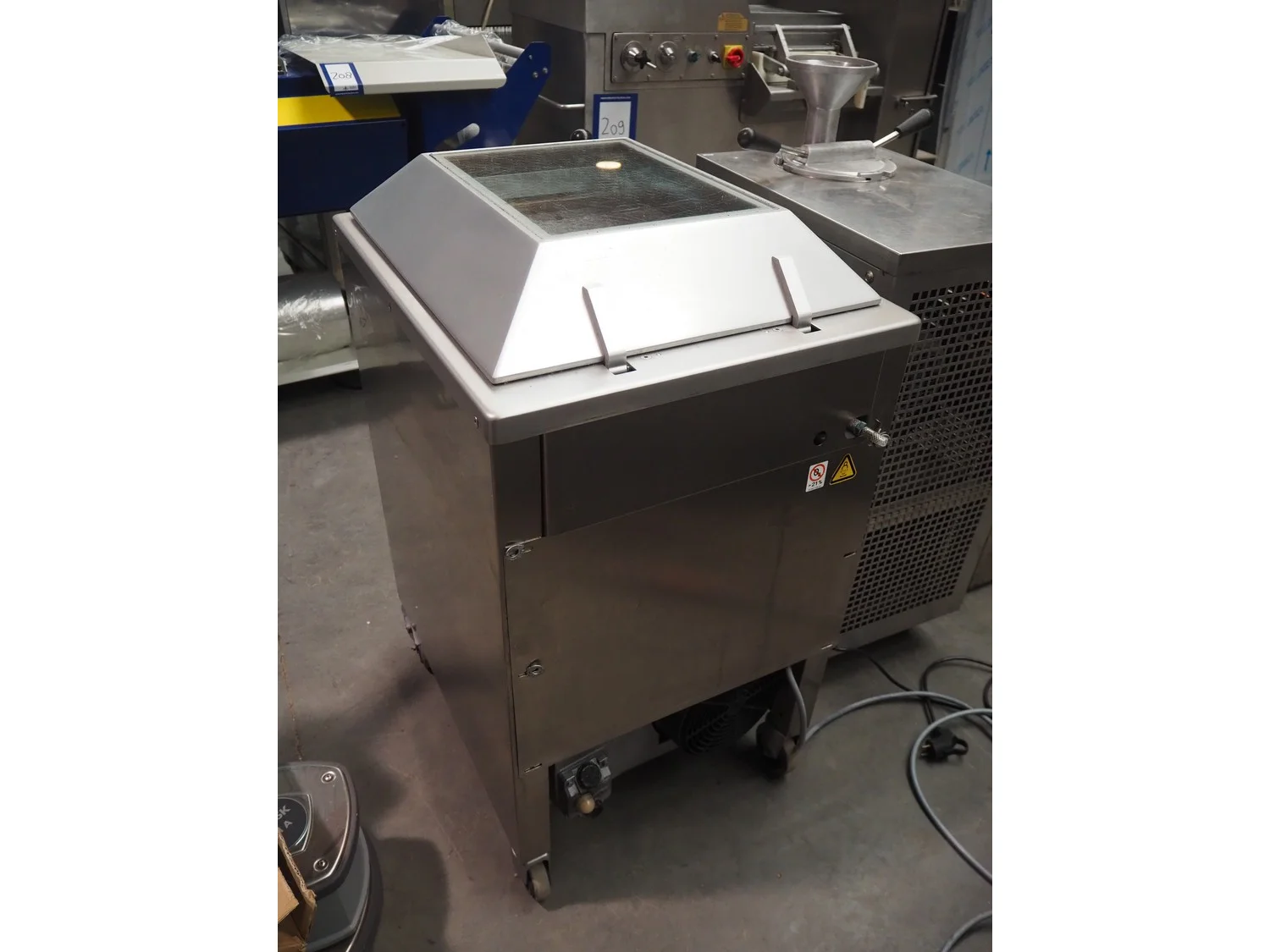 Multivac mobile vacuum machine, type: A 300/42, number: 6164, year of construction: 2000, 400 V, 3 Ph, 50 Hz, 12 A, 2 kW, seal length: 450 mm, dimensions chamber: 500 mm x 450 mm, total dimensions: 650 mm x 550 mm x 1000 mm.