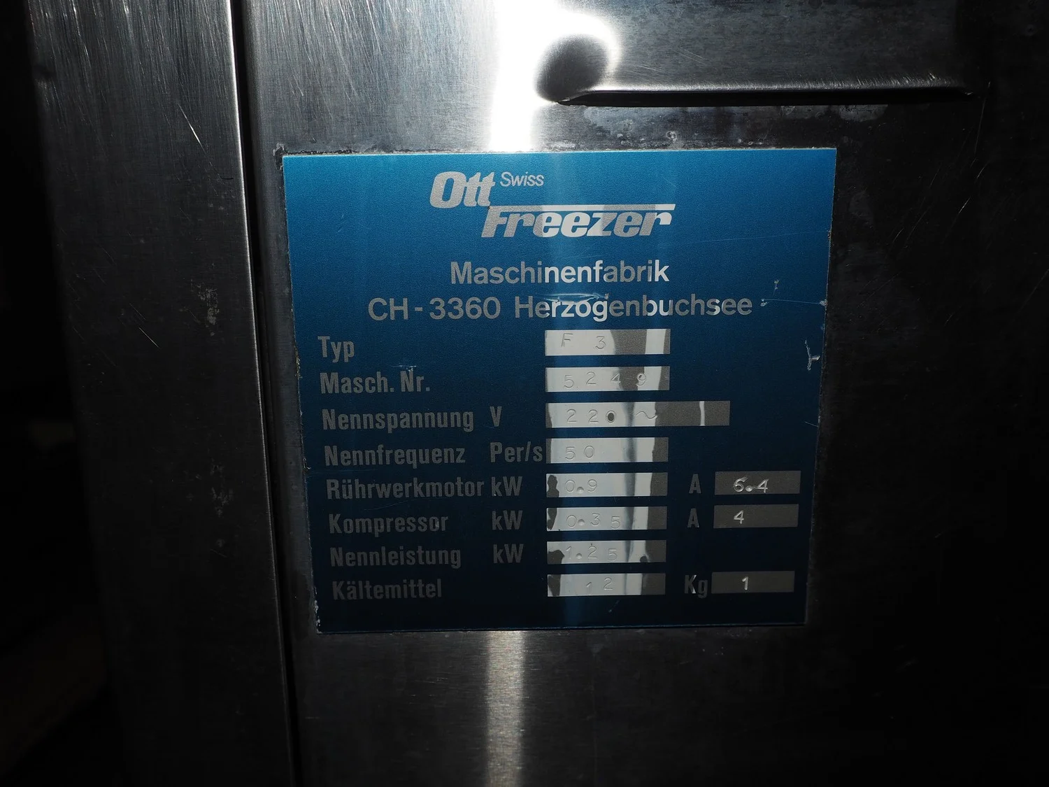 Ott freezer mobile ice machine, type: F3, number: 5249, 220 V, 4/6.4 A, 0.35/0.9 kW, dimensions: 700 mm x 420 mm x 1100 mm.