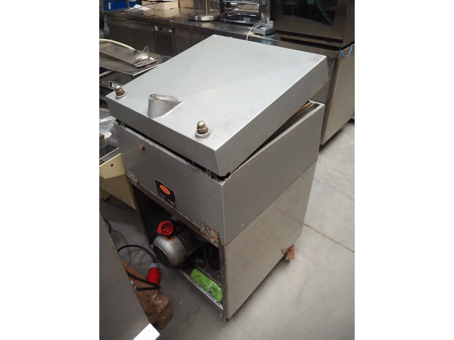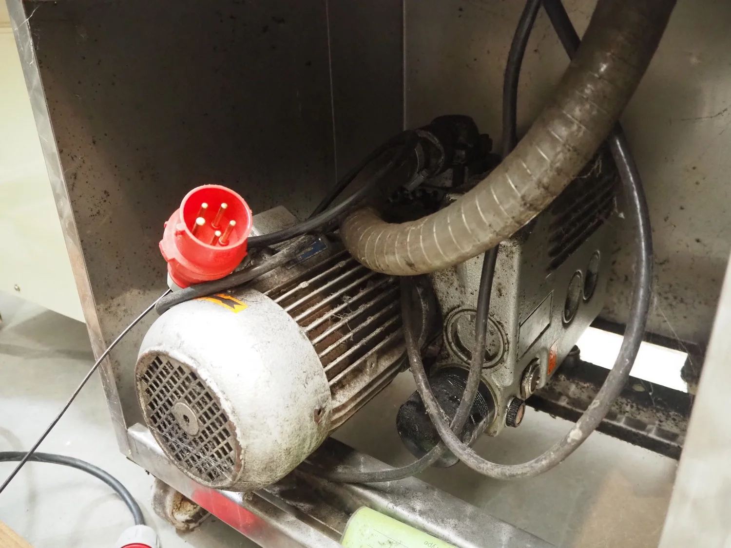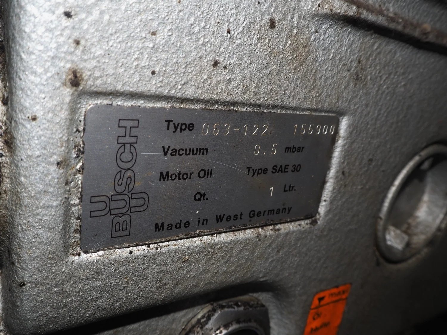 Henkovac mobile vacuum machine, type: VA-2, machine number: 28036271, 220/380 V, 3 Ph, 50 Hz, 2.5 kW, 8.9 A, seal length: (2x) 500 mm, dimensions chamber: 450 mm x 500 mm x 60 mm, with Busch vacuum pump, type: 063-122, capacity: 63 m3/h, total dimensions: 600 mm x 650 mm x 1120 mm.