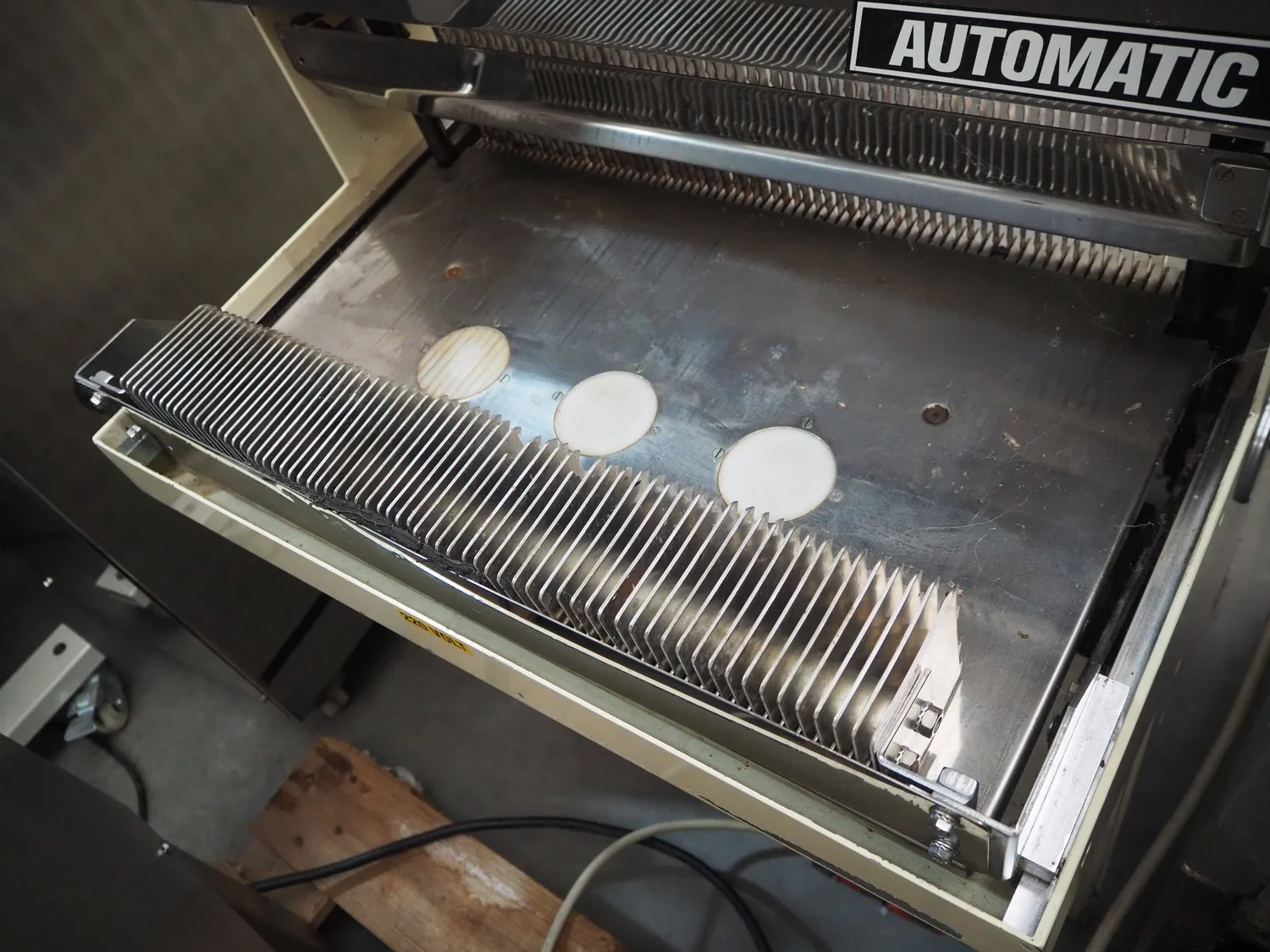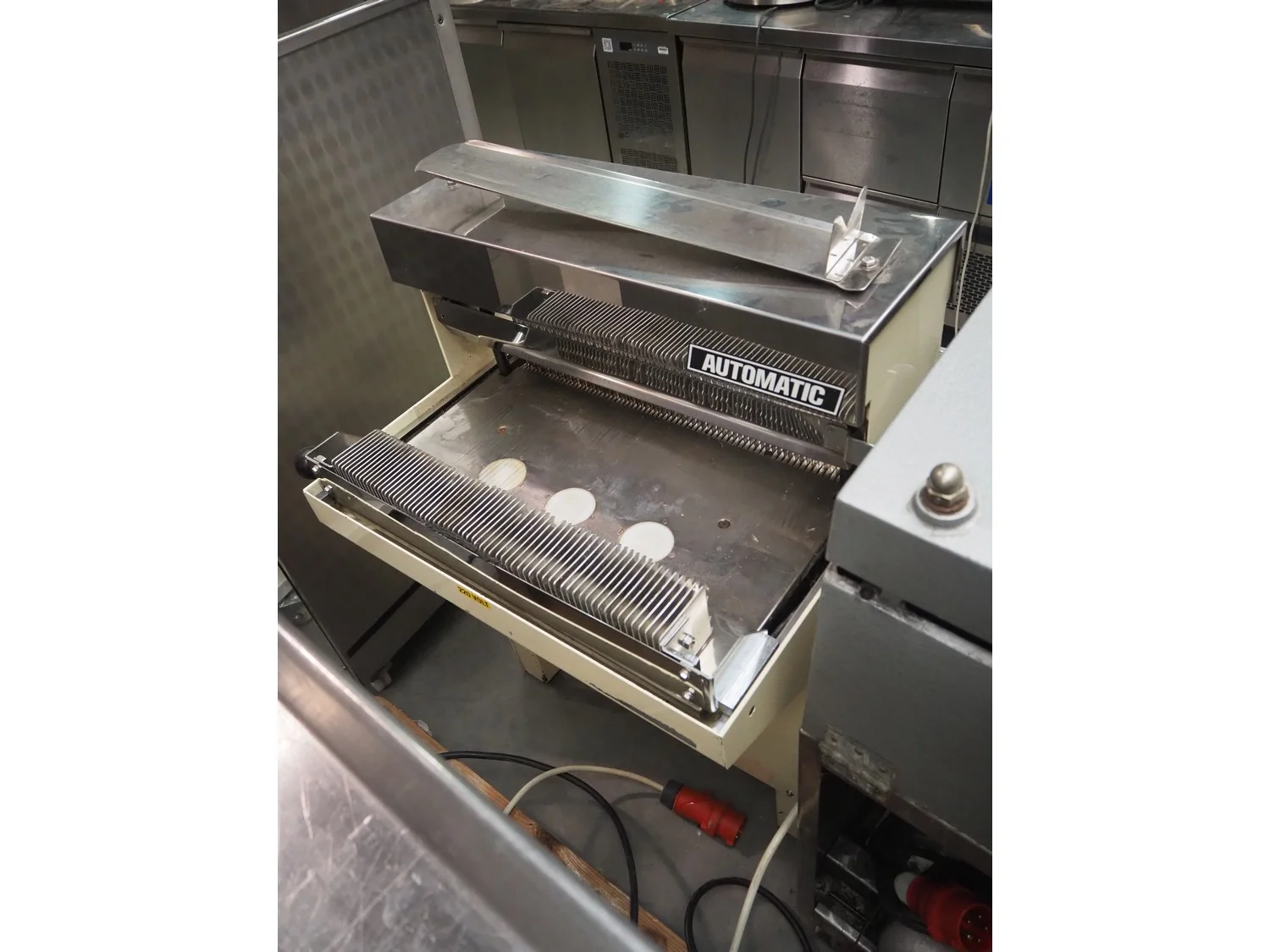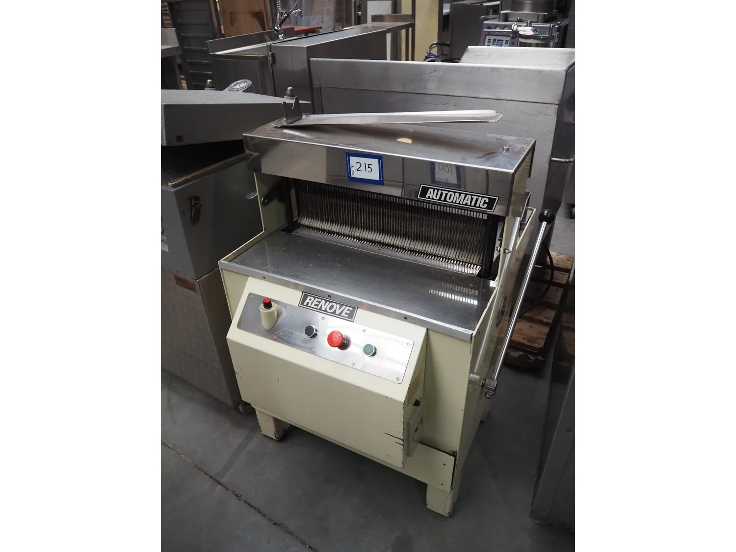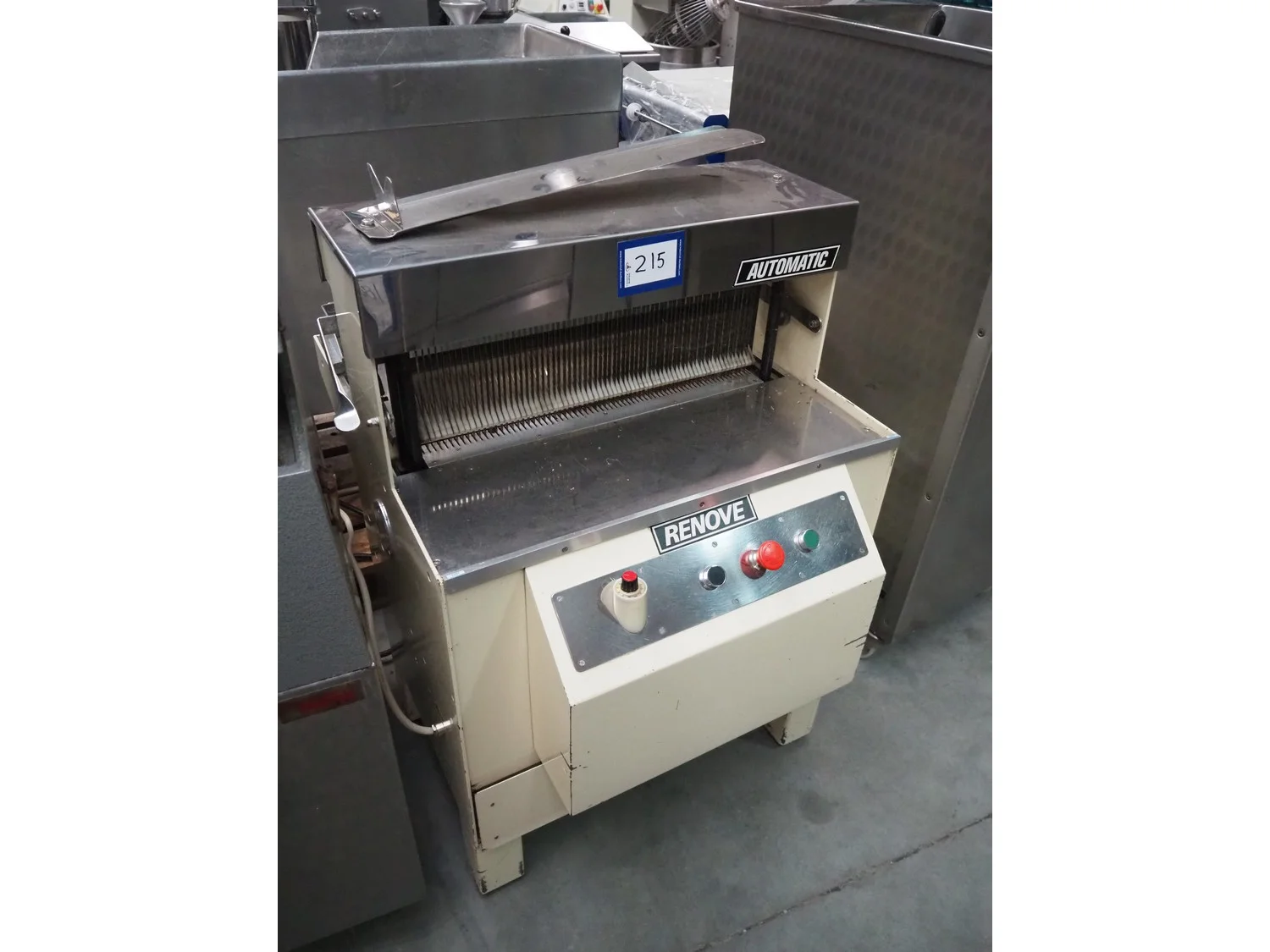 Renove mobile bread slicer, working width: 600 mm, distance between knives: 7.5/8.5 mm, total dimensions: 800 mm x 800 mm x 1150 mm.