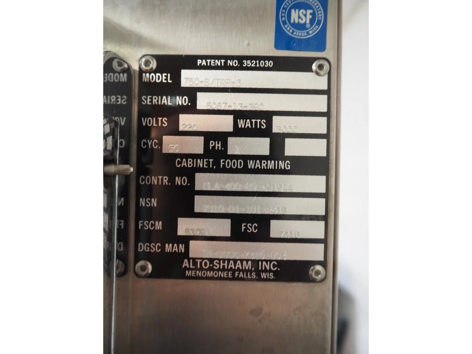 Alto-Shaam mobile warming cabinet, model: 750-B/TRP-3, serial number: 5067-13-390, 220 V, 1 Ph, 3000 W, (3x) 12 floors, dimensions each floor: 650 mm x 540 mm, total dimensions: 820 mm x 730 mm x 1920 mm.