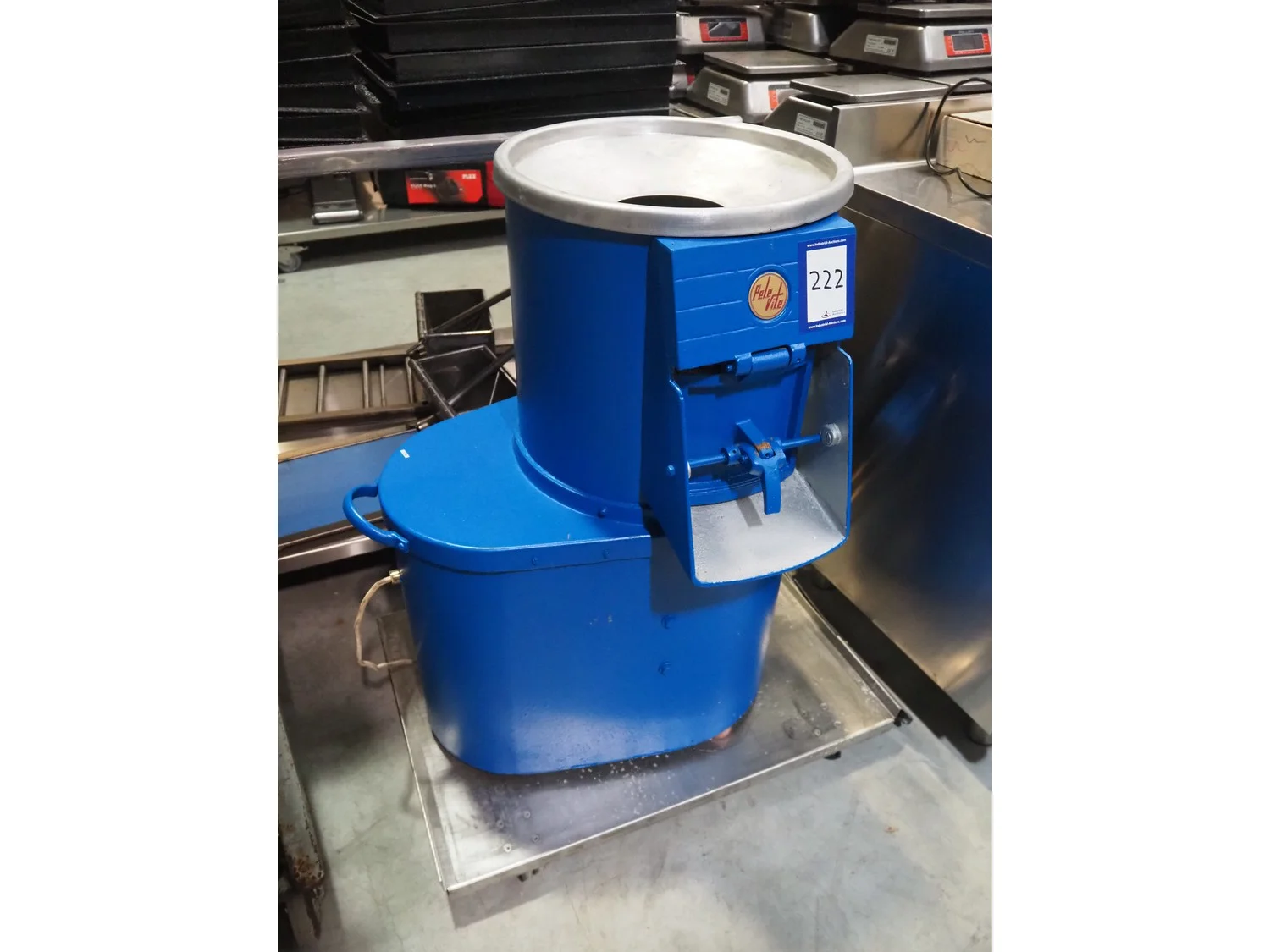 Pele Vite peeler, inside dimensions: Ø 380 mm x 280 mm, total dimensions: 800 mm x 600 mm x 920 mm.