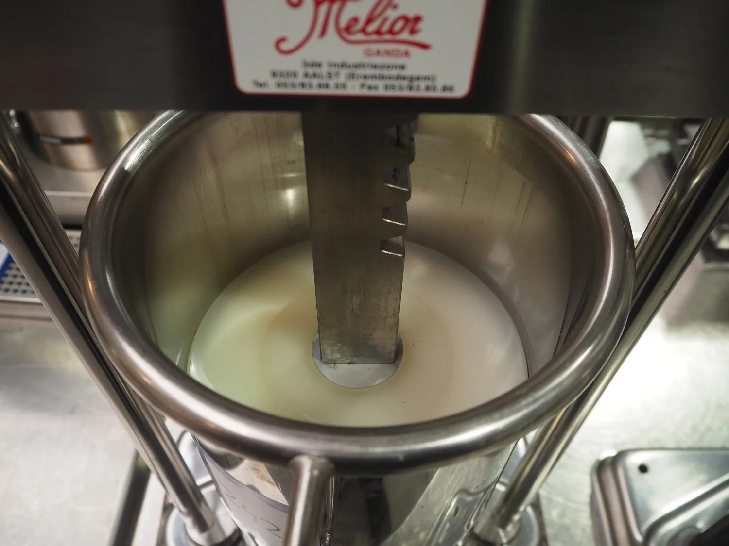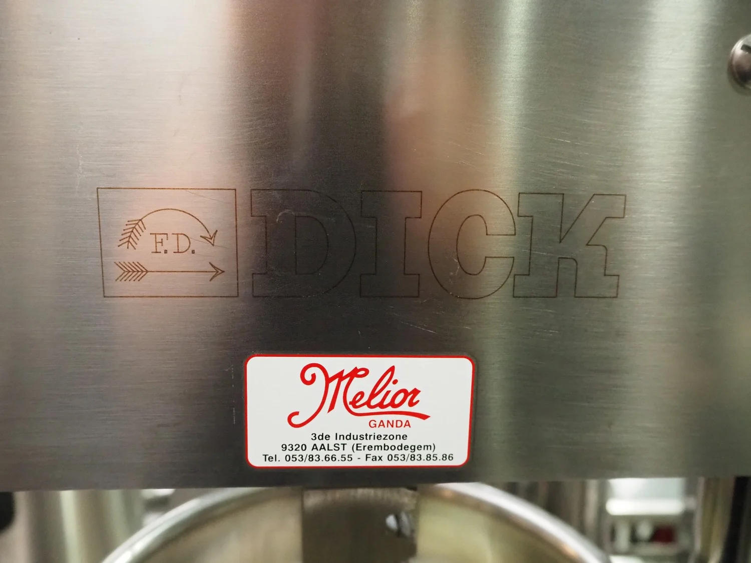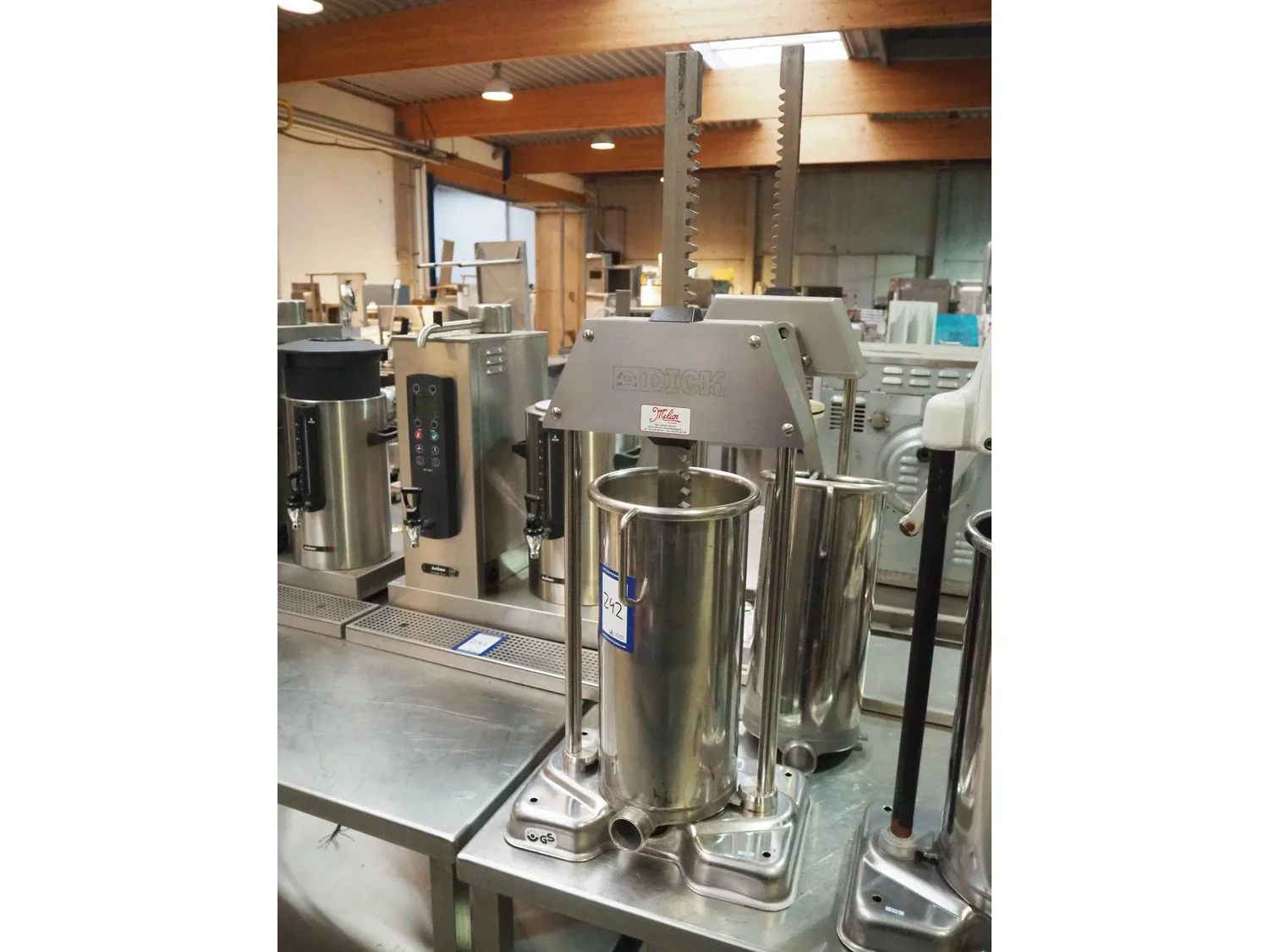 Dick manual piston filler, dimensions inside: Ø 190 mm x 420 mm, total dimensions: 400 mm x 260 mm x 1150 mm.