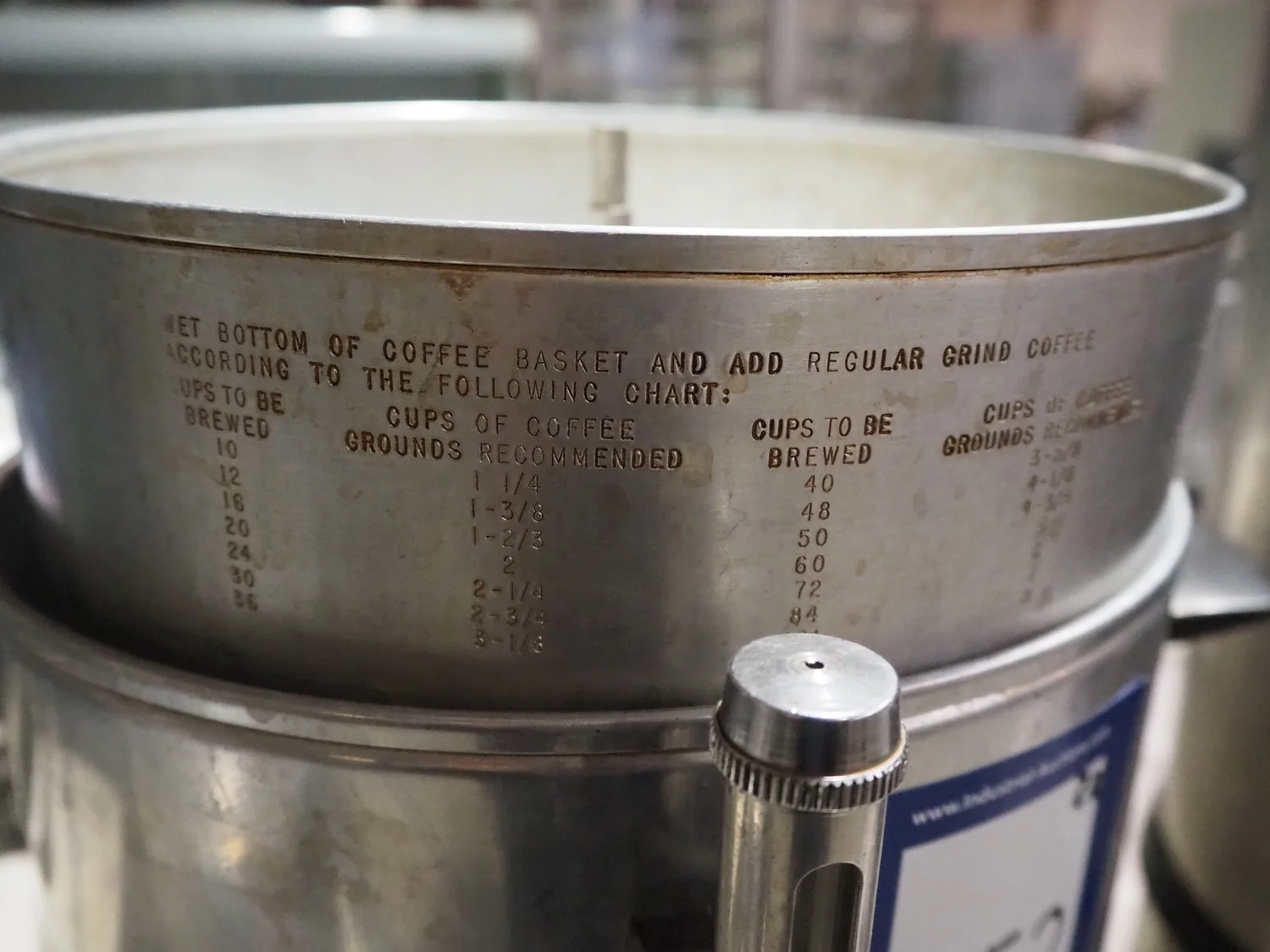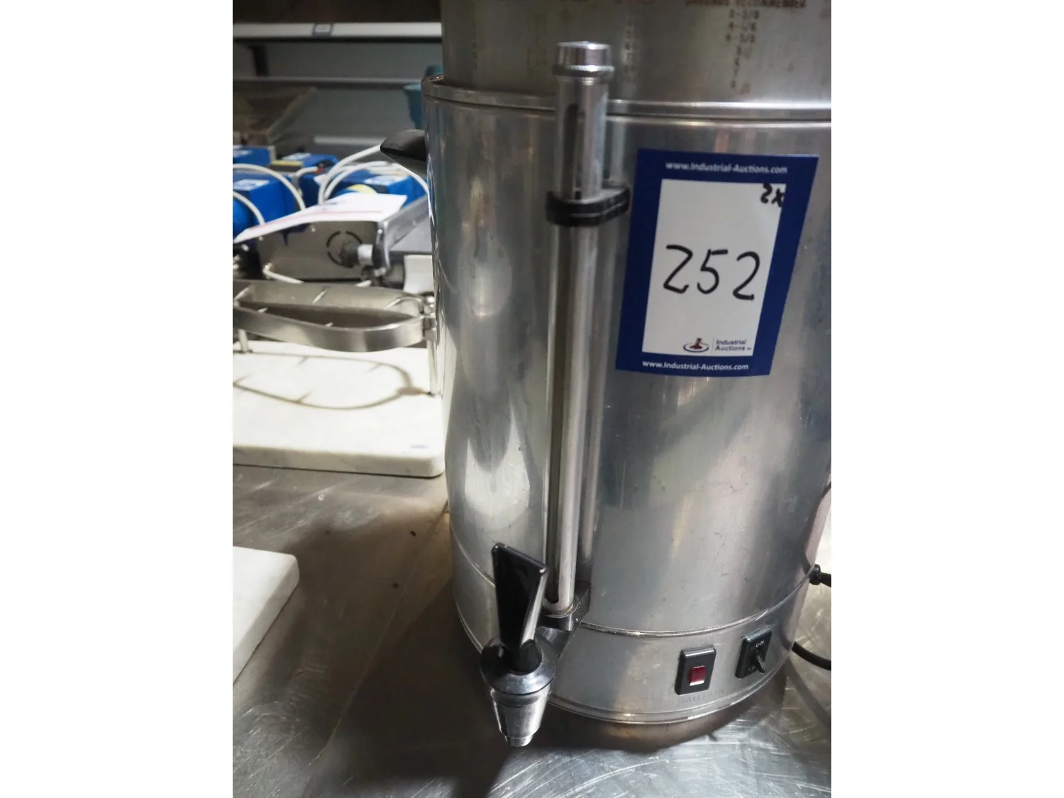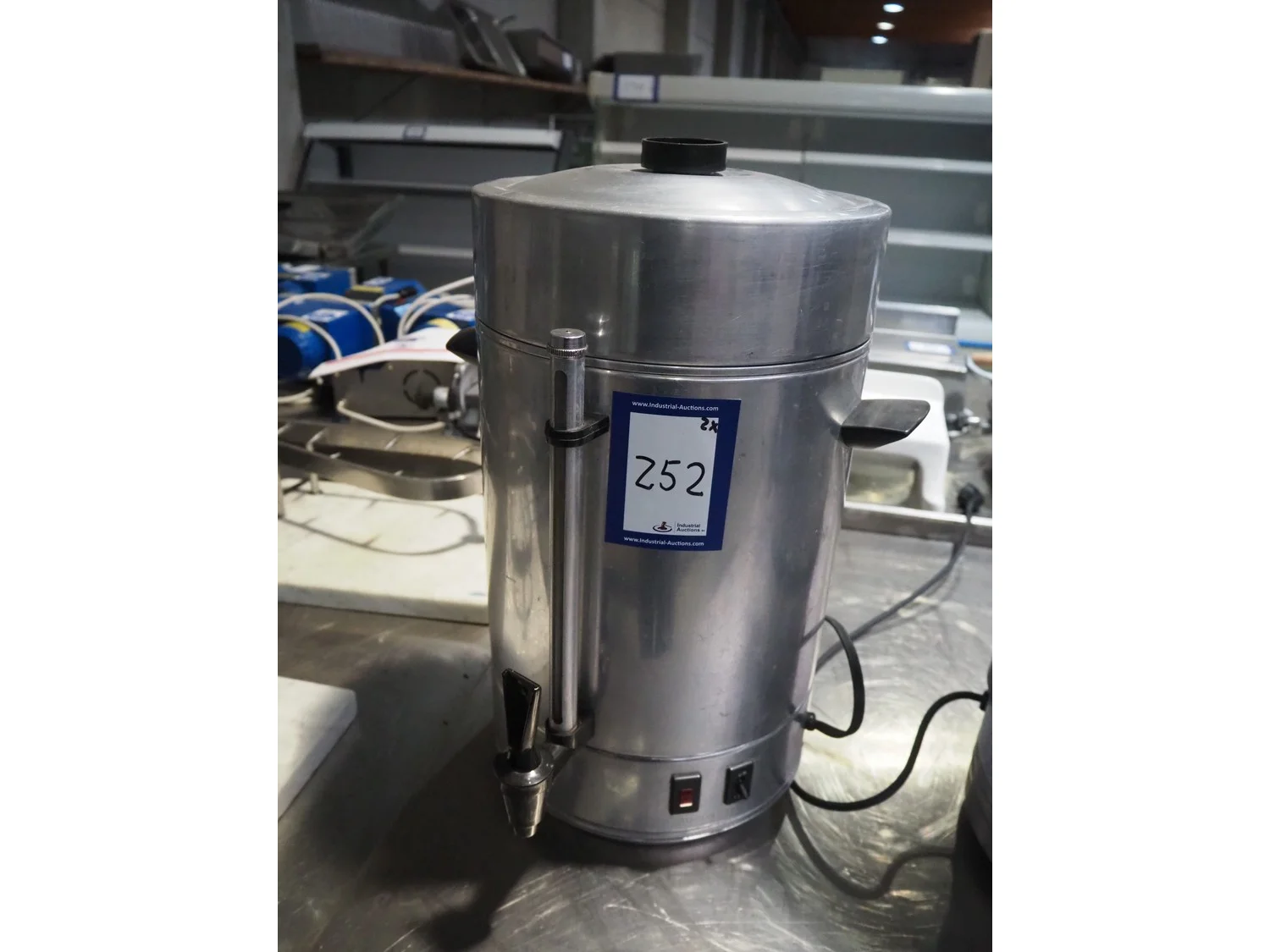 Karma Global Ltd. Coffee percolator and filter, model: 688092, serial number: C030015, year of construction: 2007, 230 V, 1 Ph, 50 Hz, 1620 W, volume: 15 liter, dimensions: 350 mm x 280 mm x 650 mm and 320 mm x 330 mm x 530 mm.