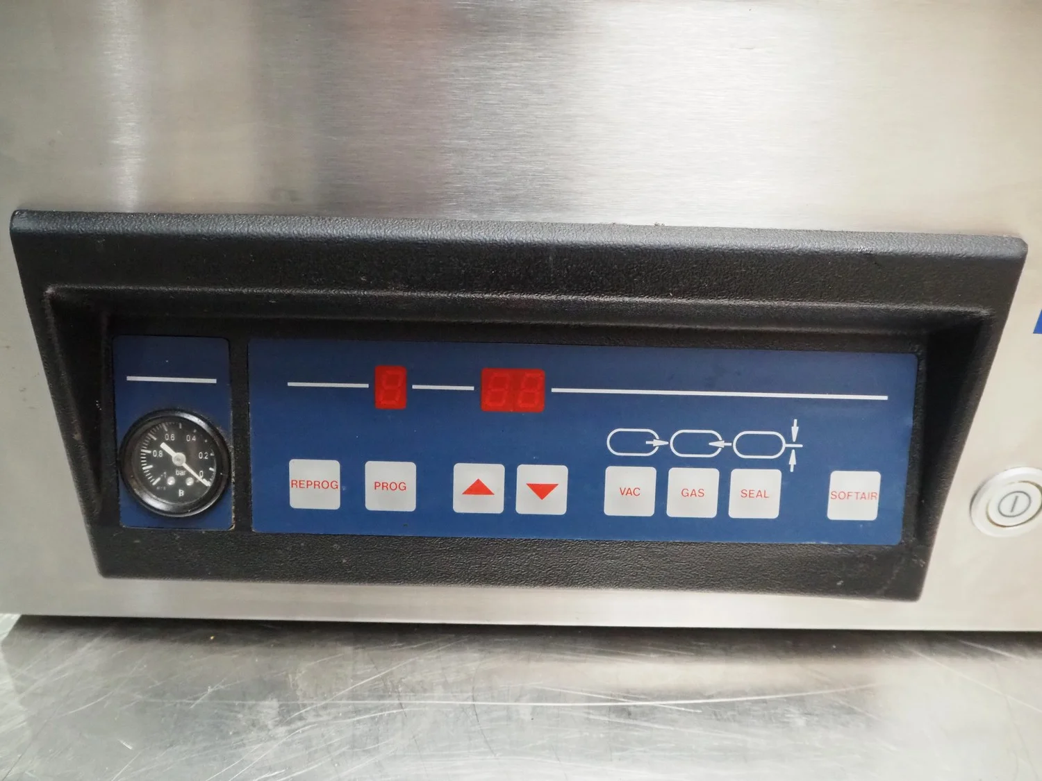 Combivac vacuum machine, type: combivac 2502, serial number: 159029485, year of construction: 1999, 230 V, 1 Ph, 50 Hz, 6 A, 1.3 kW, chamber dimensions: 450 mm x 400 mm, seal length: 440 mm, total dimensions: 540 mm x 540 mm x 450 mm.