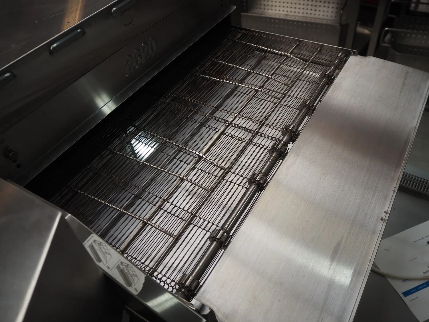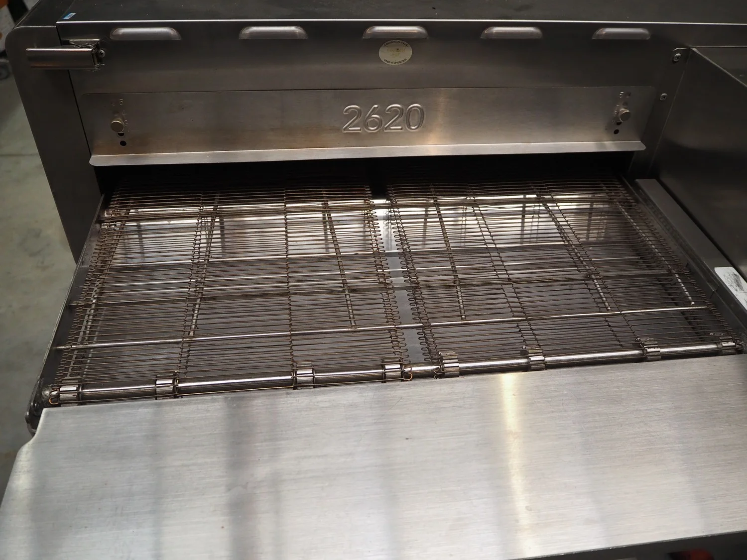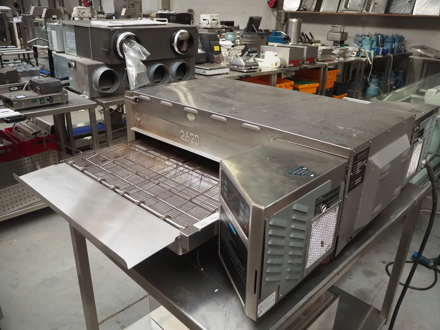 Turbochef Technologies pizza oven, model: HCW2620EW, serial number: Hhc2620EWED00504, year of construction: 2018, 400 V, 3 Ph, 50/60 Hz, 21 A, 4.4 kW, s/s mesh belt, belt width: 655 mm, total dimensions: 1550 mm x 1000 mm x 370 mm. Without table.