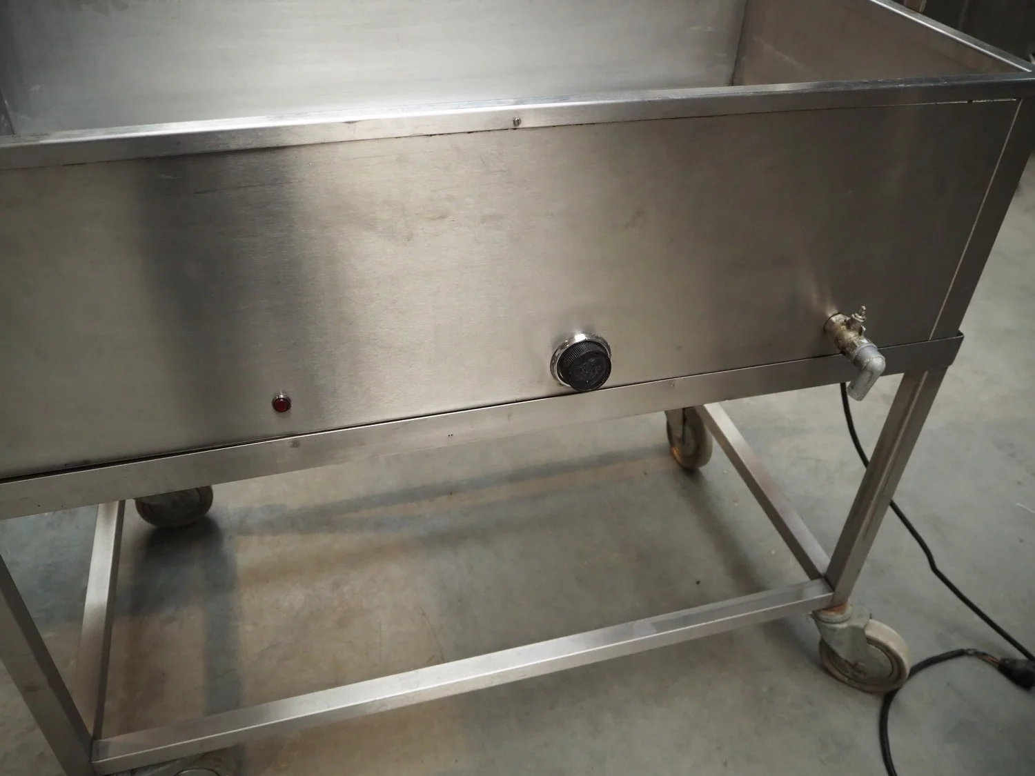 S/s mobile au bain marie, type: LWE, 220 V, 50 Hz, 3 Kw, inside dimensions: 950 mm x 510 mm x 190 mm, total dimensions: 1050 mm x 580 mm x 160 mm.