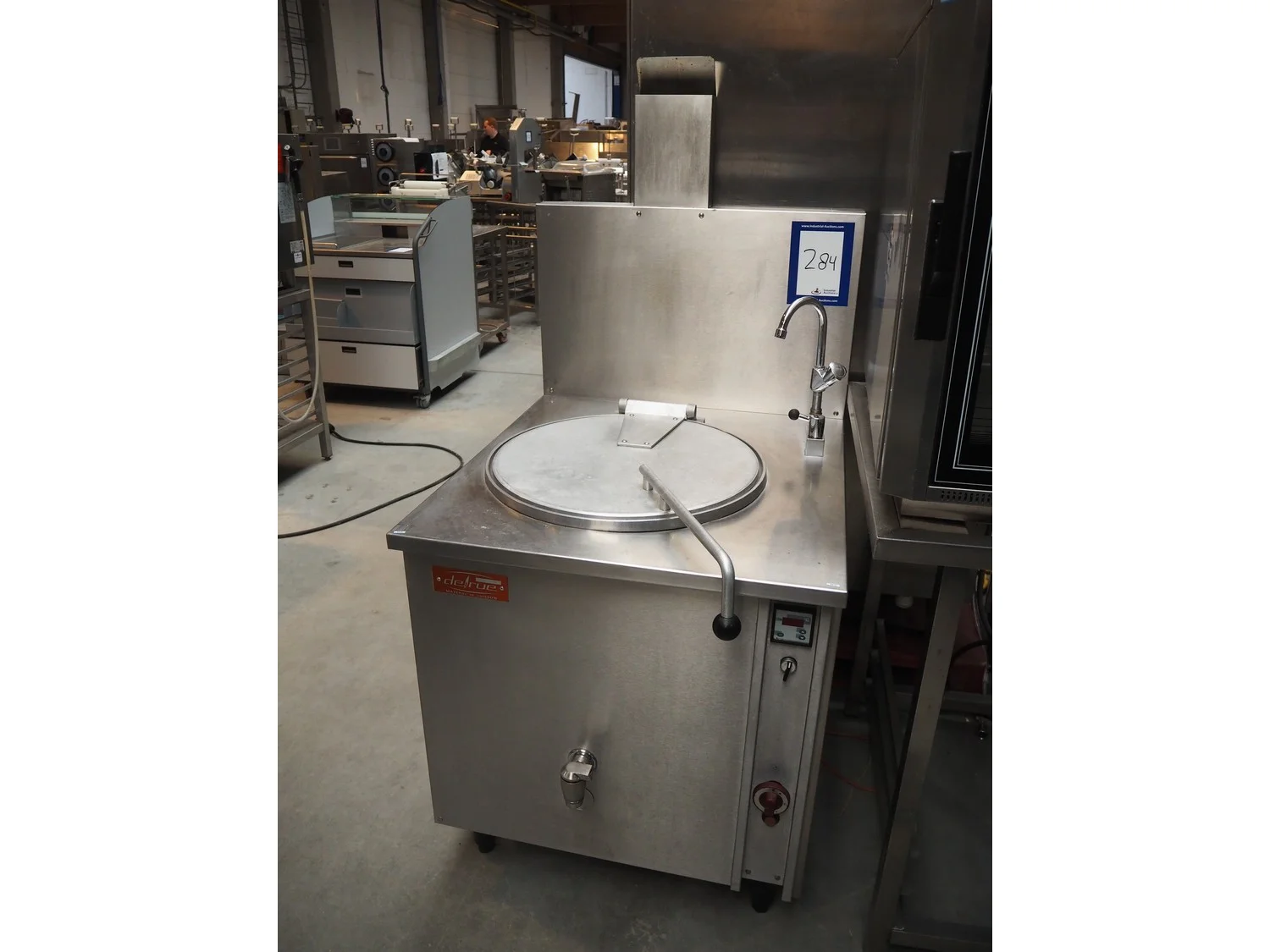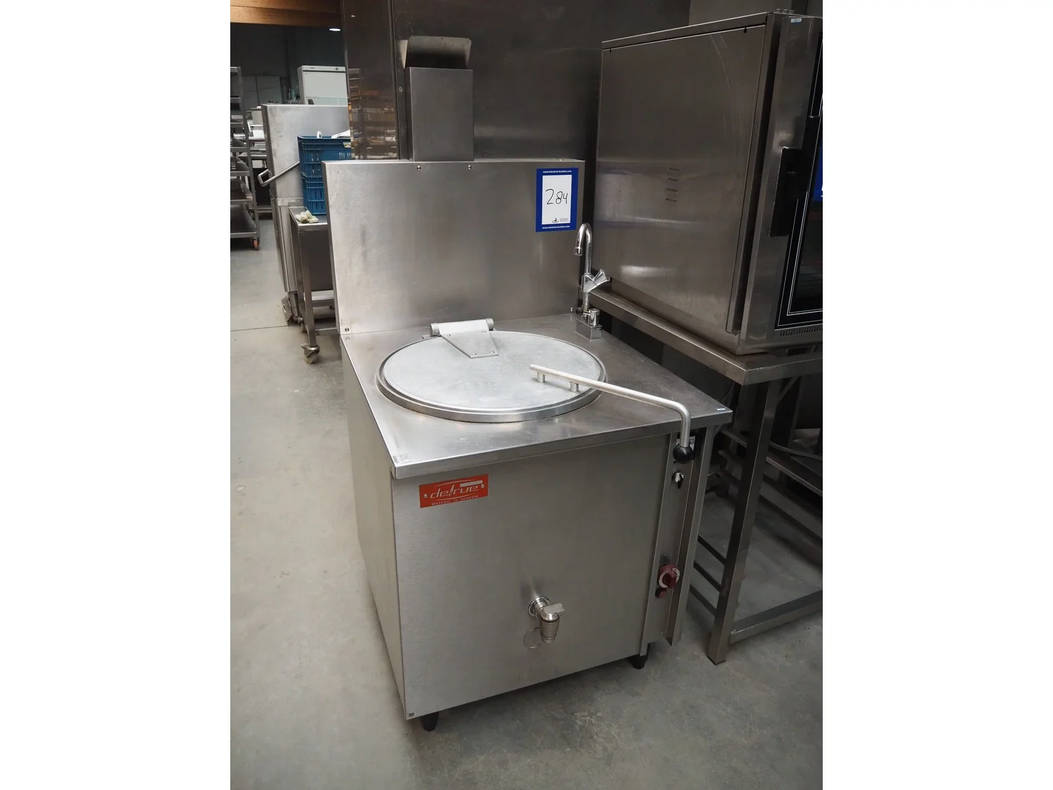 Delrue cooking vessel, type: C100RPC, serial number: 21100380B, year of construction: 2010, 230 V, inside dimensions: ø 530 mm x 500 mm, total dimensions: 1050 mm x 800 mm x 1750 mm.