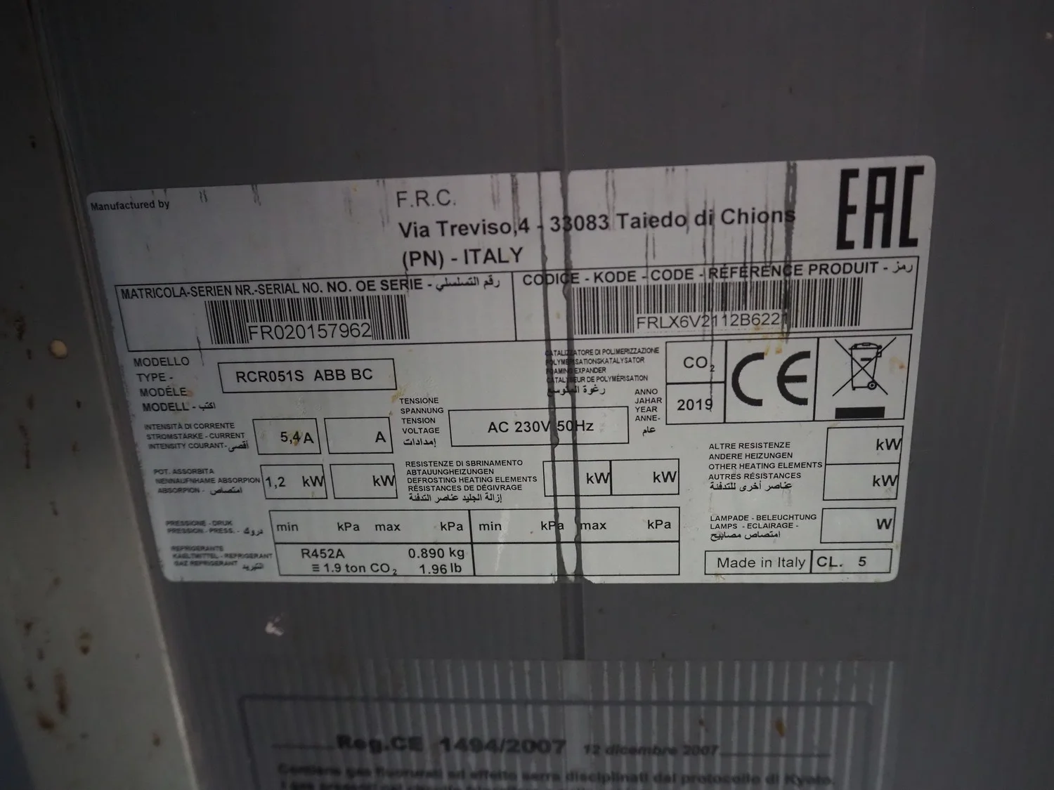 Lainox mobile blast chiller, model: RCR051S ABB BC, serial number: FR020157962, year of construction: 2019, 230 V, 50 Hz, 5.4 A, 1.2 kW, 4 floors, floor dimensions: 605 mm x 375 mm, total dimensions: 790 mm x 700 mm x 860 mm.