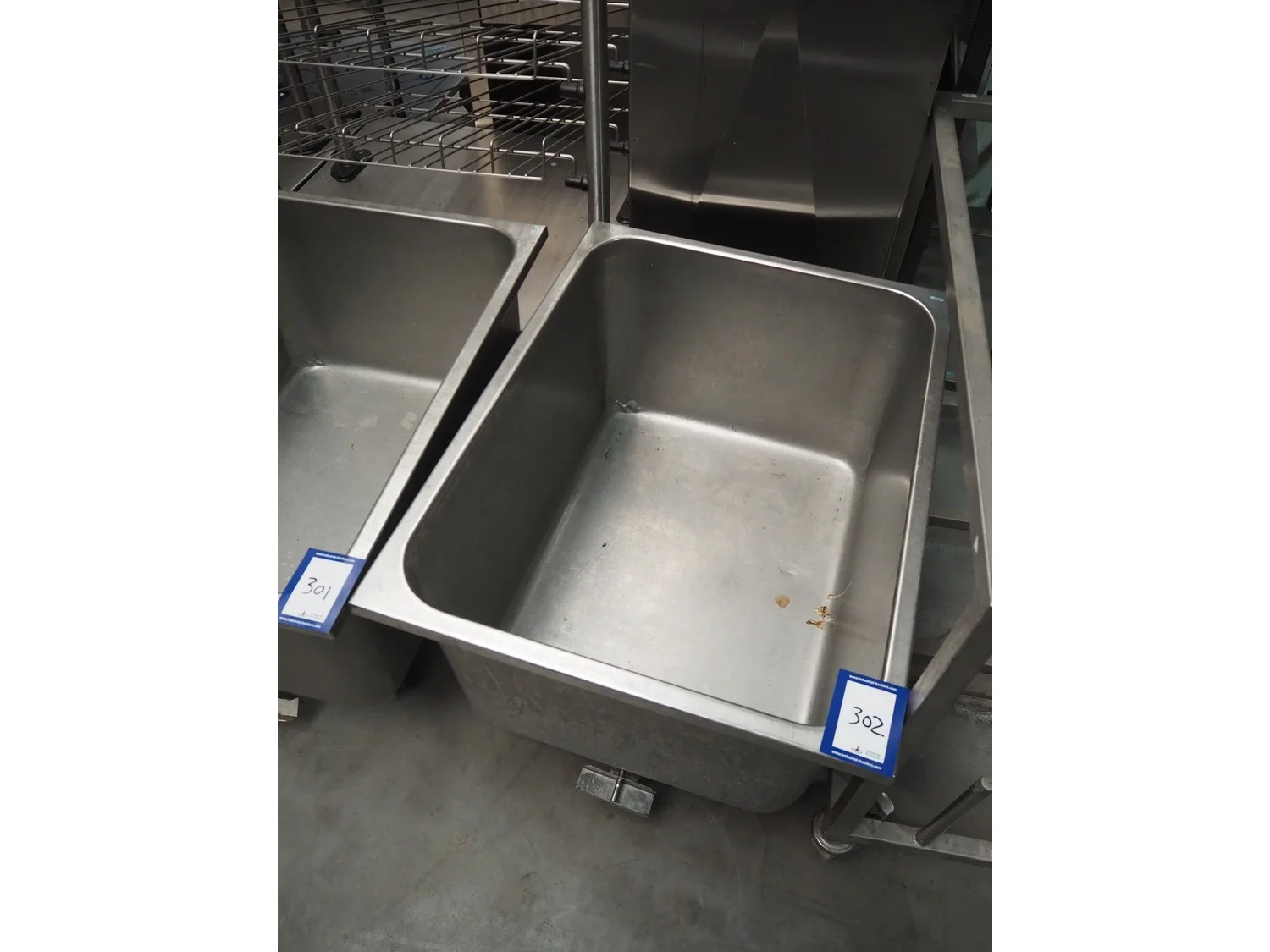 S/s tub, inside dimensions: 750 mm x 560 mm x 400 mm, total dimensions: 810 mm x 620 mm x 550 mm.