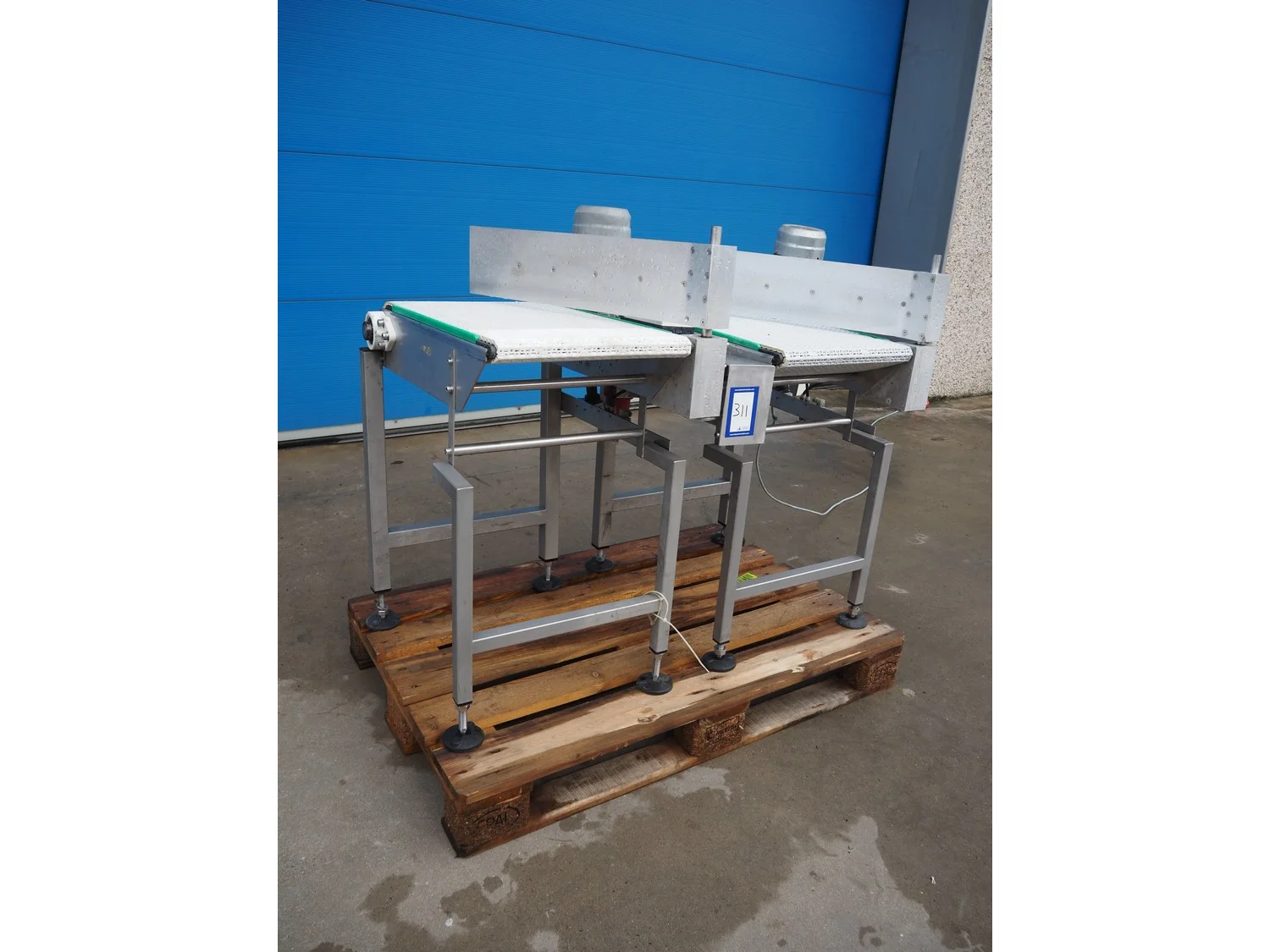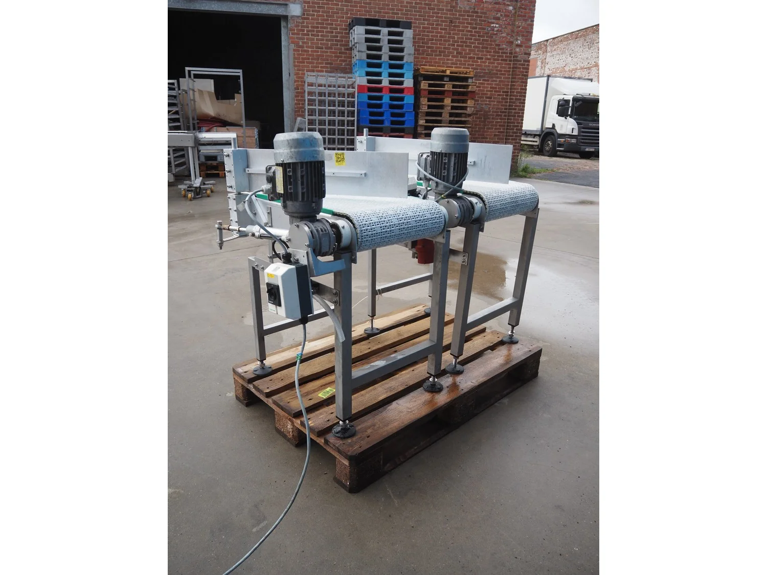 Pallet with 2 dividing belts, plastic mesh belt, belt width: (2x) 377 mm, total dimensions: (2x) 680 mm x 700 mm x 950 mm.