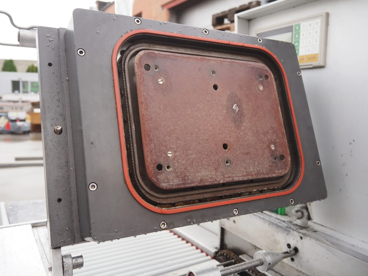 DECA Packaging Group thermoformer, type: SM 966, number: 2110, year of construction: 1999, dye: 300 mm x 230 mm, roller width: 410 mm, film width: 390 mm, total dimensions: 3750 mm x 850 mm x 1850 mm.