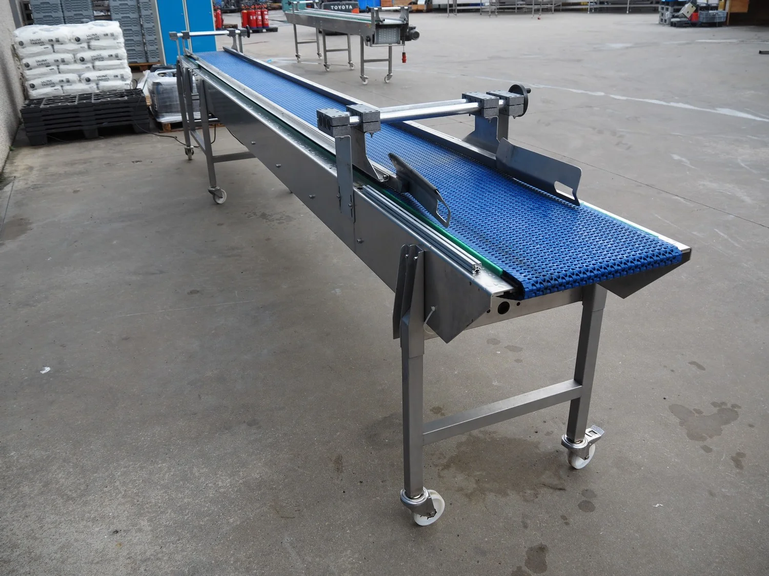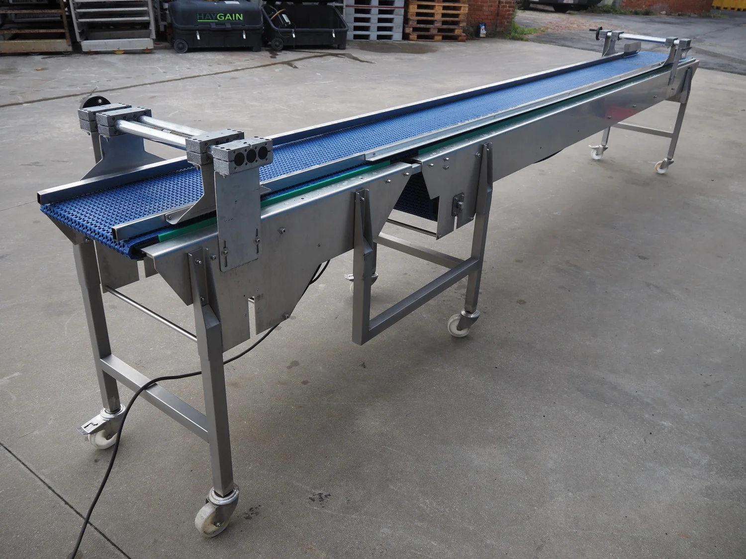 S/s mobile transport belt, plastic mesh belt, belt width: 380 mm, total dimensions: 5100 mm x 700 mm x 1120 mm.